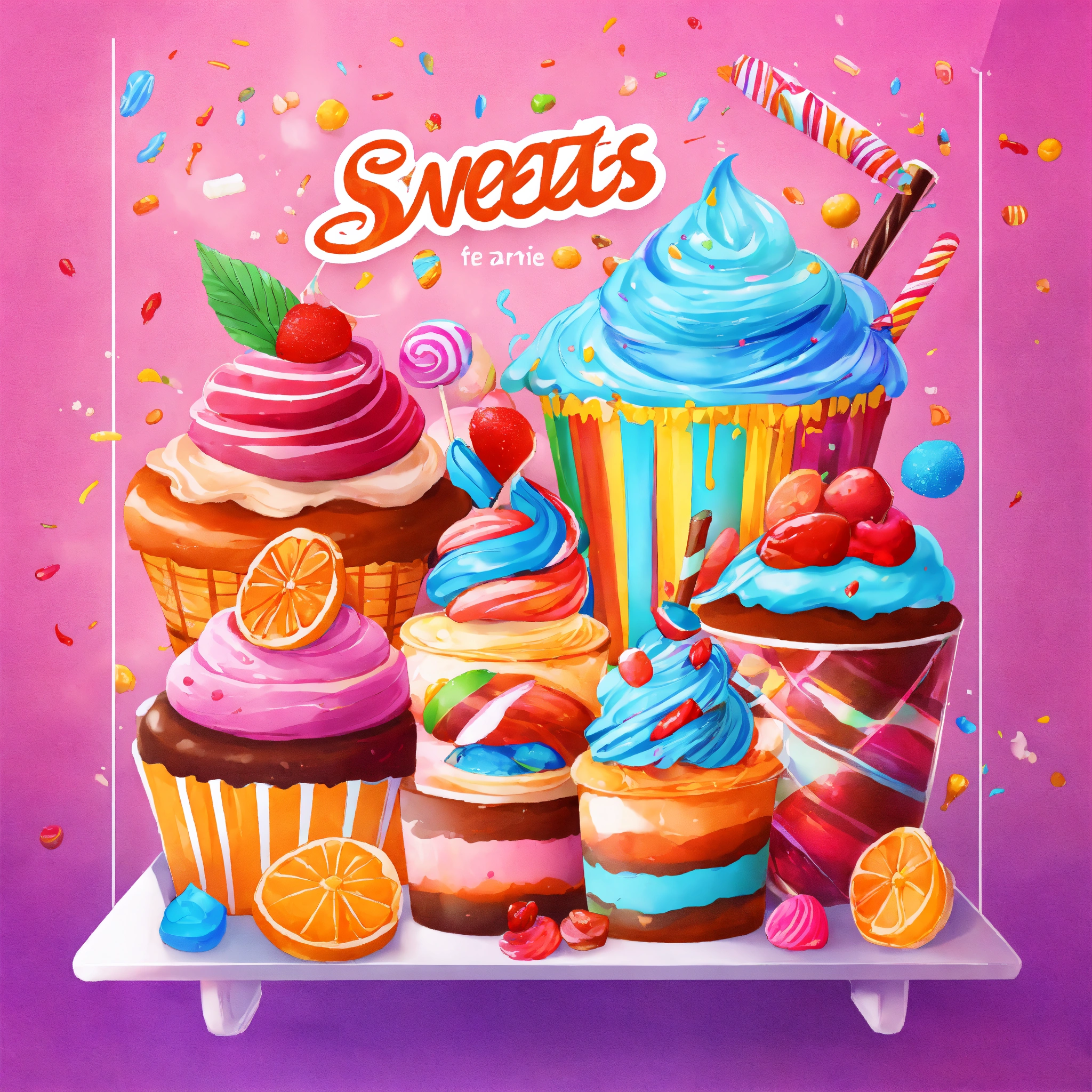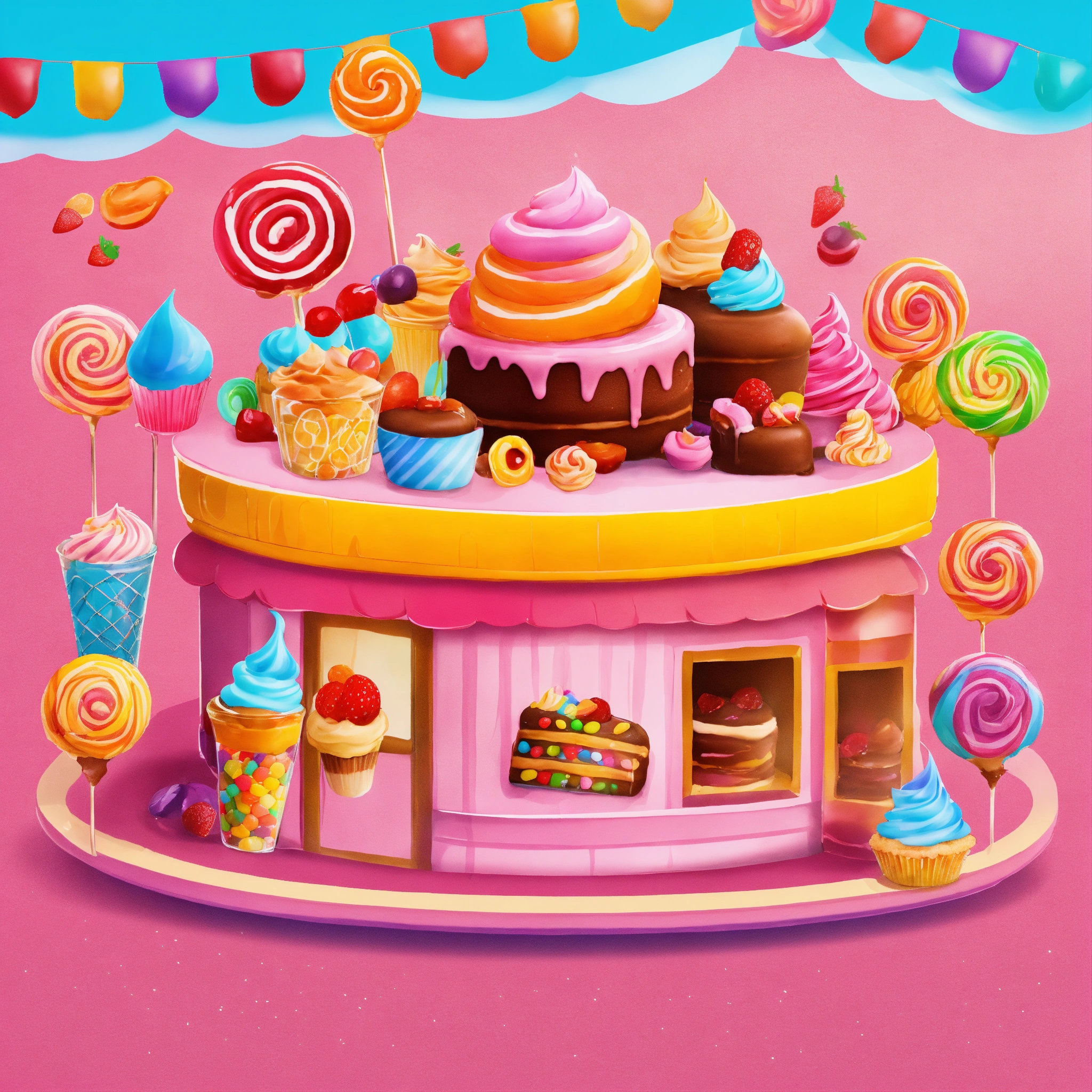 Draw a banner in bright colors for a website where people enjoy sweets