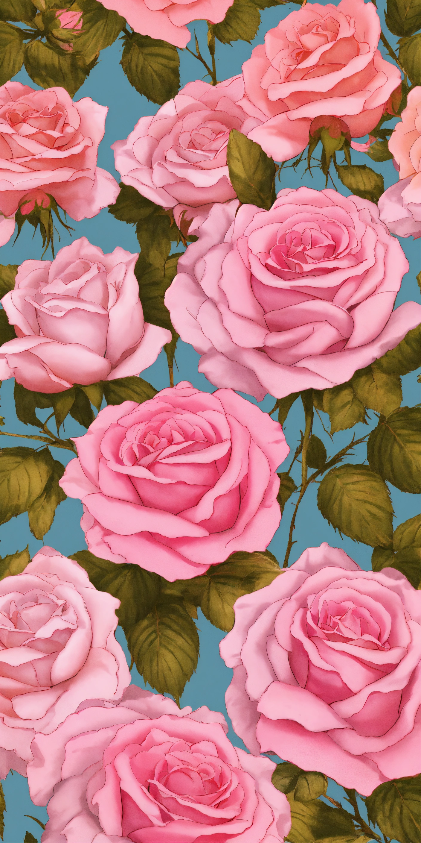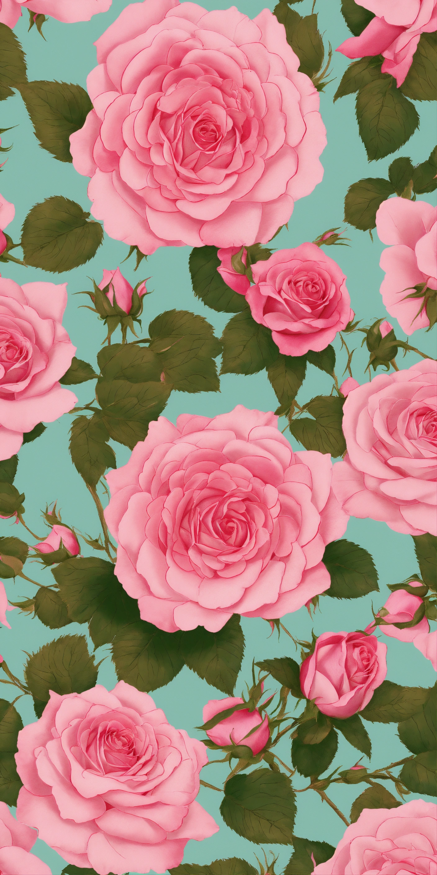 Create a seamless pattern using many small pink roses on a contrasting pastel background, design illustration color drawing, 16k