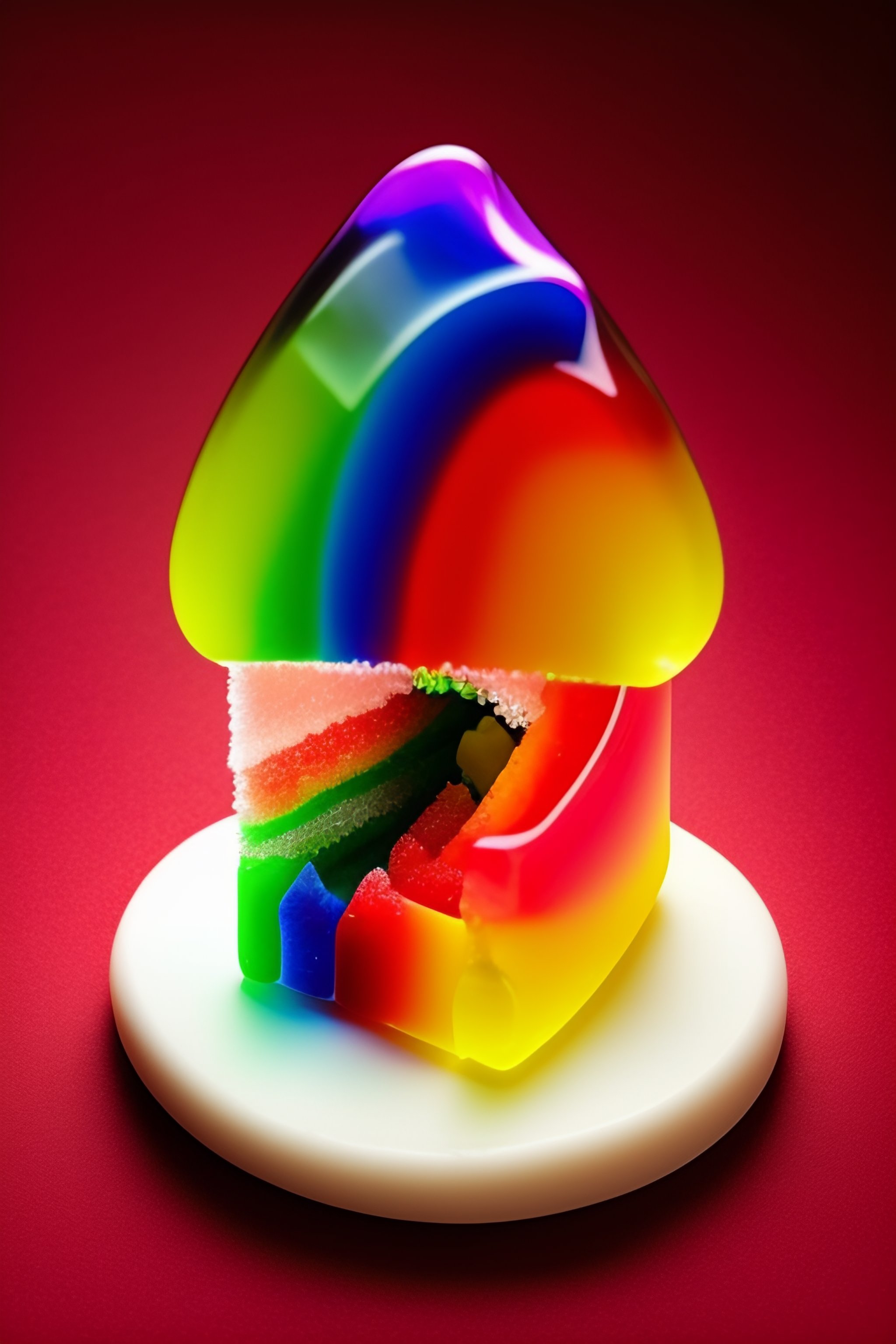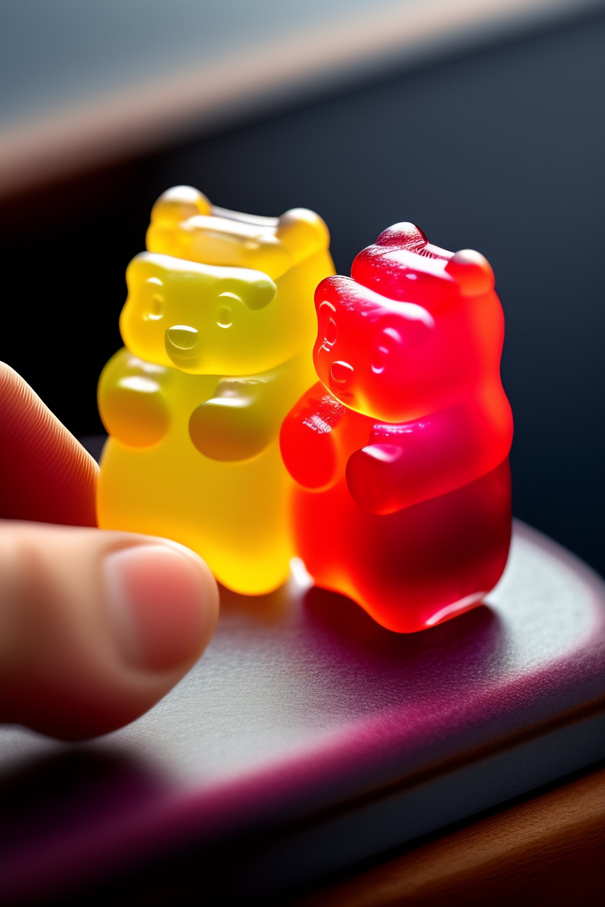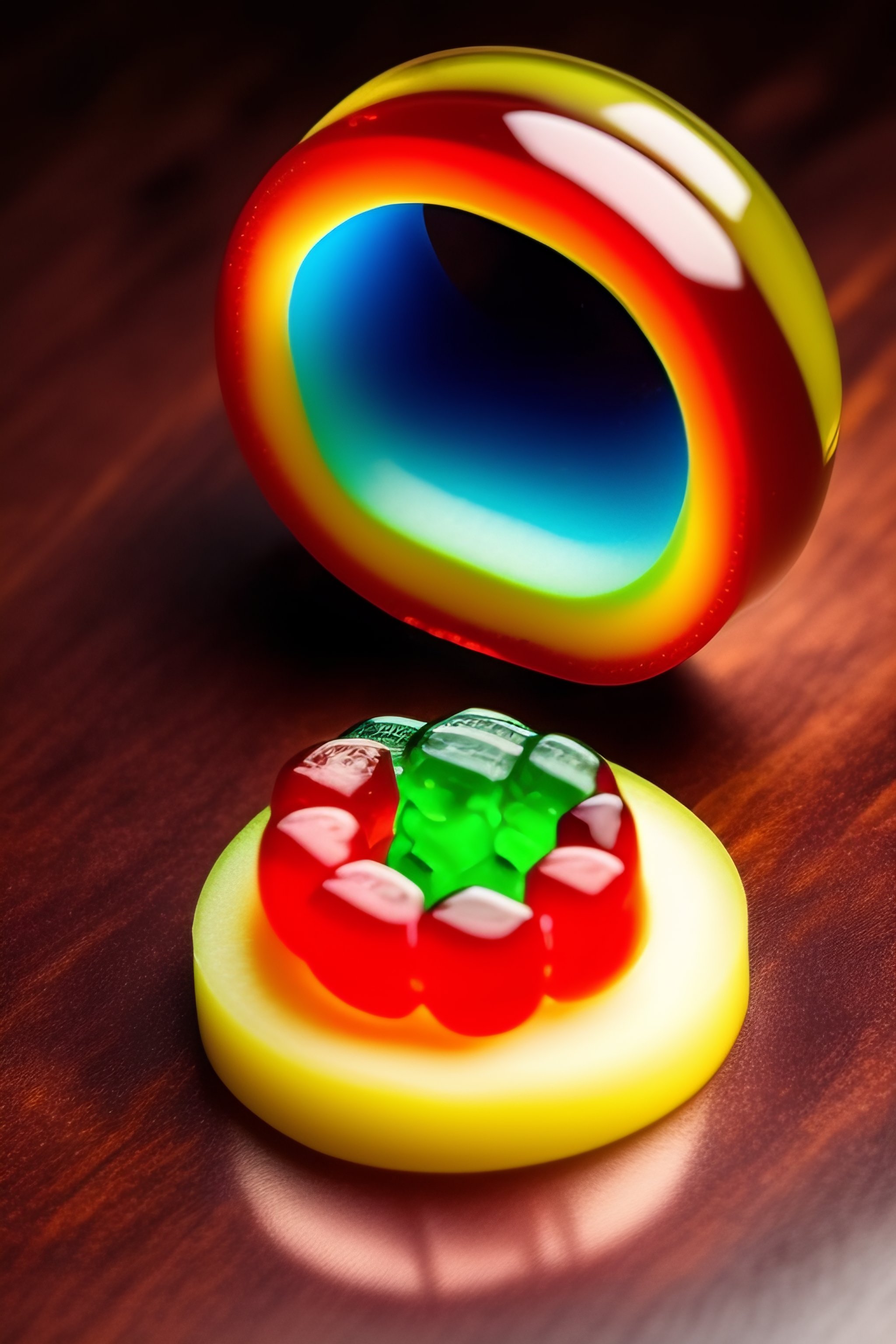 A gummy bear cutting another gummy bear in half