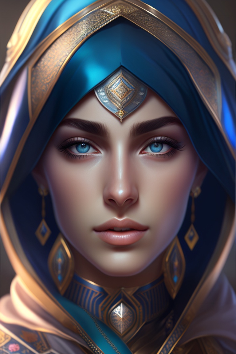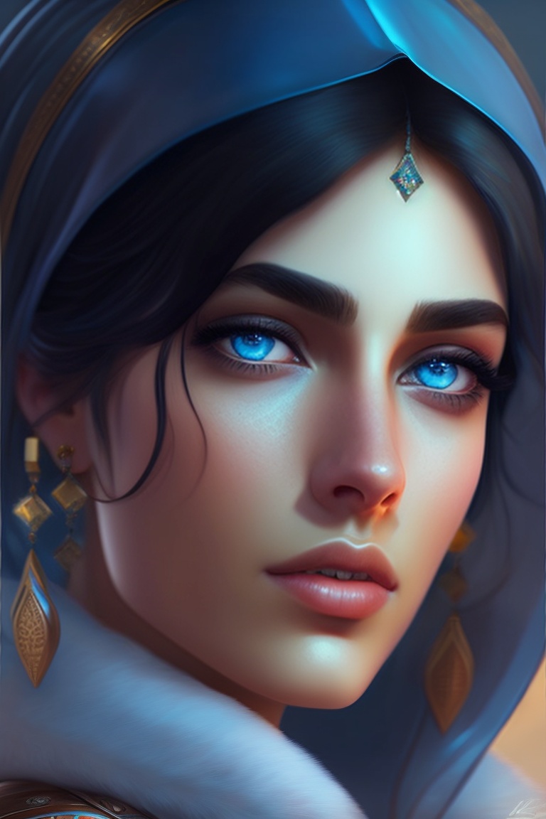 Greek arab, ameera al taweel, blue eyes, sharp focus, beautiful face, hyper-realistic, highly detailed, hd, by brom, by beeple, studio ghibli, wallpaper, highly detailed, trending on artstation