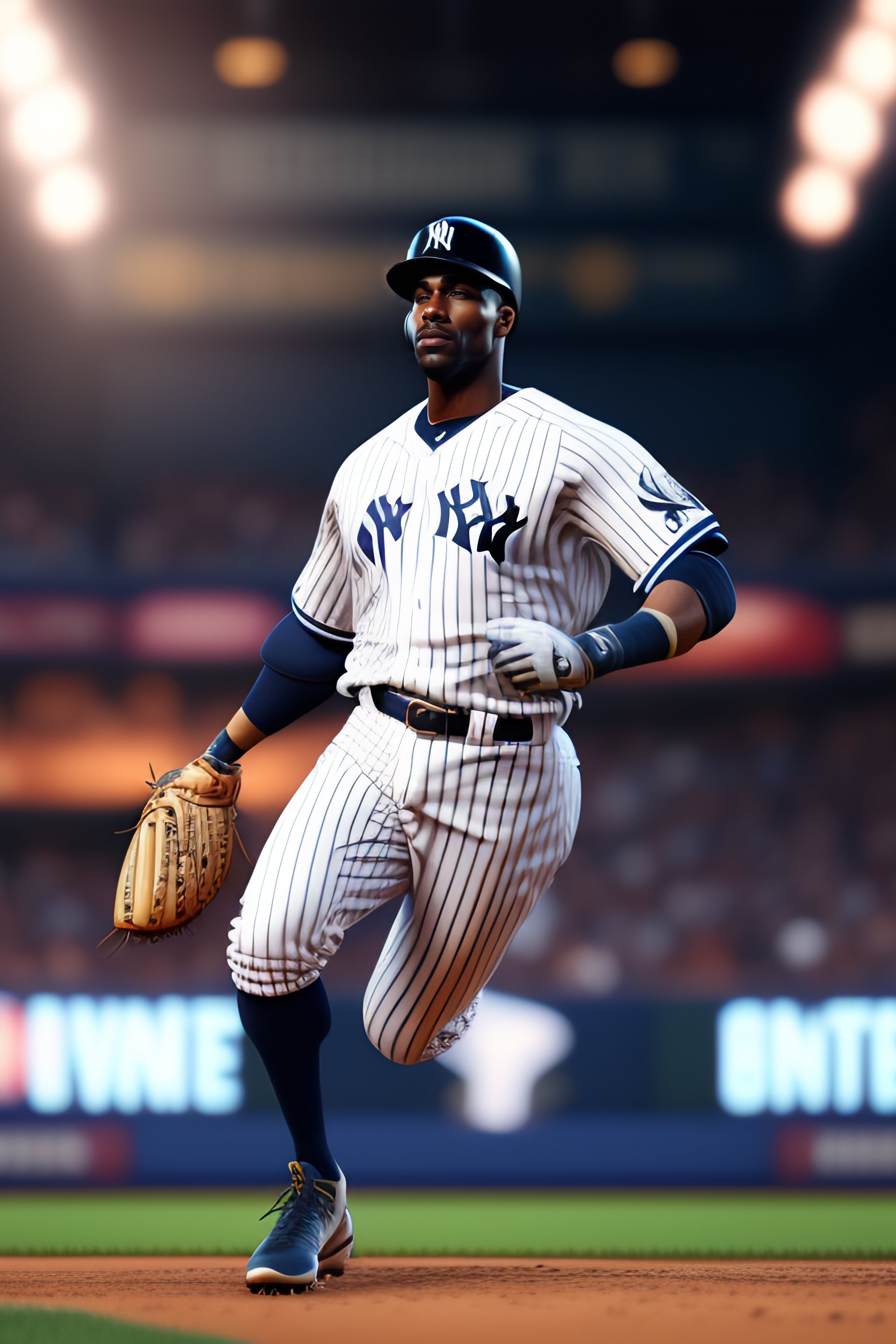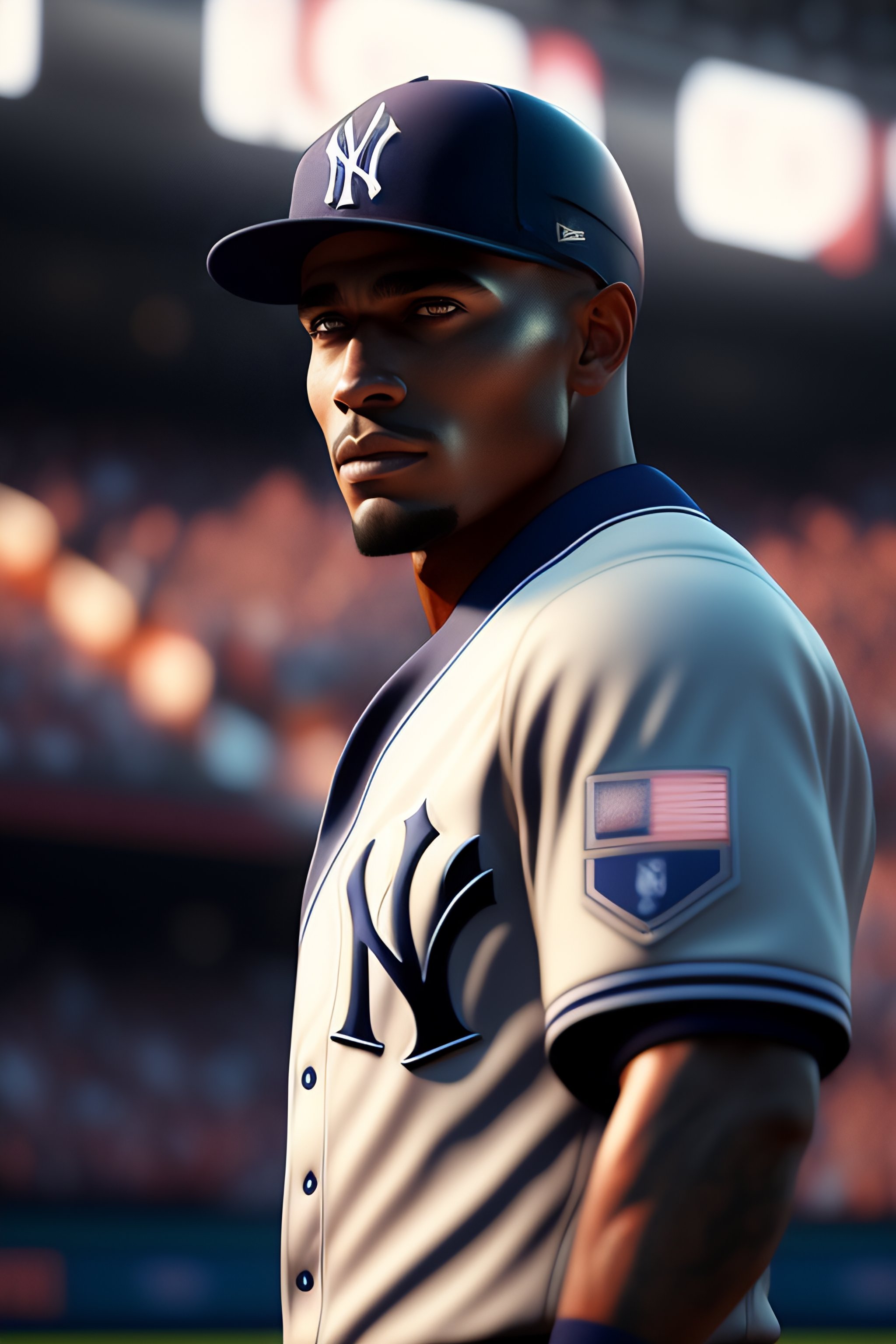 New york yankees uniform, unreal engine, cozy indoor lighting, artstation, detailed, cinematic, daz, hyperrealistic, octane render, fullbody, symetric