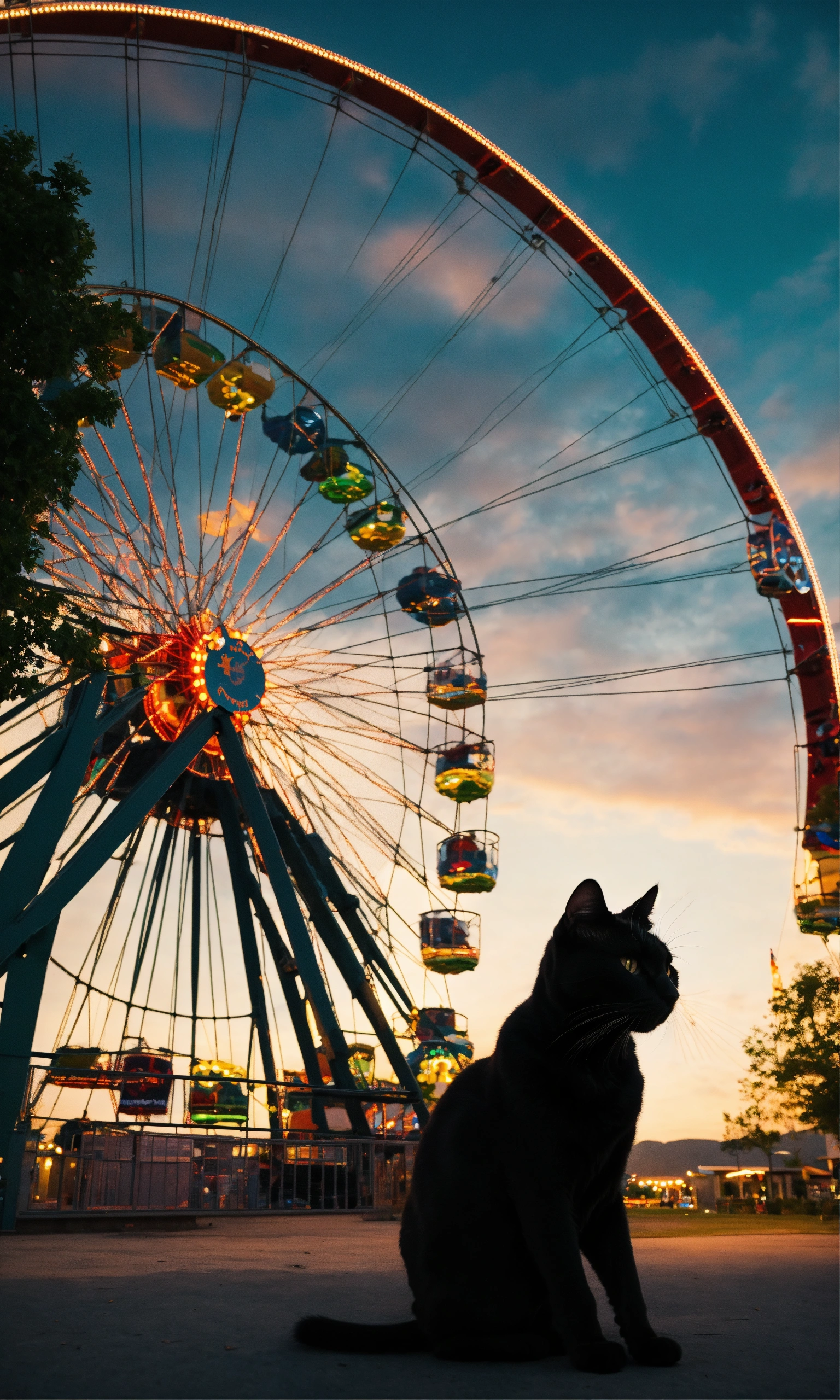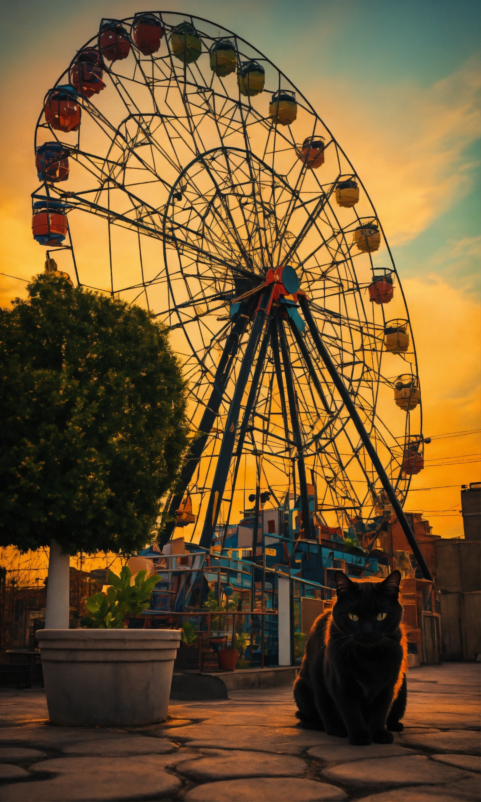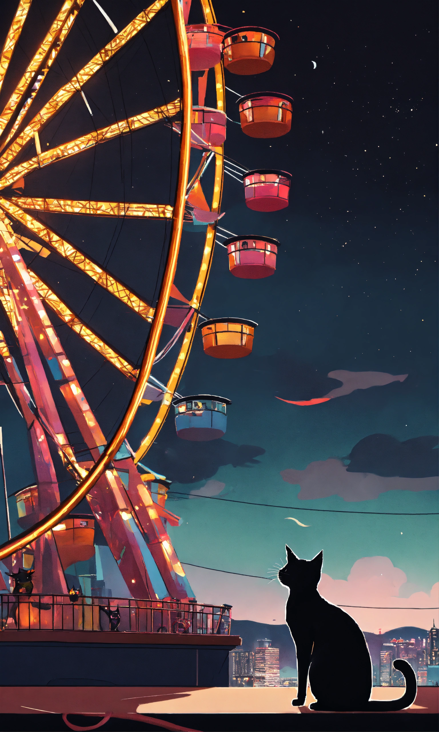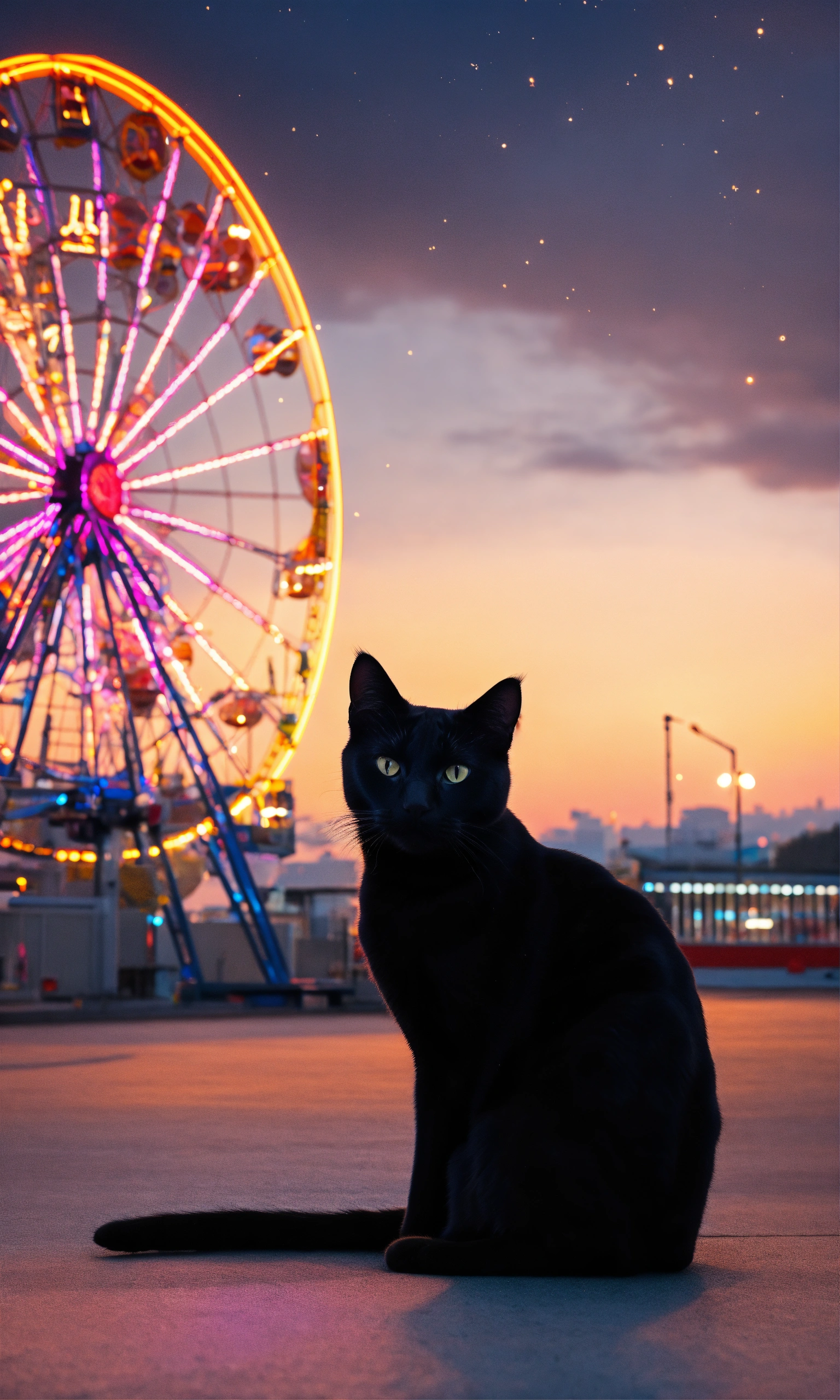 A black cat and a ferris wheel