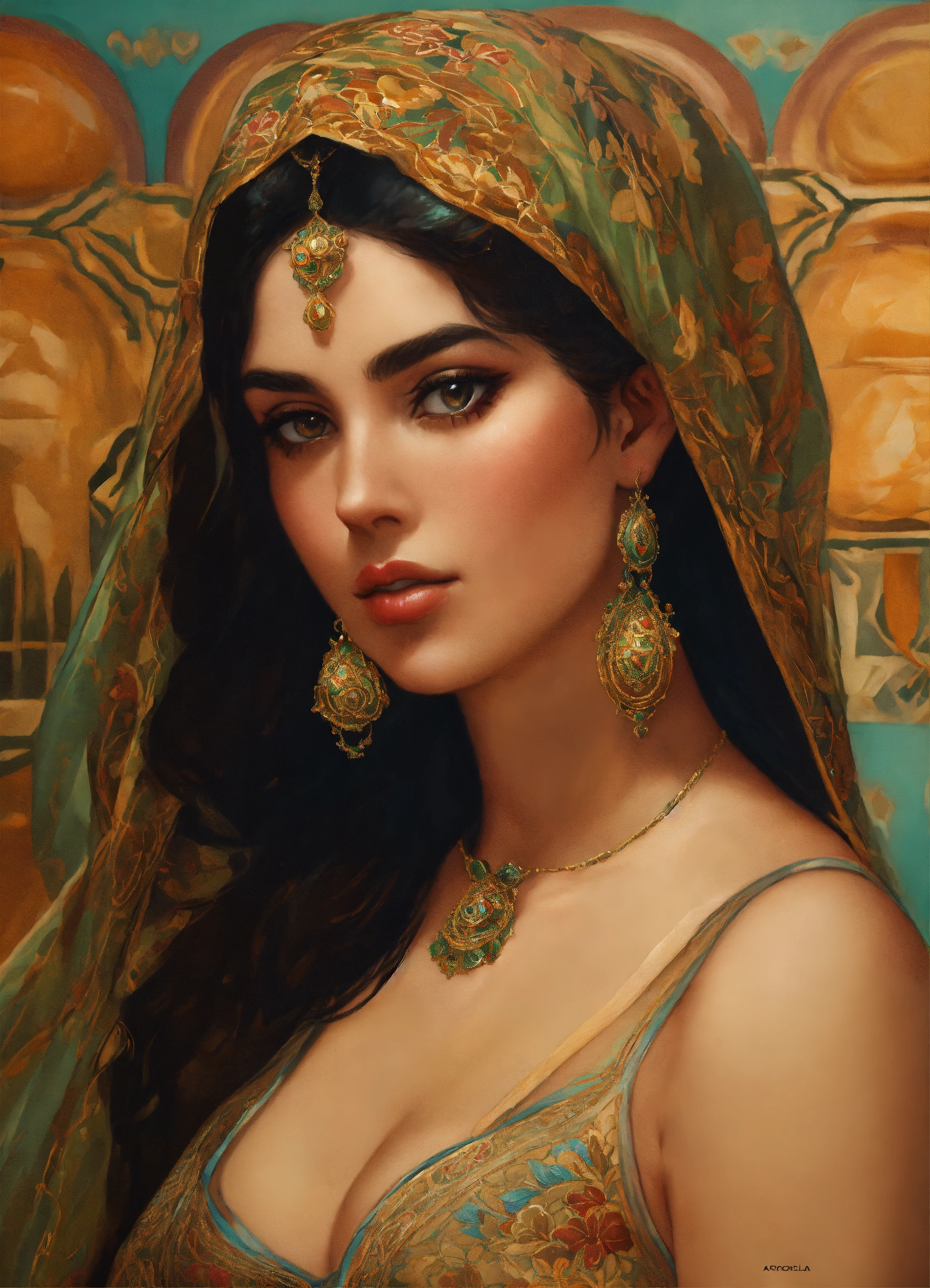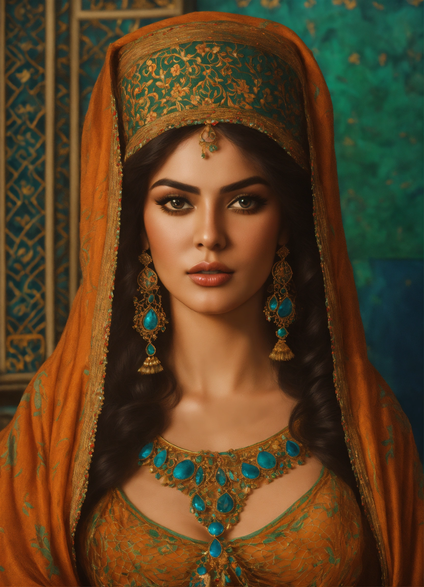 Persian woman, beauty, big jugs, aesthetic, beautiful, fishnet, cartoonish style with hyperrealism, visible aeriola