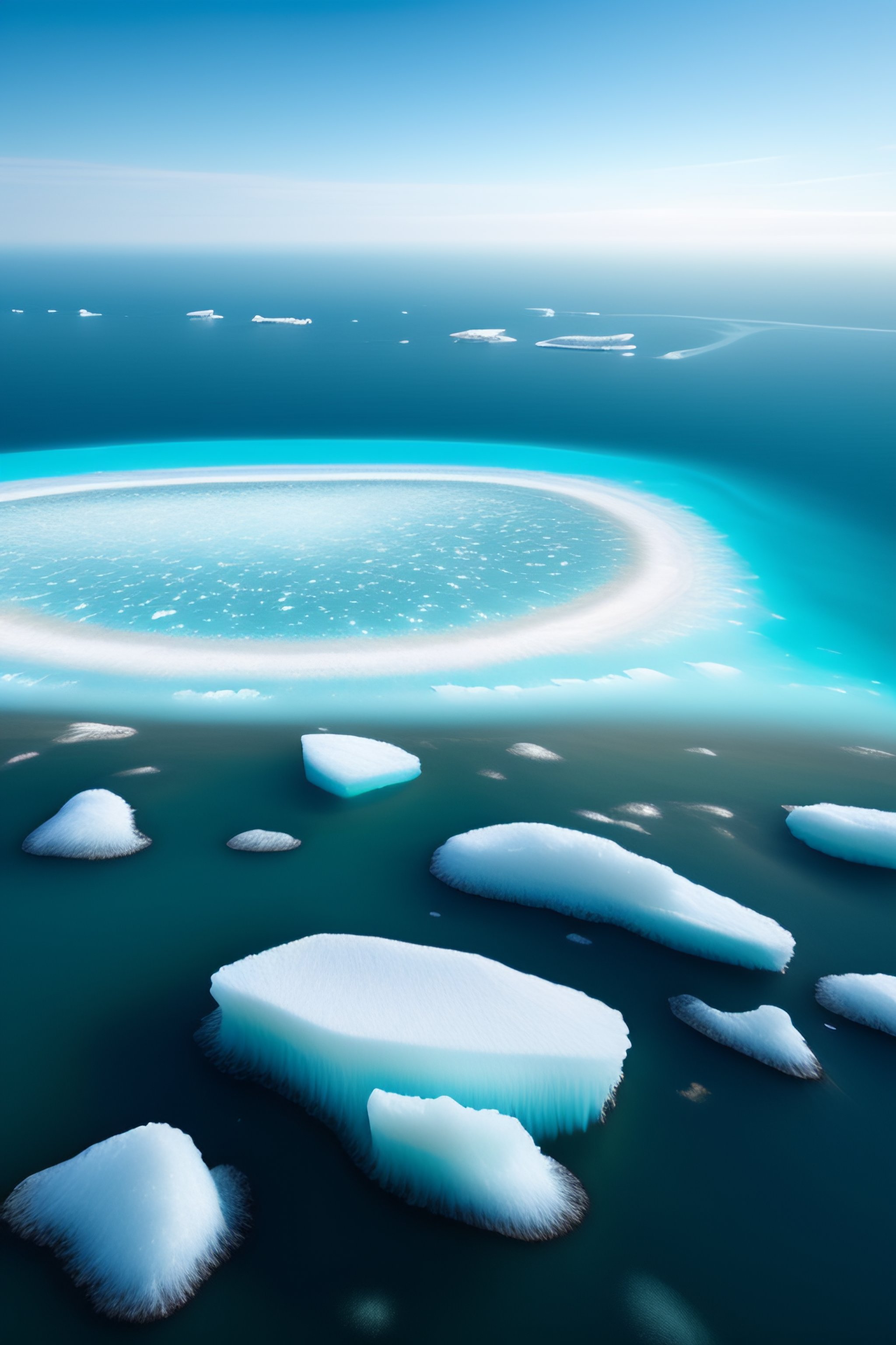 Hyperrealistic photo of the icebergs in the ocean
