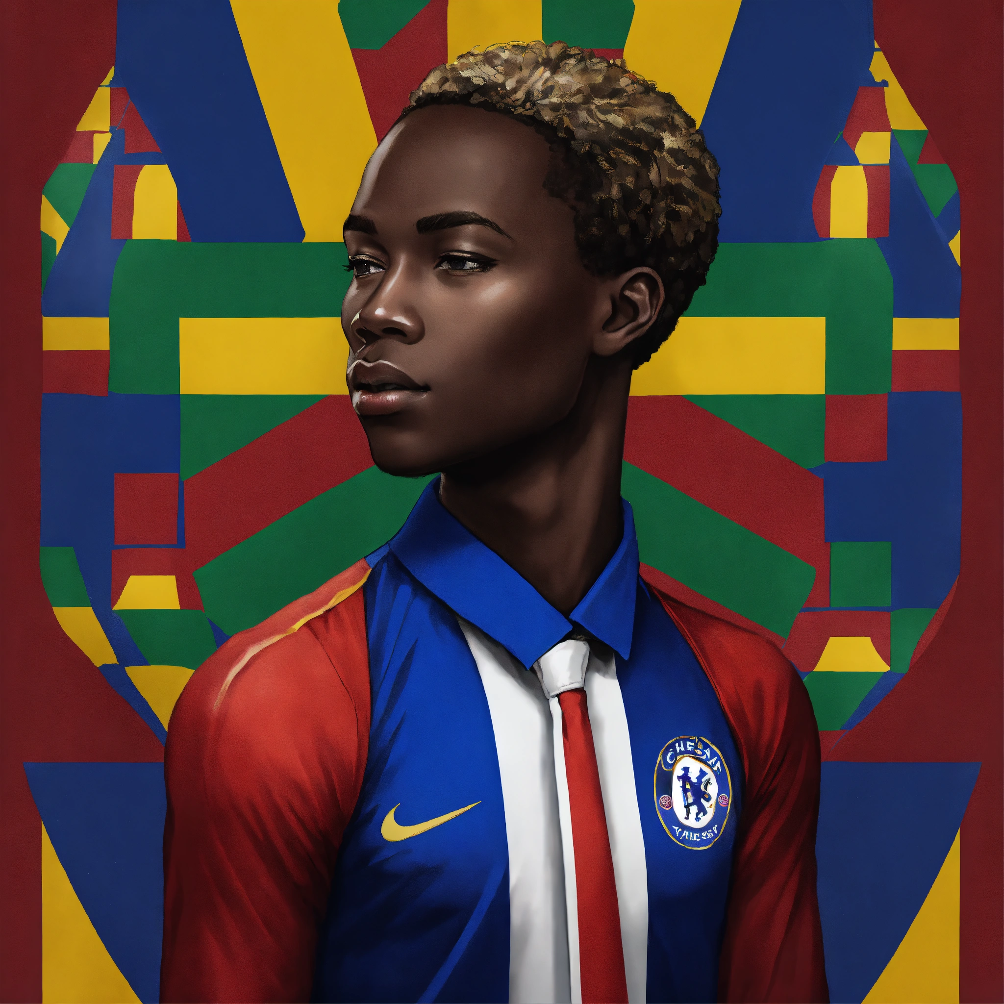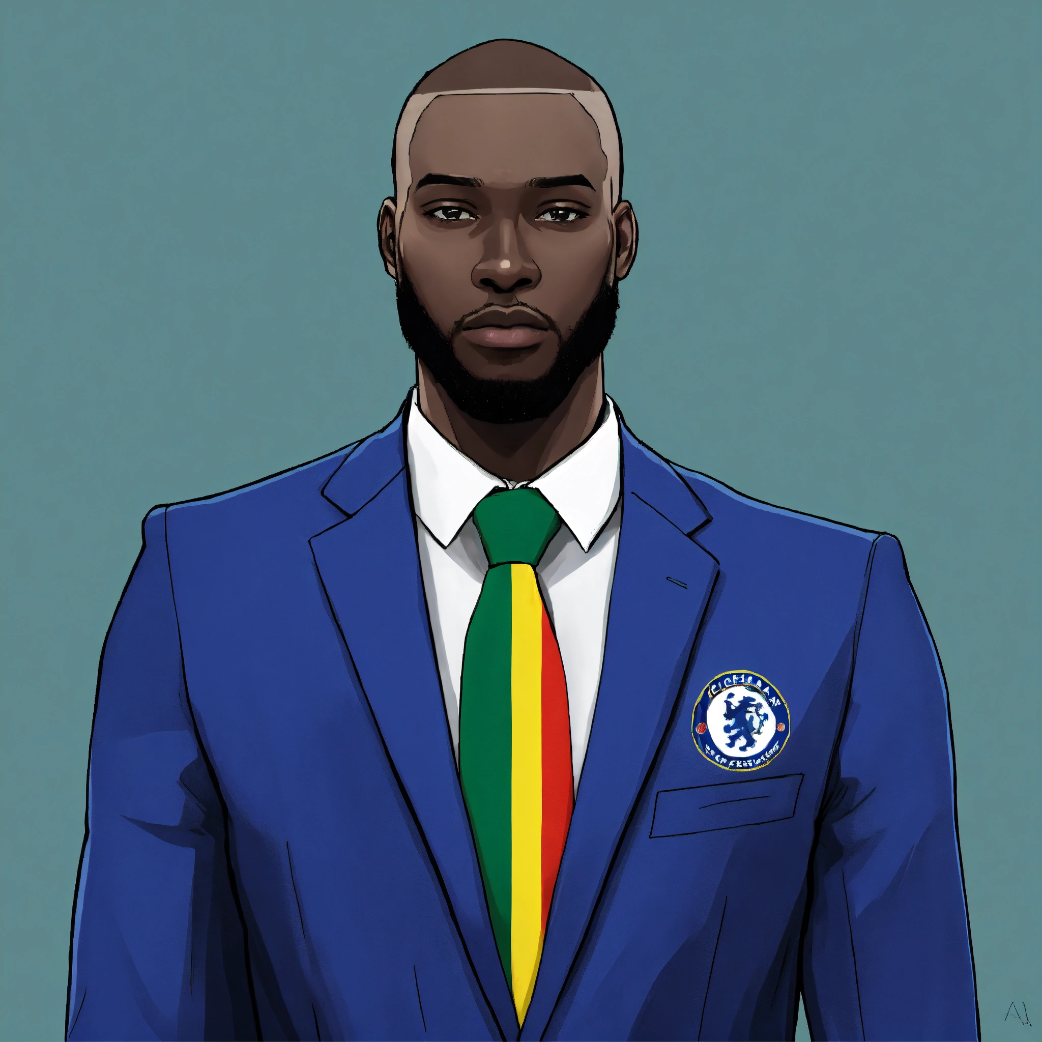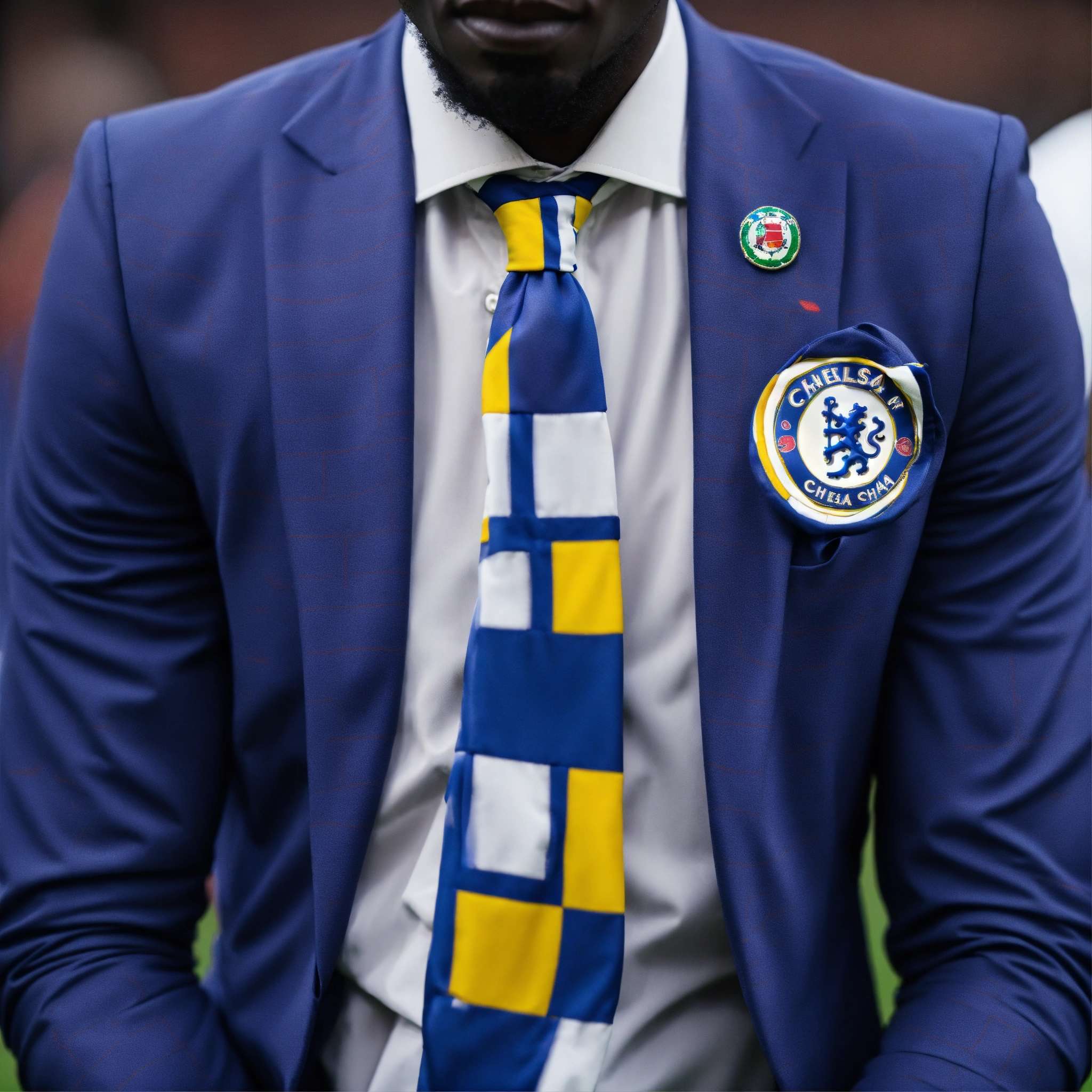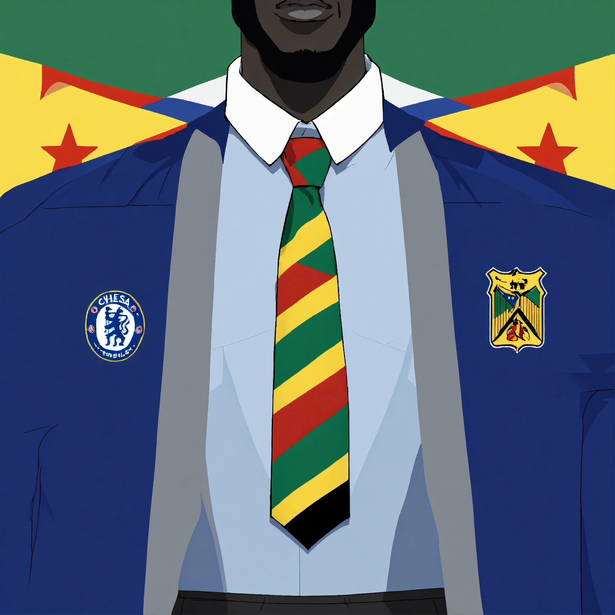 Faceless african dressed in a chelsea soccer team tie, only show from neck down. chelsea logo should be bold. also show ghana flag