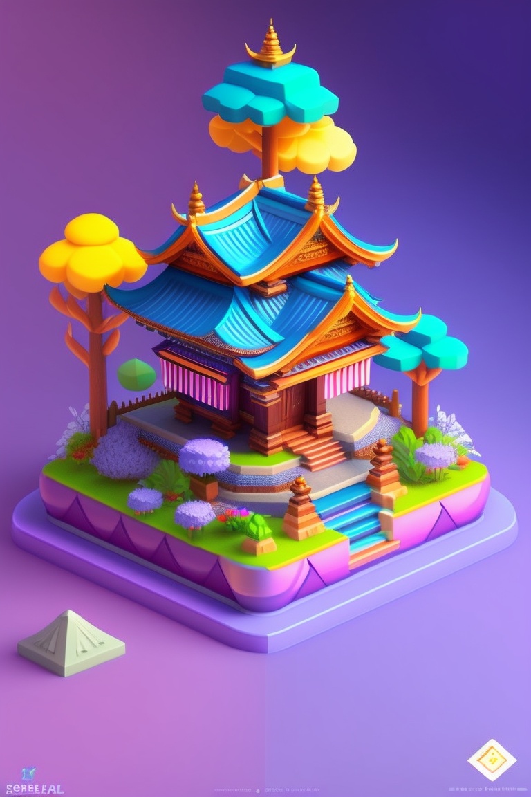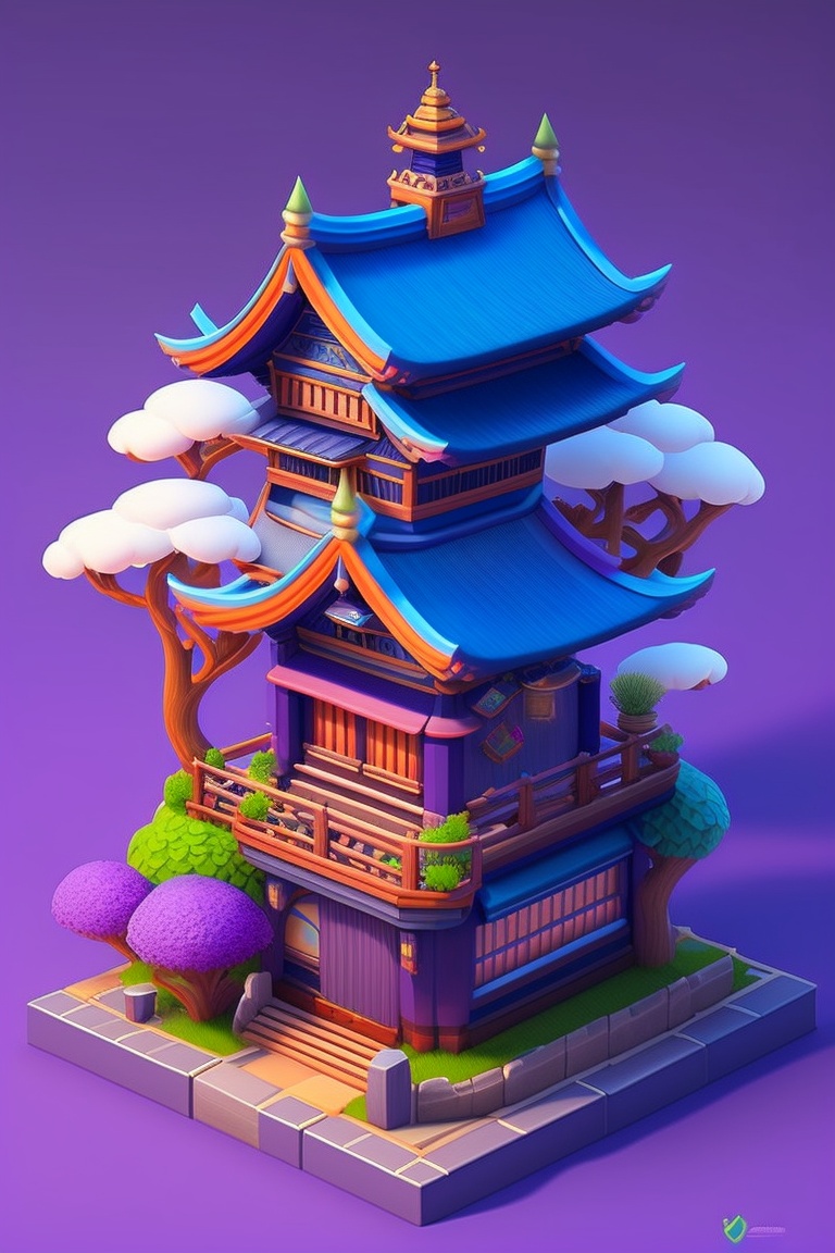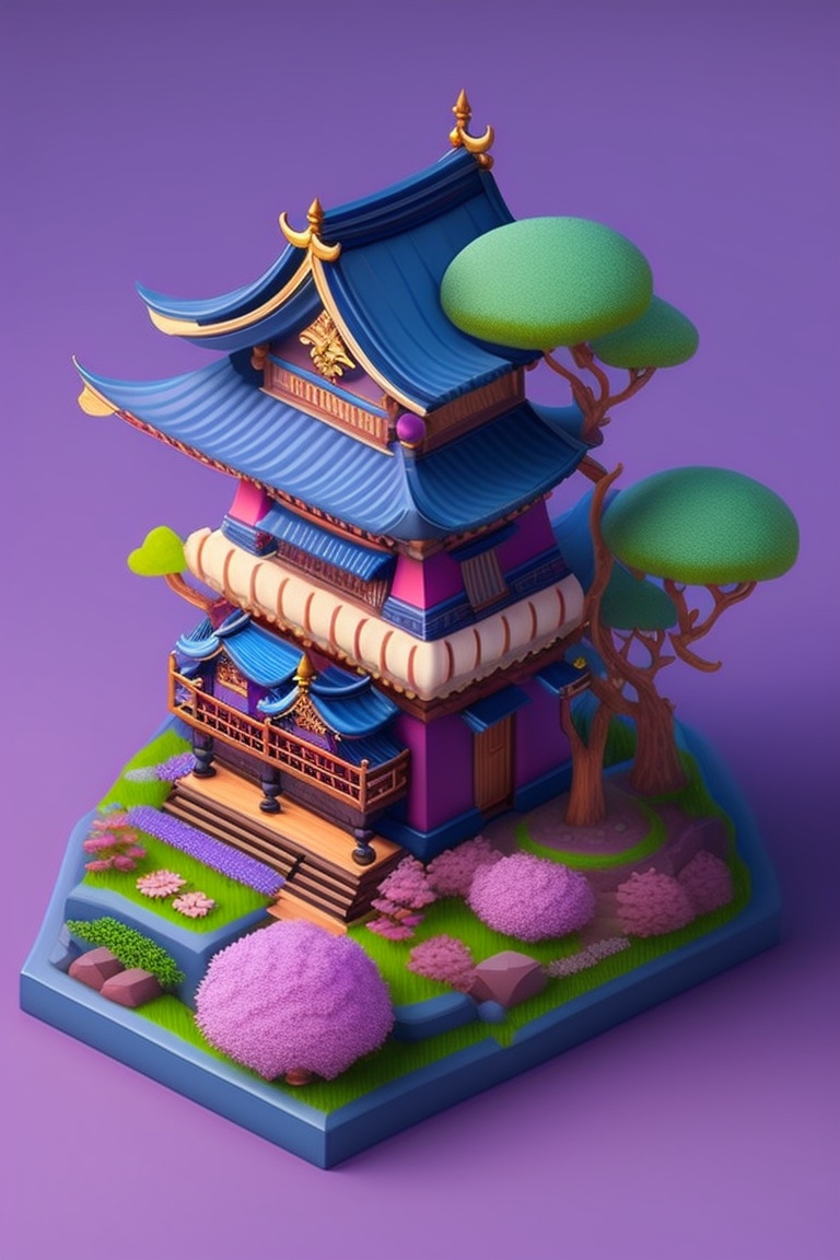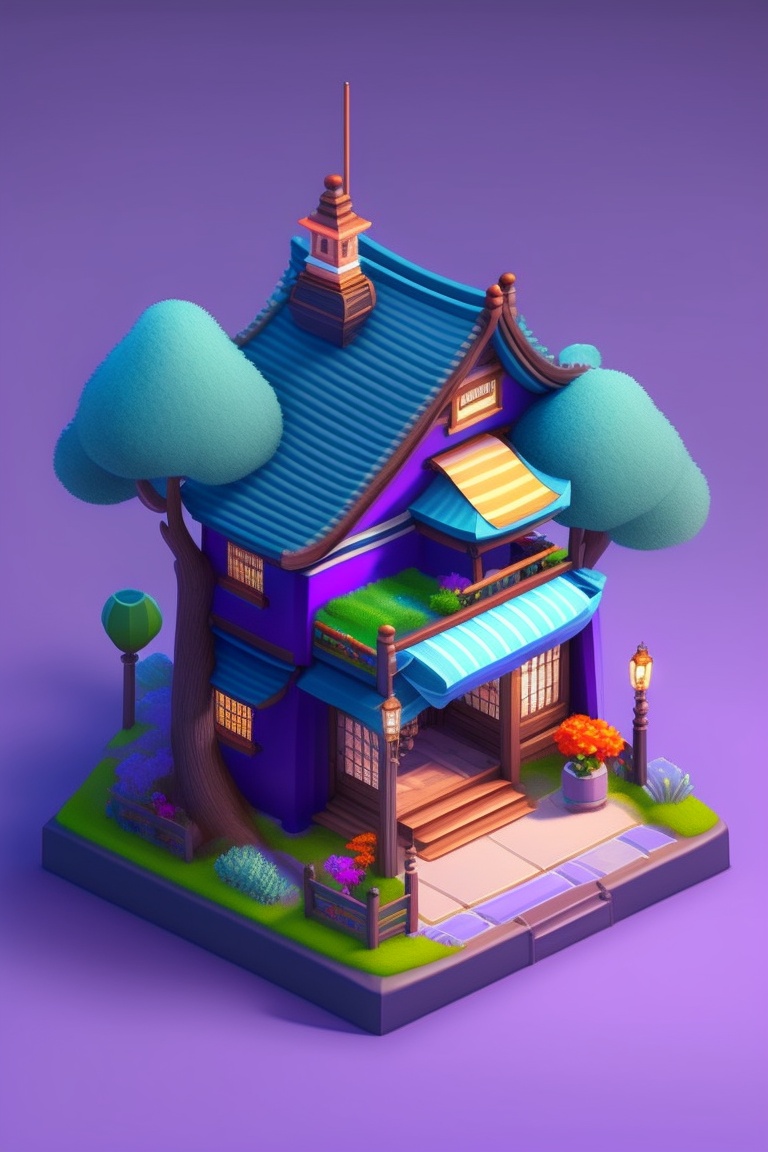 Isometric japan house, concept art, featured on polycount, 2d game art, isometric, artstation, purple color, blue color