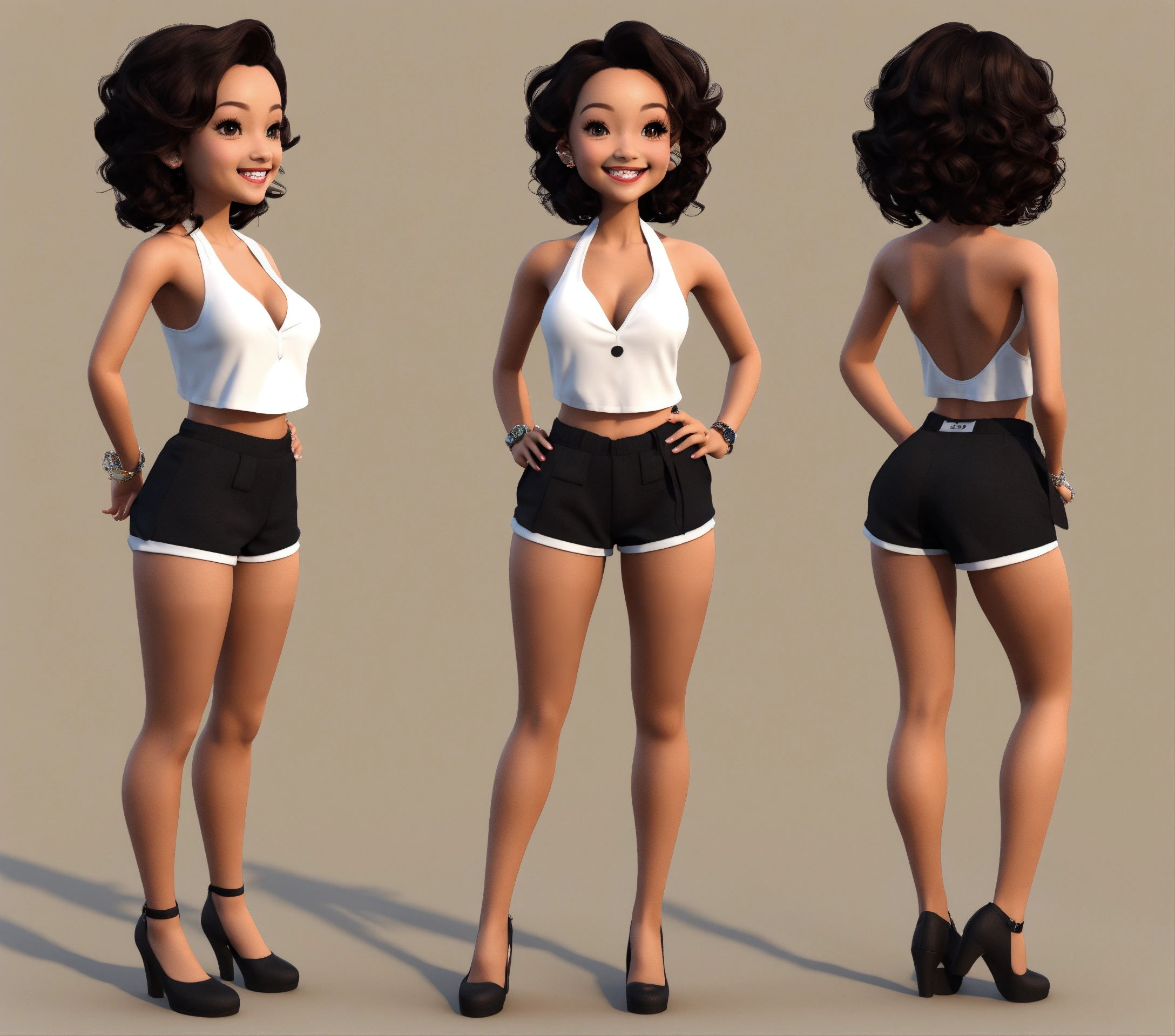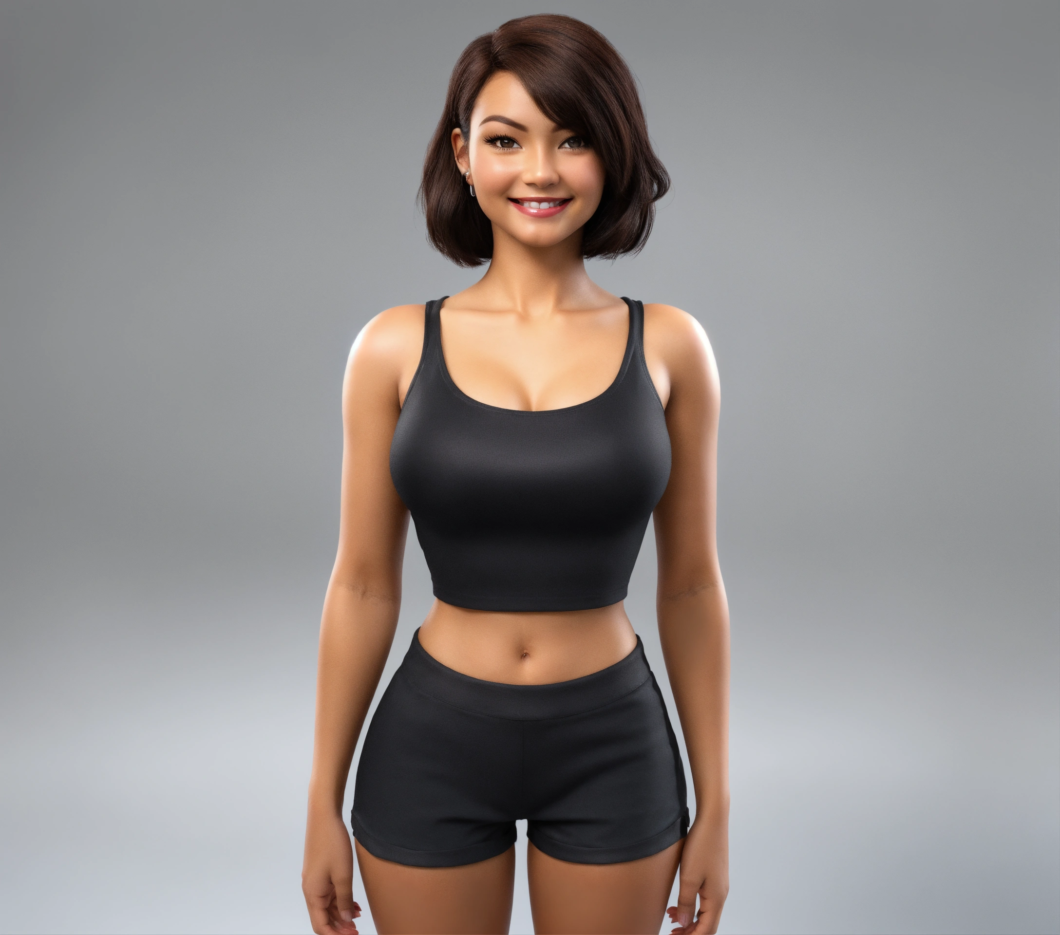 Toni, skin gorgeous 40s woman, white background, short hair, standing, facing front. digi doll, skin, gorgeous woman, white background, short hair, standing, facing front. hd, digital art, body asymmetrical, full frame, wearing a ((black shorts )))front hi key lighting, ((((showing nice smile, )))) 3d, ((((((((((((show whole body)))))), no shadows, cartoon brown skin, gorgeous 40s woman, white background, long hair, standing, facing front. hd, woman, body asymmetrical, no shadows, tan skin, gorgeous woman, white background, short hair, standing, facing front. hd, 3((((((((((((show whole body)))))), no shadows, cartoon, wearing black shorts, full frame of the body 35mm wide angle shot, pin-up styles, make image into 3d, coloring book, vector, normal chest, daz 3d, aiko 6 brown skin, gorgeous 40s woman, white background, long hair, standing, facing front. hd, woman, body asymmetrical, no shadows, tan skin, gorgeous