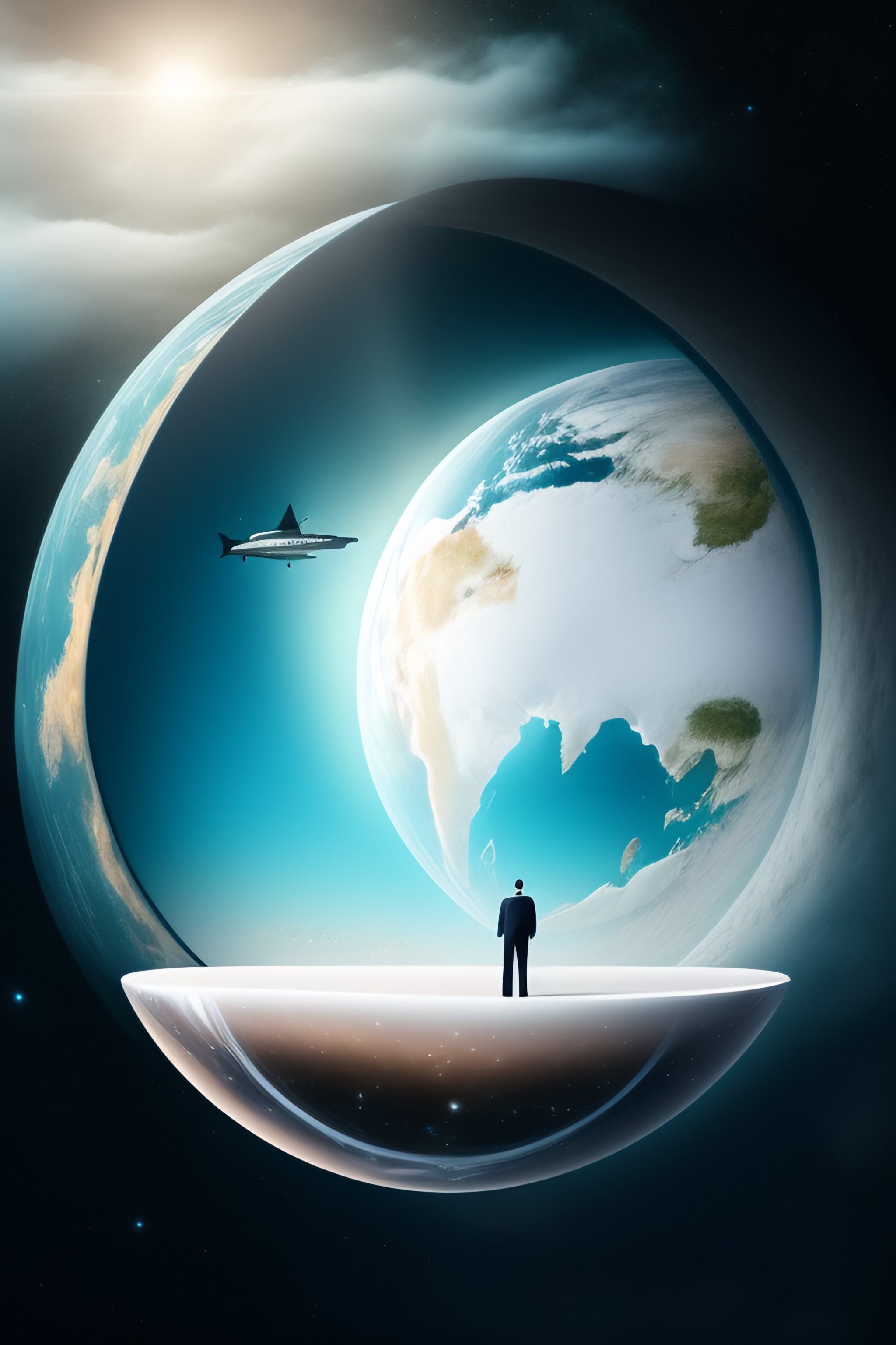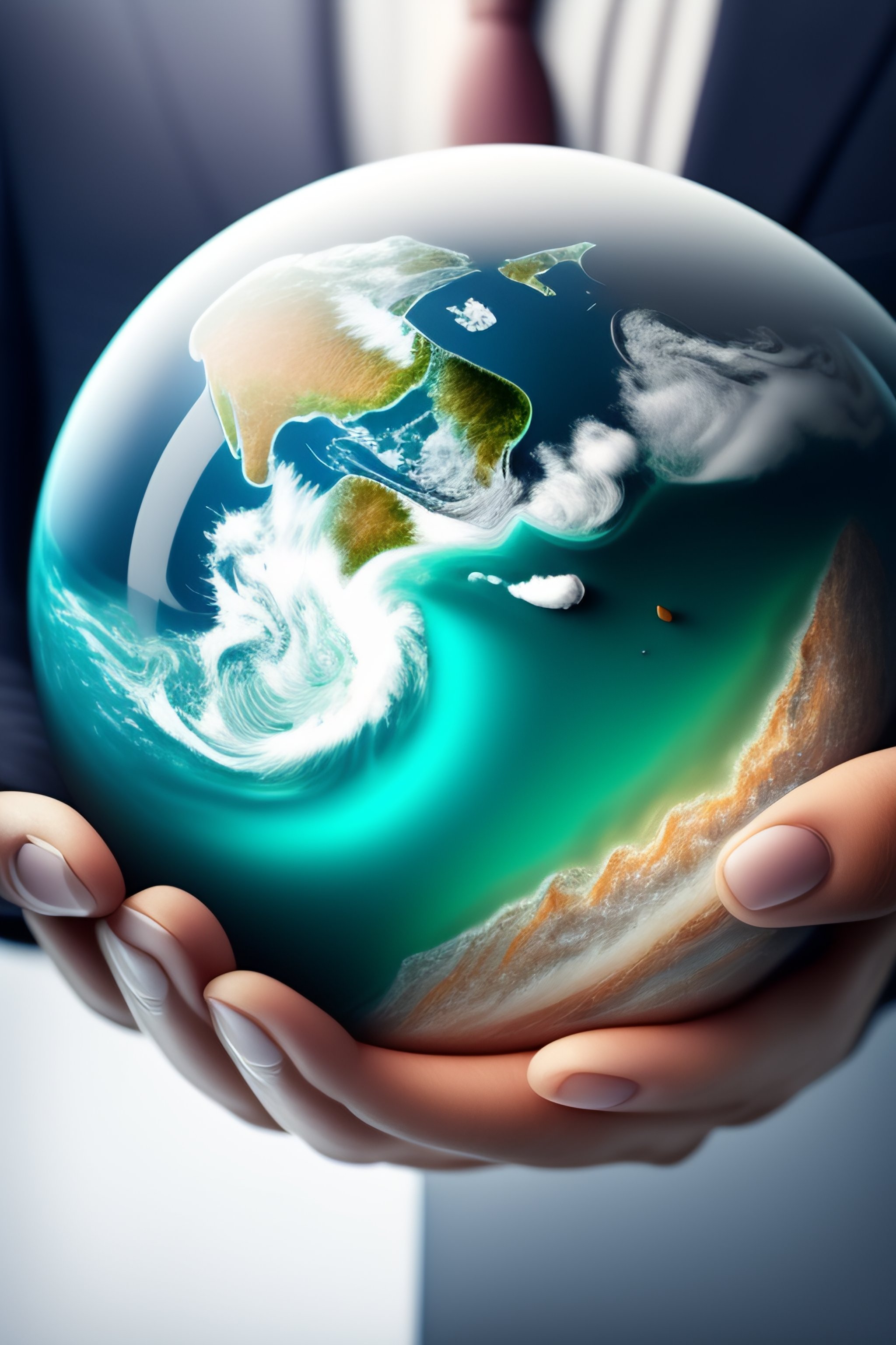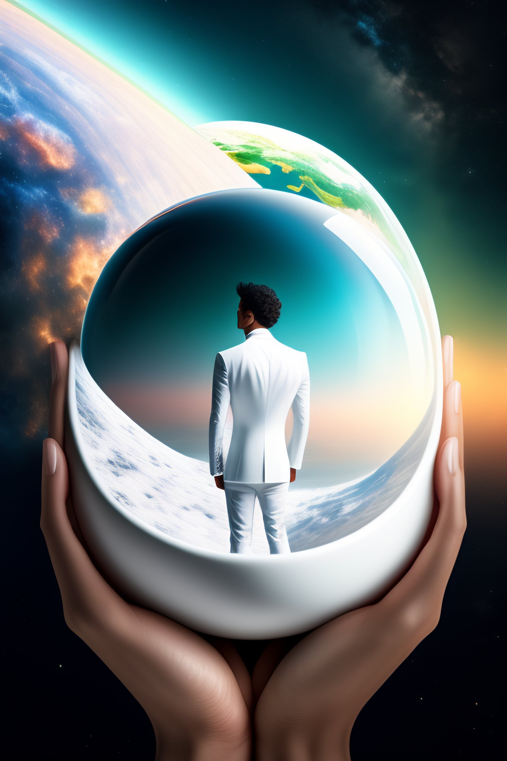 Rich man in white with a little world in this hands