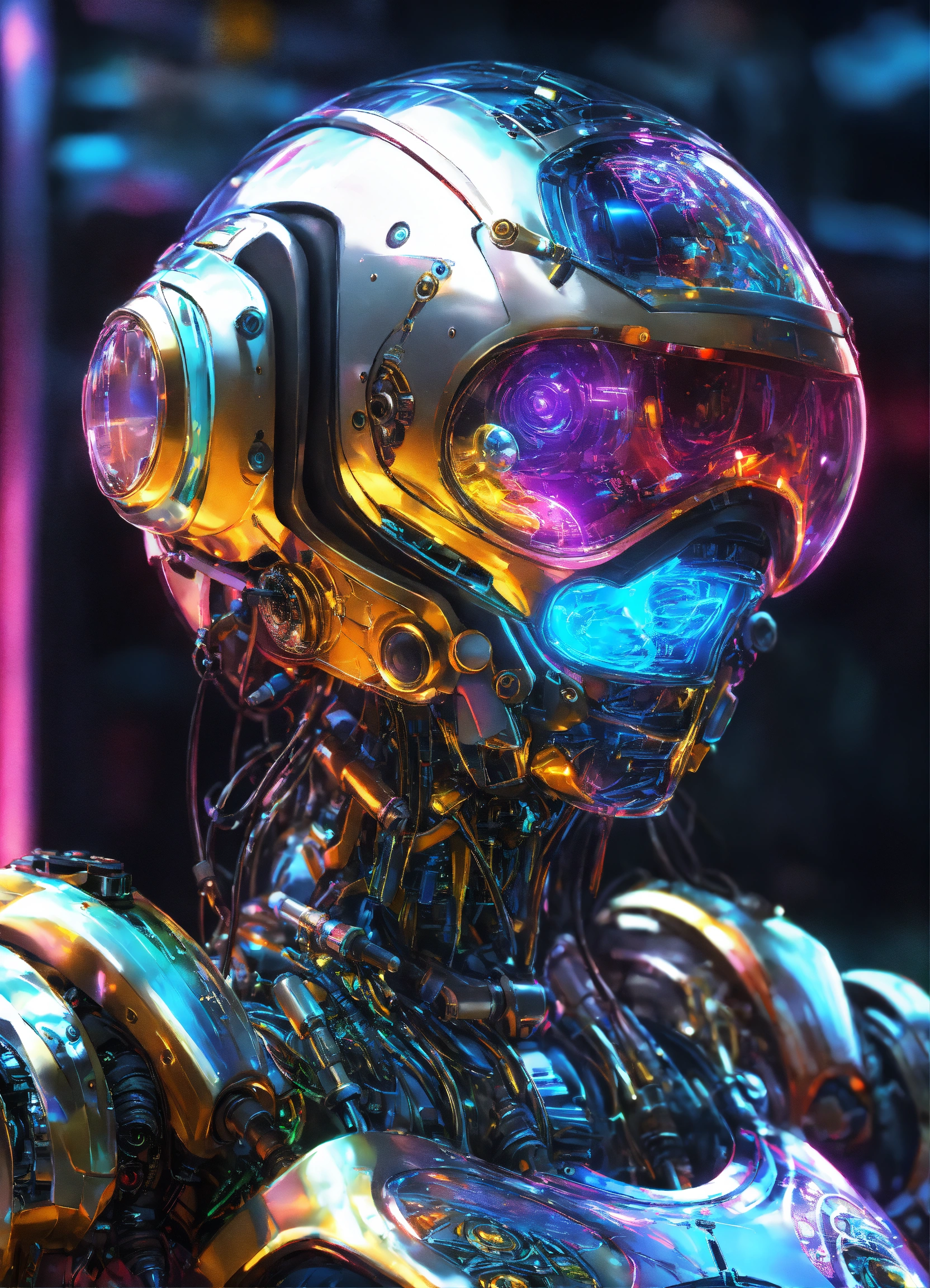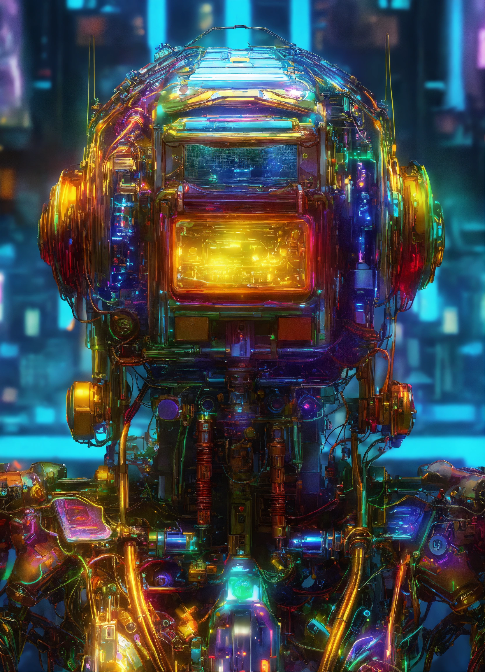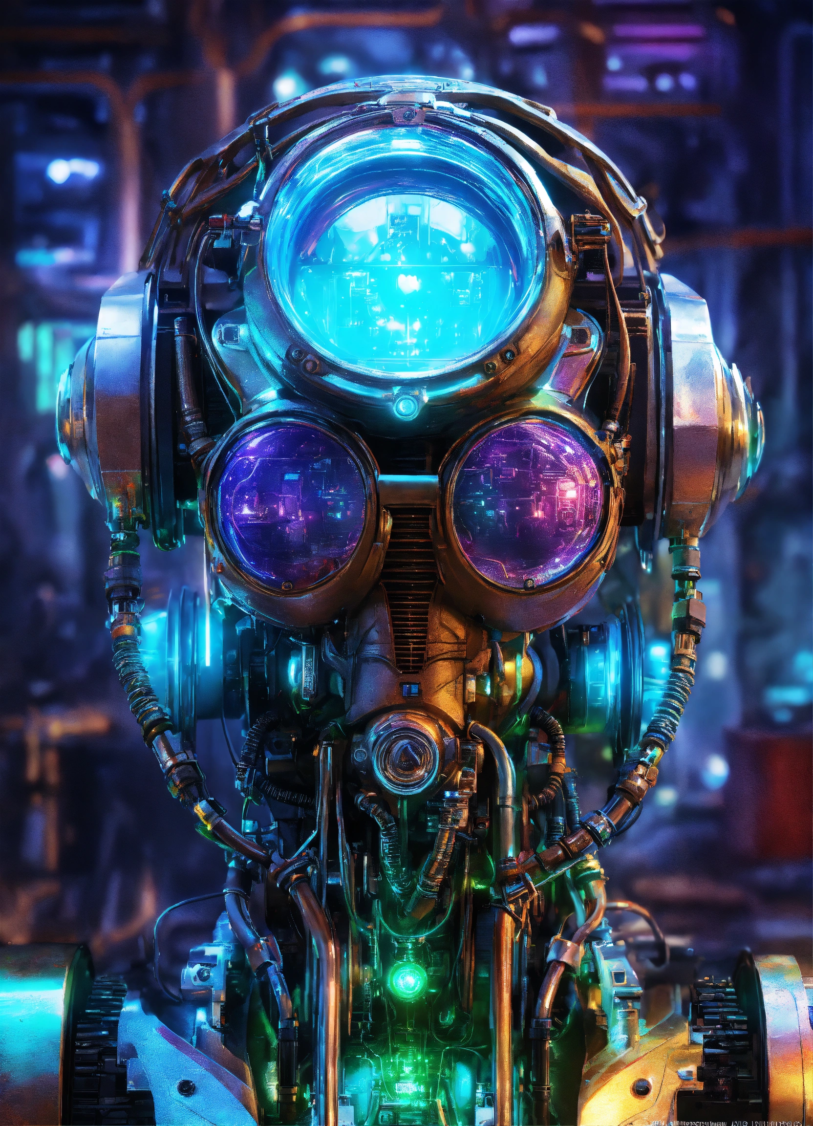 Realistic cybernetic tools, virtual reality, robots, software, networks, biopunk colourful design, 4-dimensional, reflective, liquid metal, brushed aluminum, post processing, in, hypermaximalist, elegant, ornate, hyper realistic, super detailed bioluminescence, plasma, neon, brimming with energy, electricity, power, sci-fi steampunk