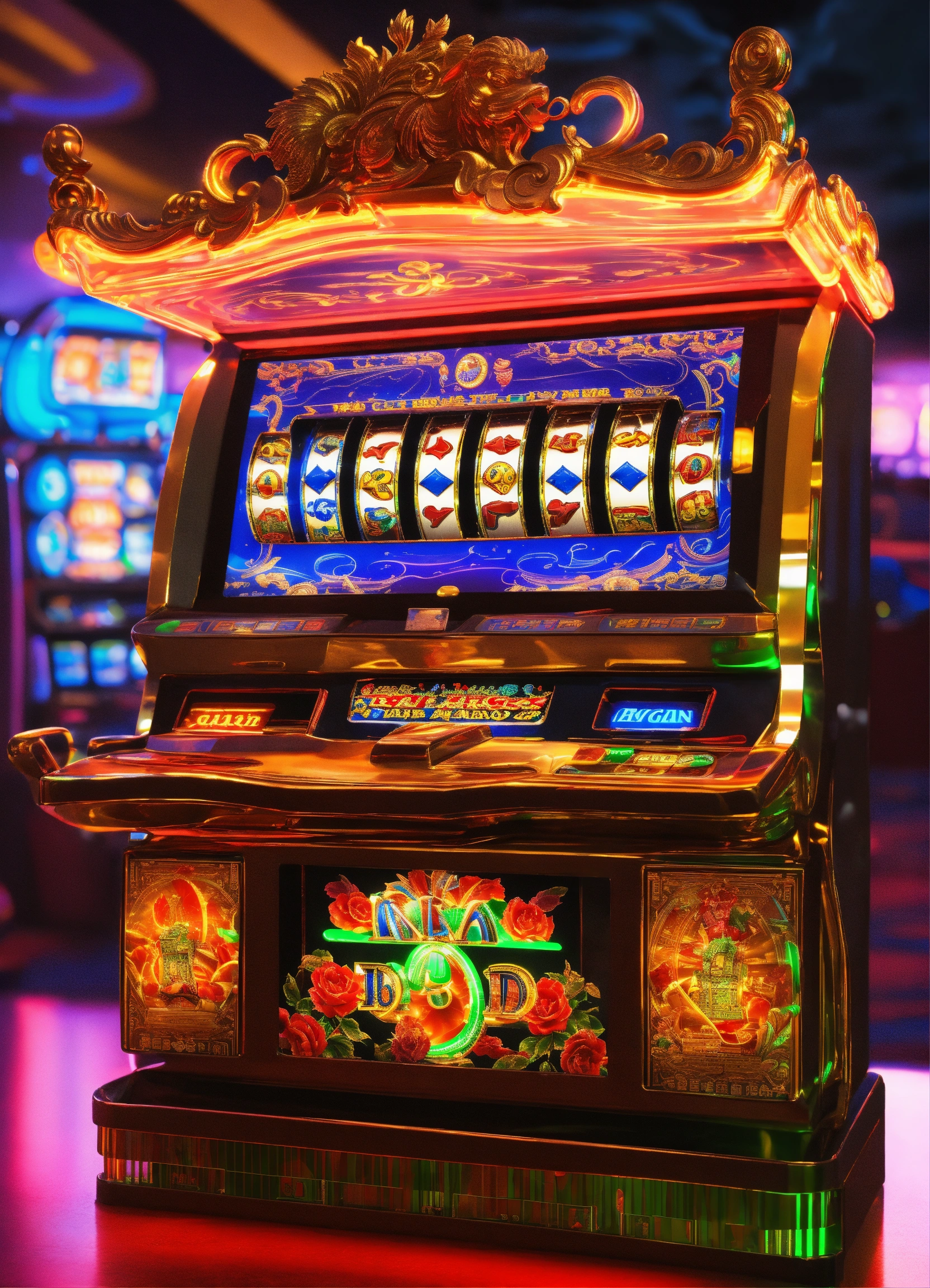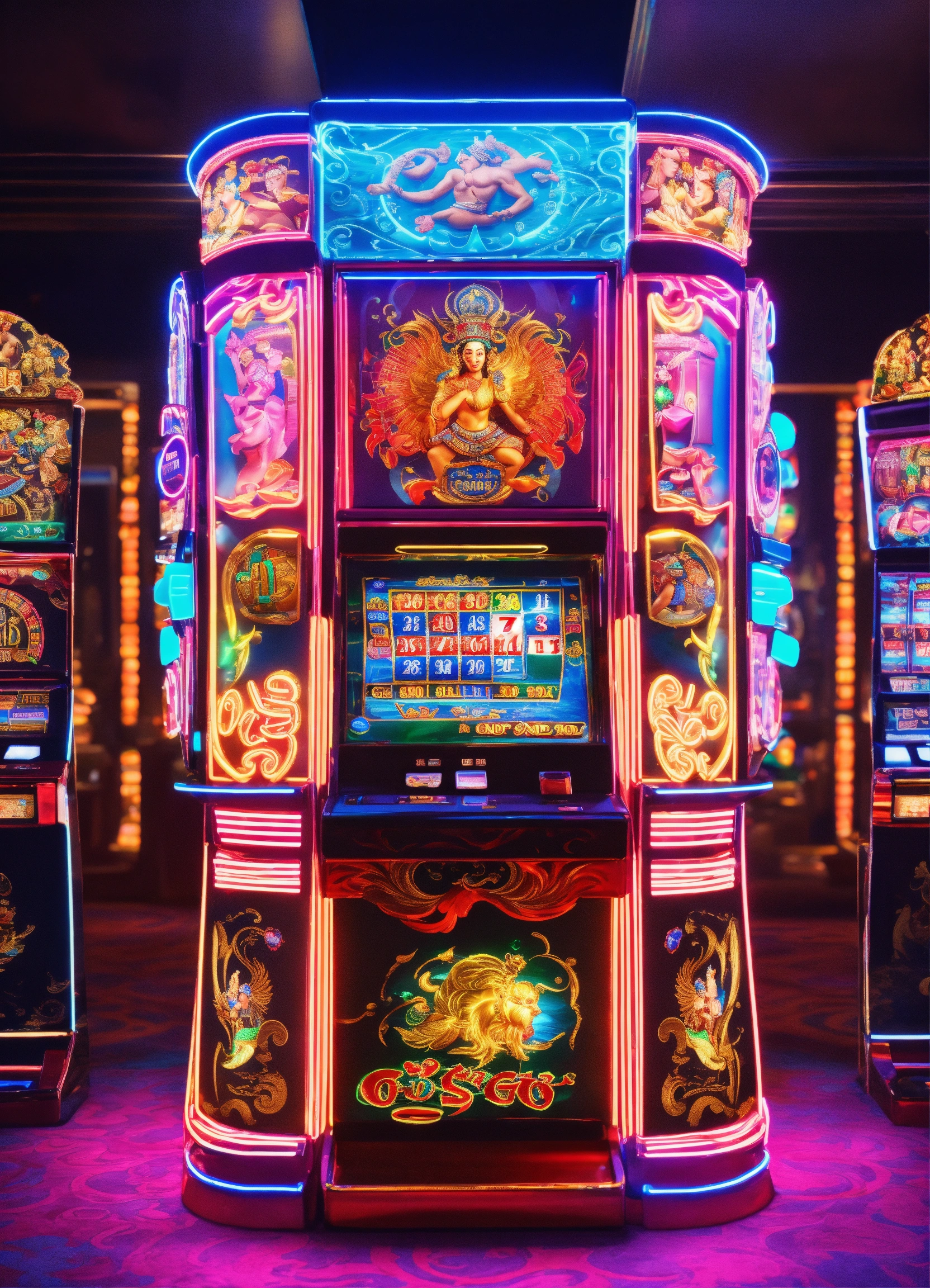 3d real god guan casino slot machine in the gambling 8k neon lighting