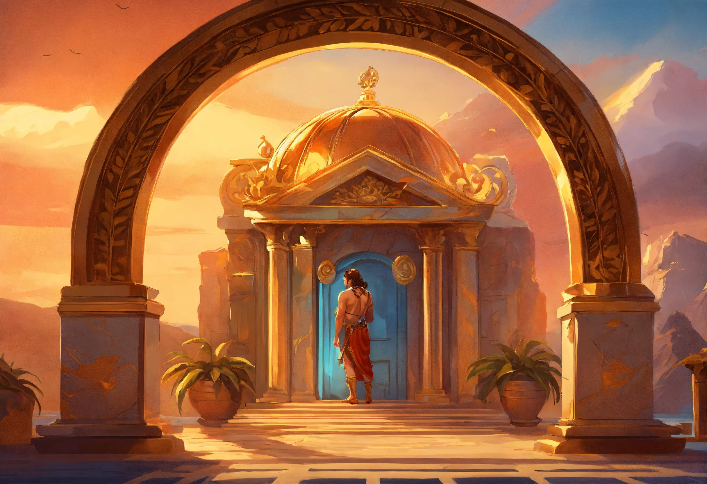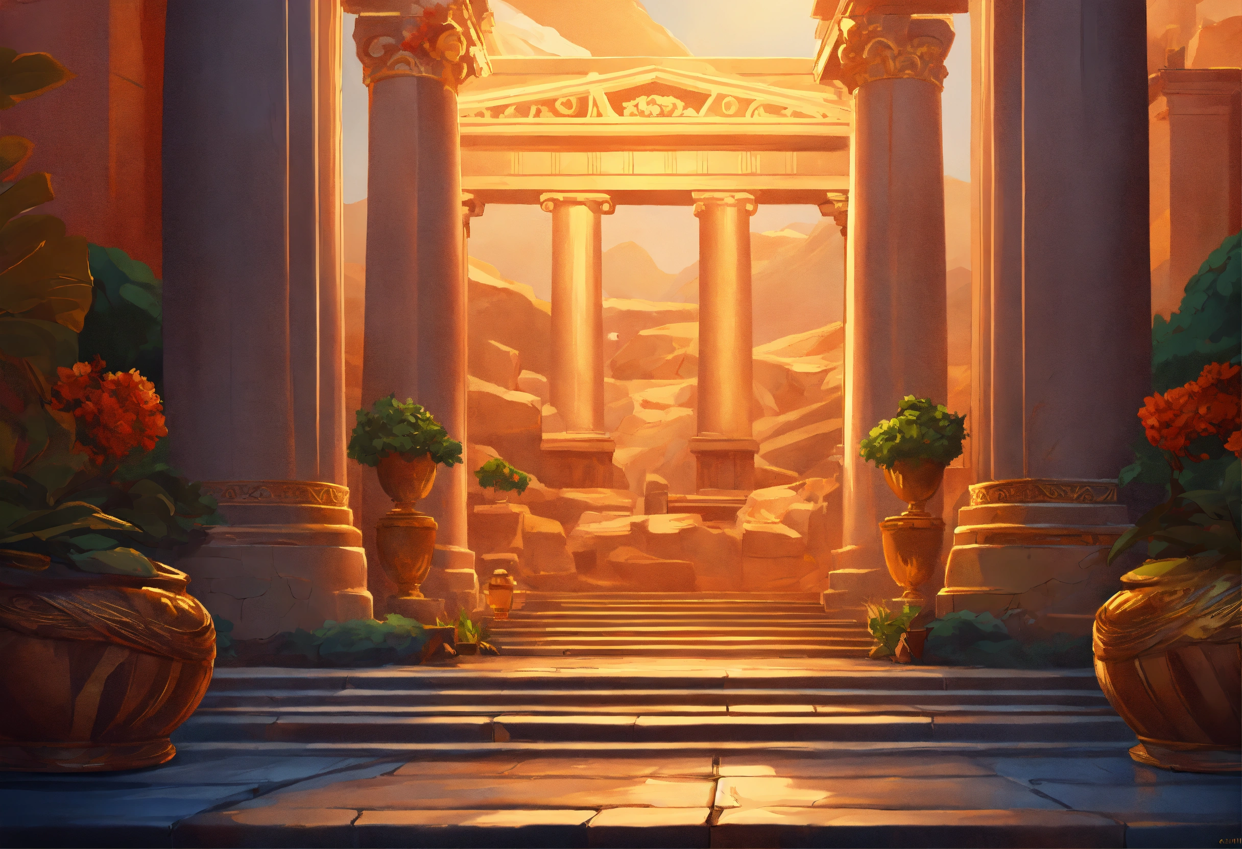 Greek mythology theme, reels background for the slot game, realistic cartoon oil paint, 2d illustration style, sharp focus, bright color, digital paint design, trending on artstation, high details, simple lines, art by josé luis ágreda and camilla d'errico.