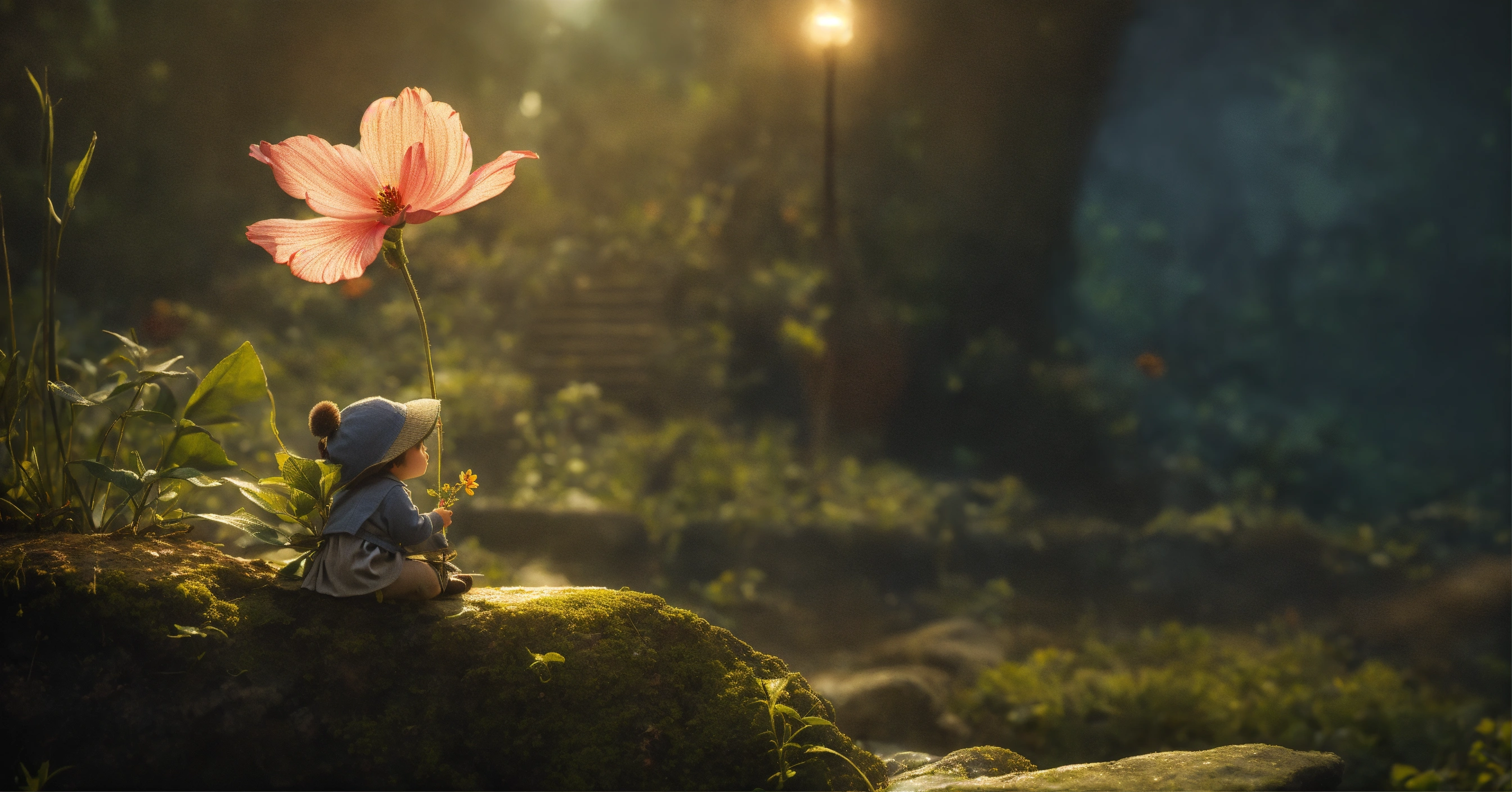 <lorashibari1.0> lonely flower my companion for one night by jean-baptiste monge, brightly lit, 8k, cinematic