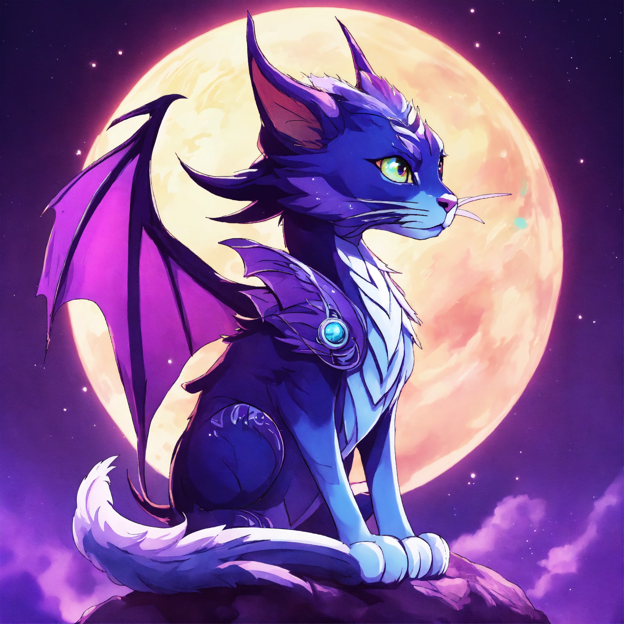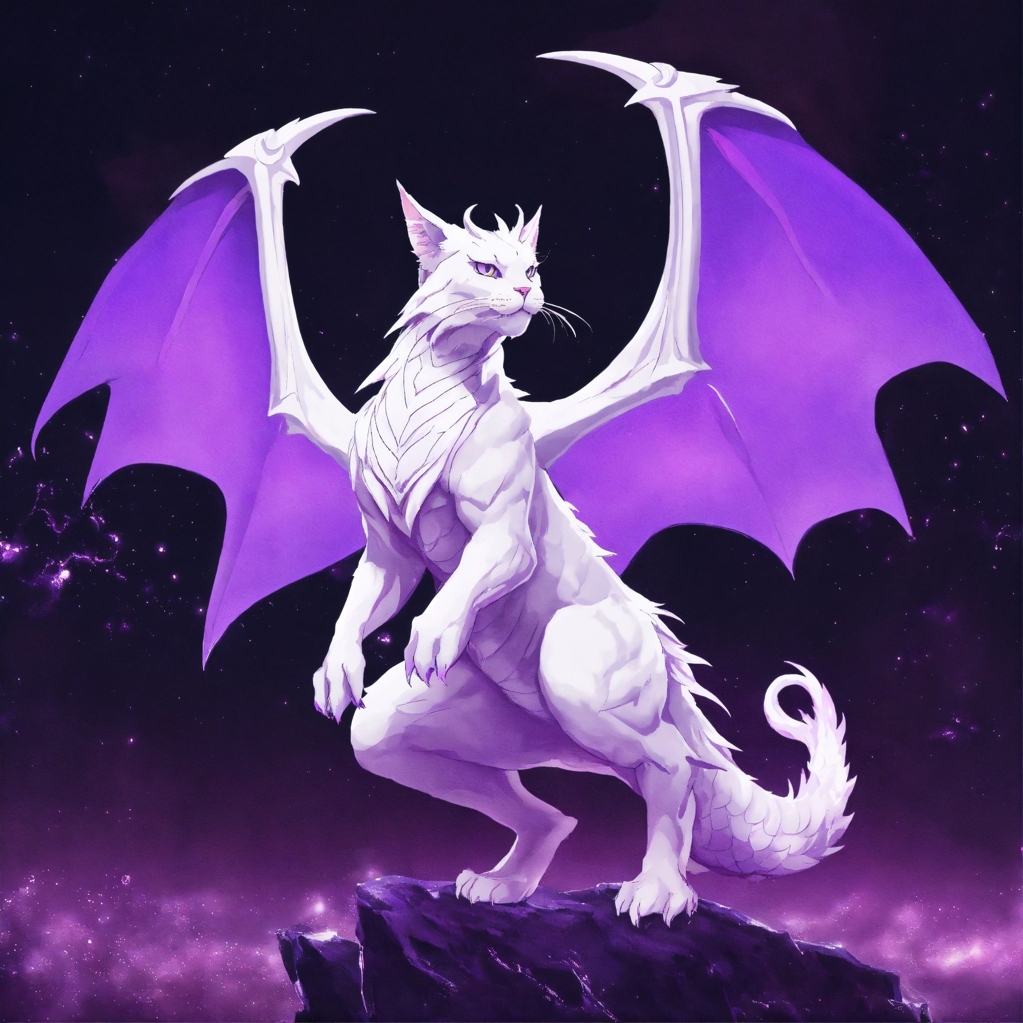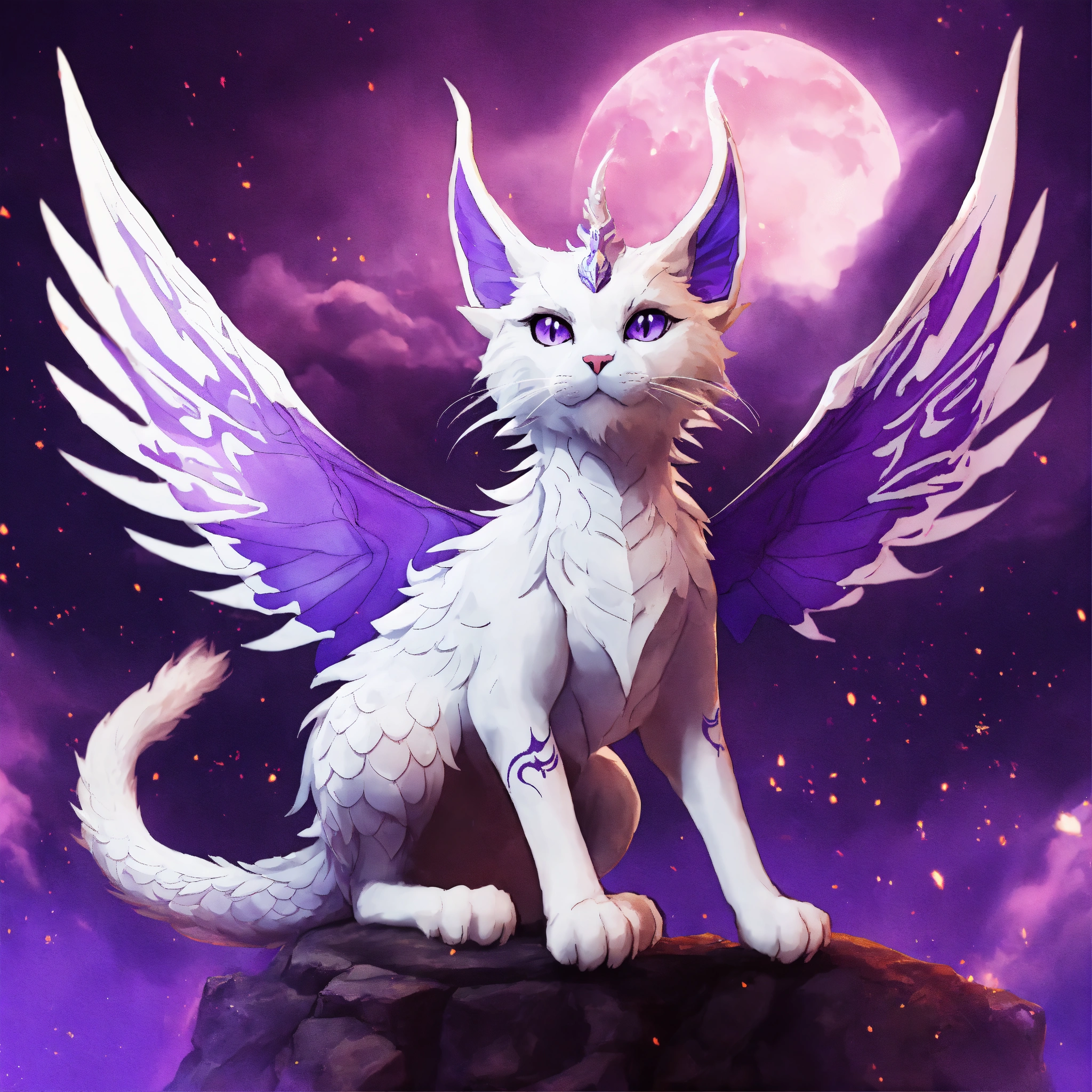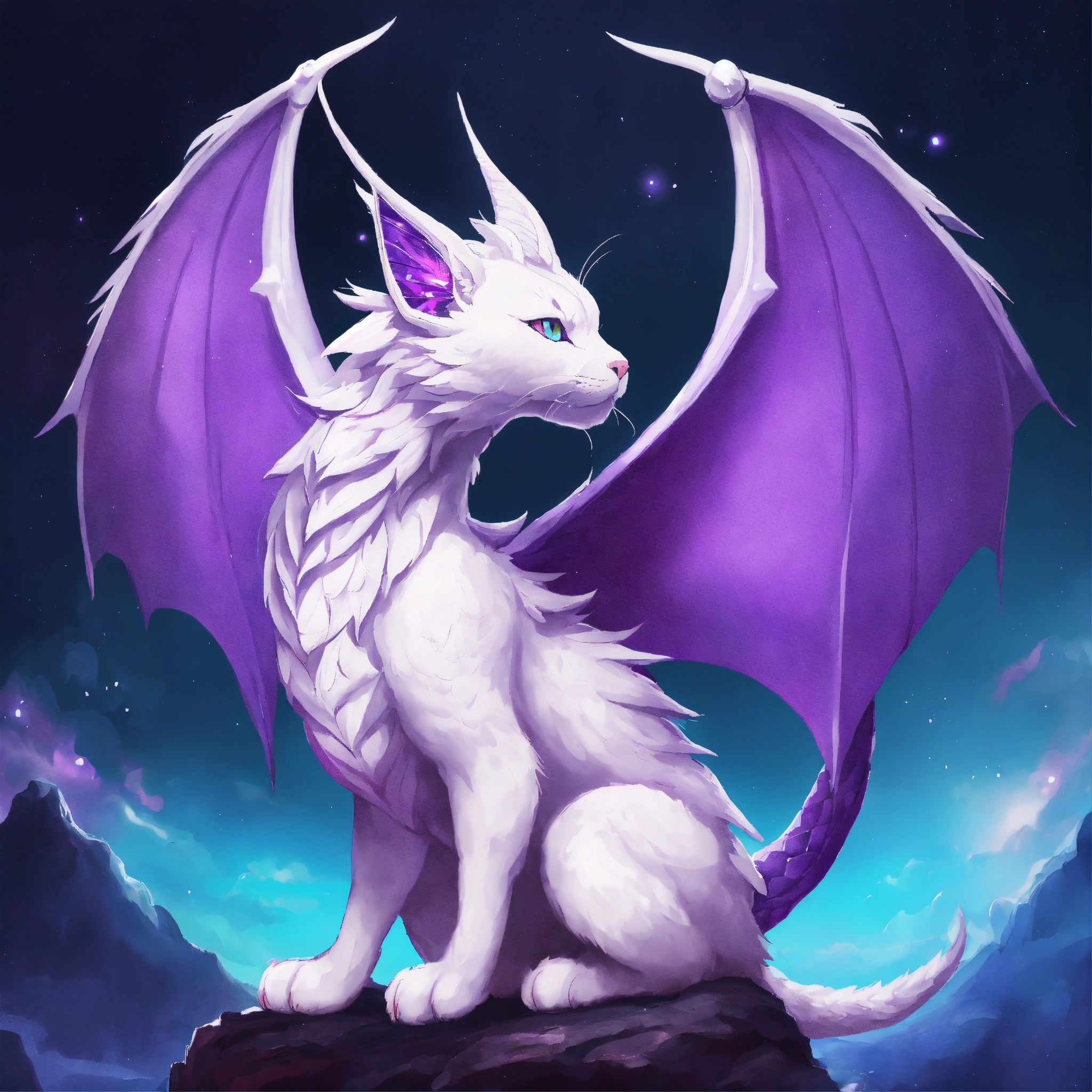White purple dragon cat with wings the wizard