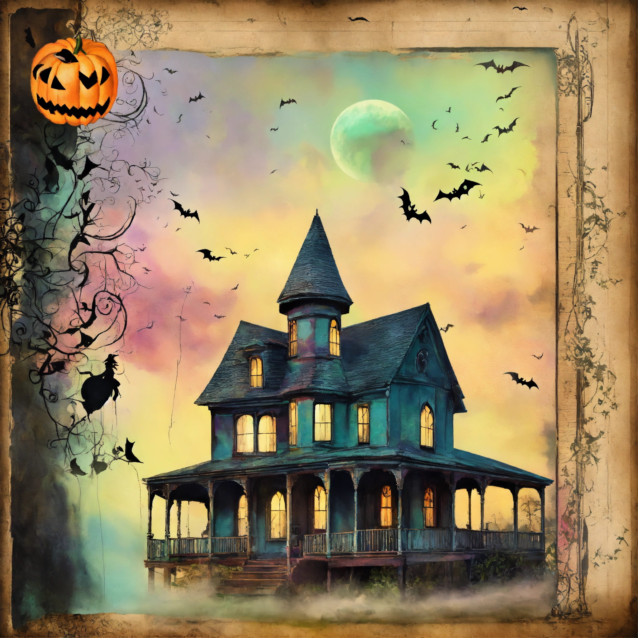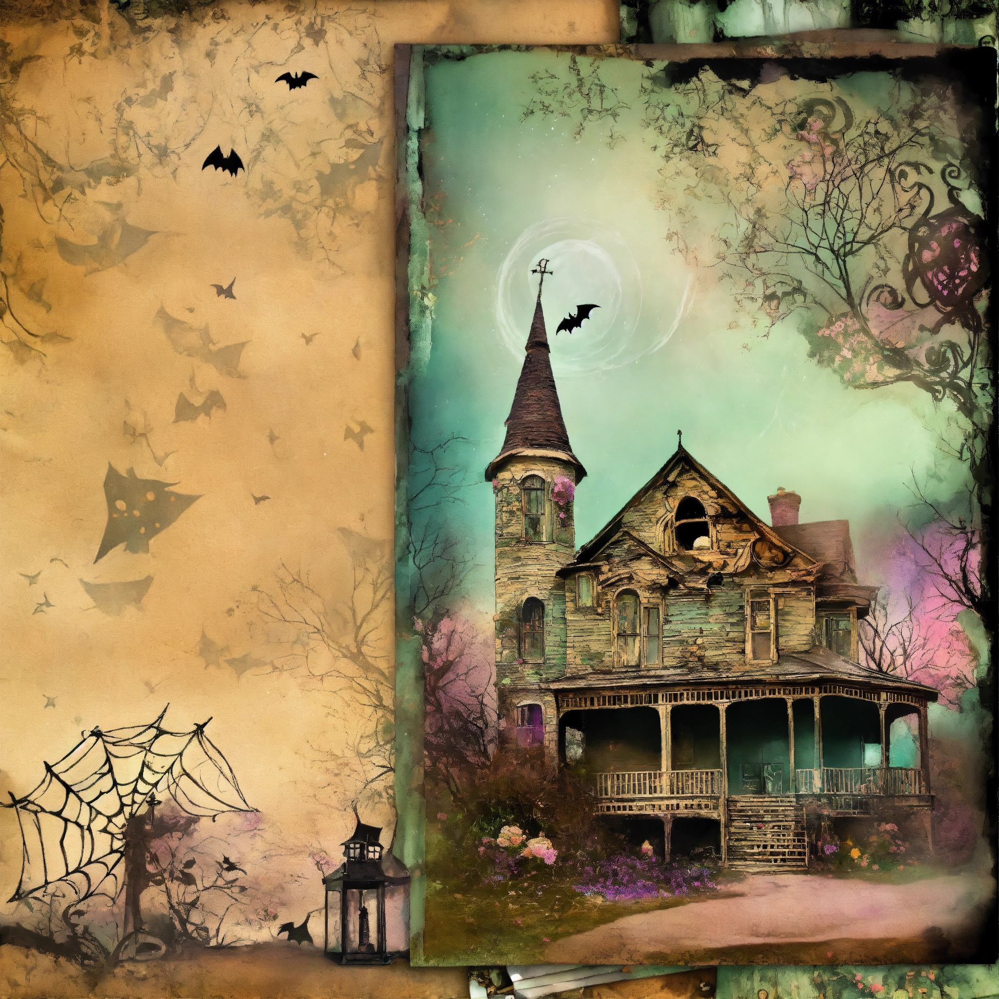 Shabby chic dreamy mist pastel junk journals halloween junk journal pages, creepy rooms, digital scrapbook paper kit, spooky gothic printable, vintage ephemera, house collage sheet swirling magical fairytale abstract art style