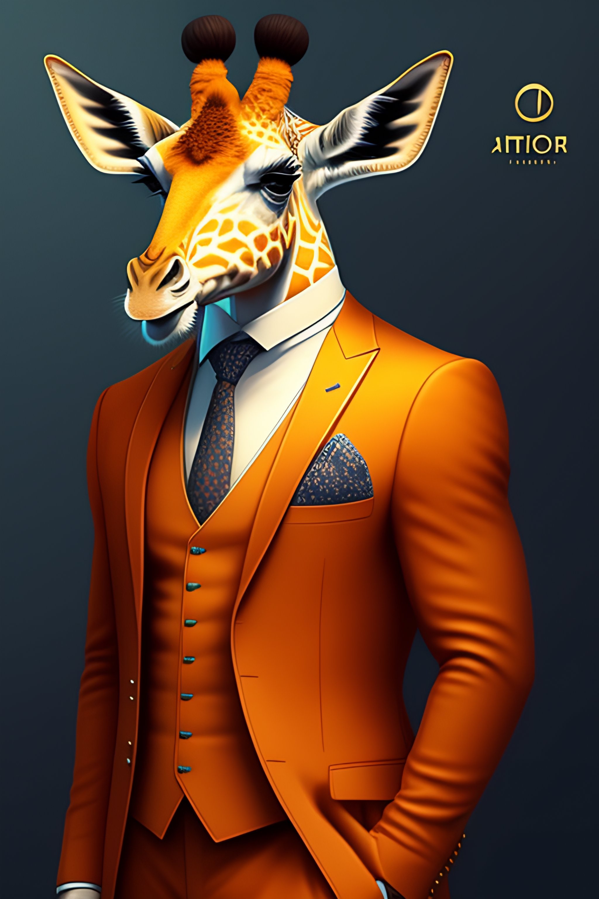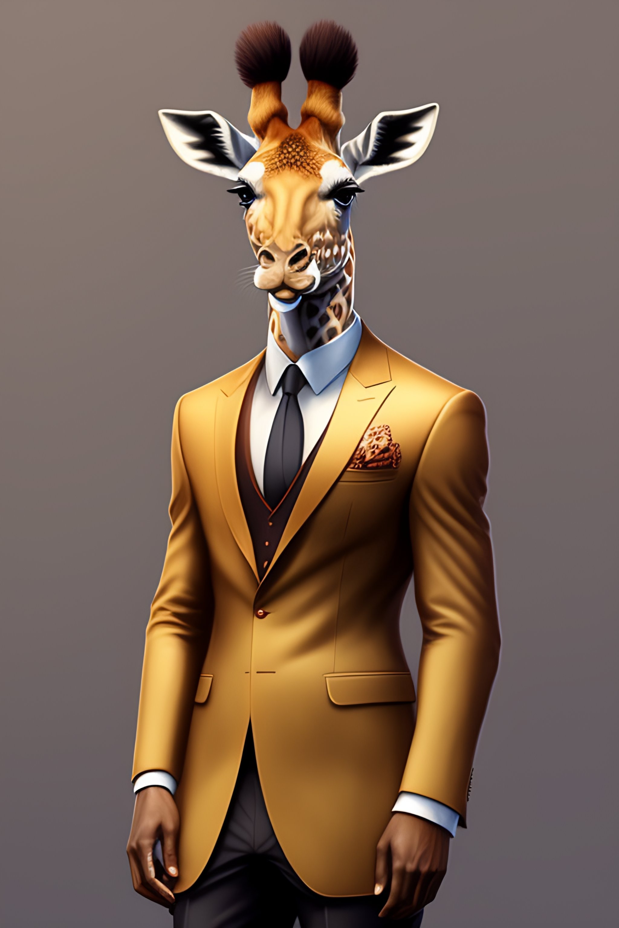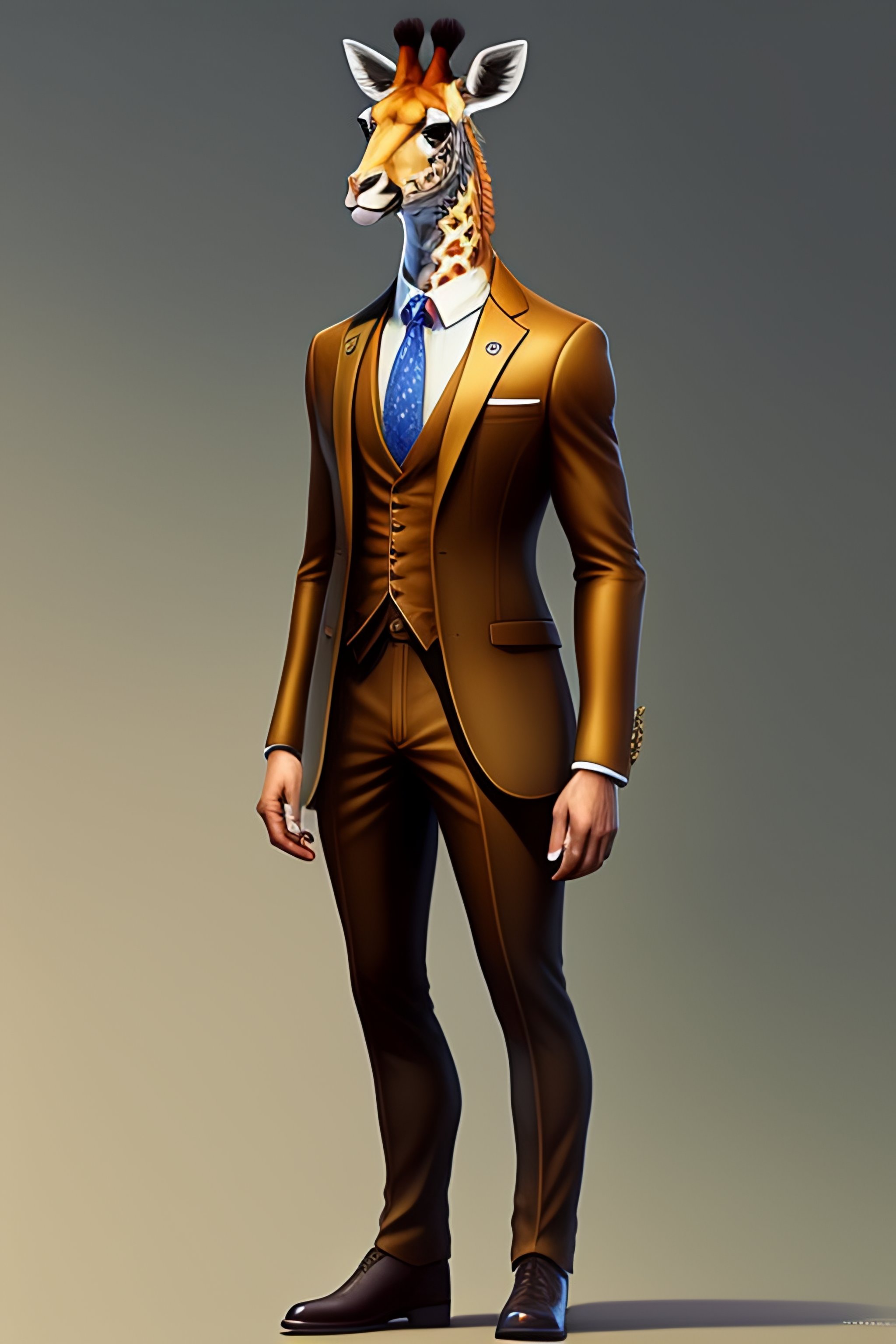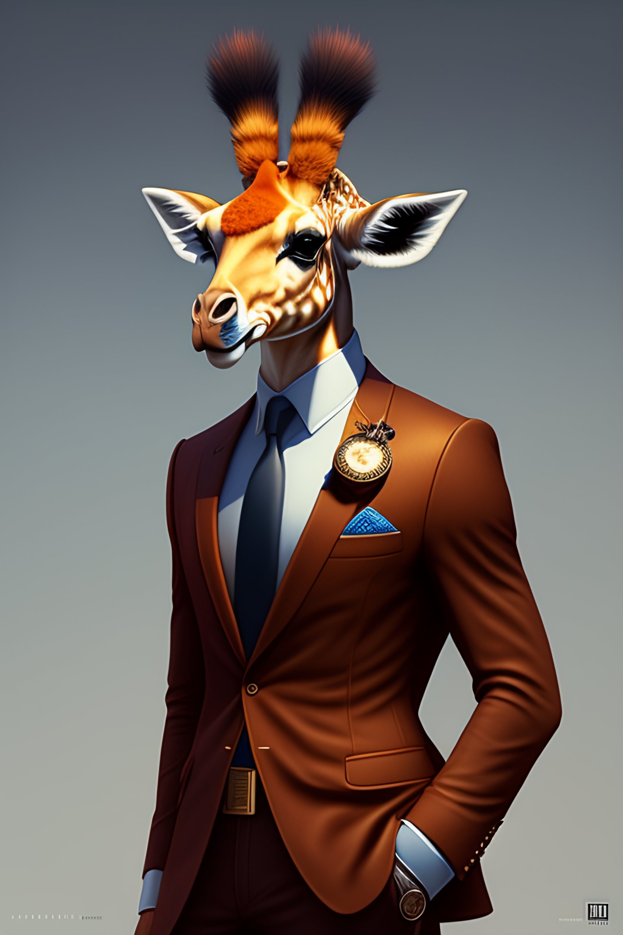 Anthro furry humanoid giraffe, three piece suit, checking watch, character concept design, painting, detailed, vivid, trending on artstation