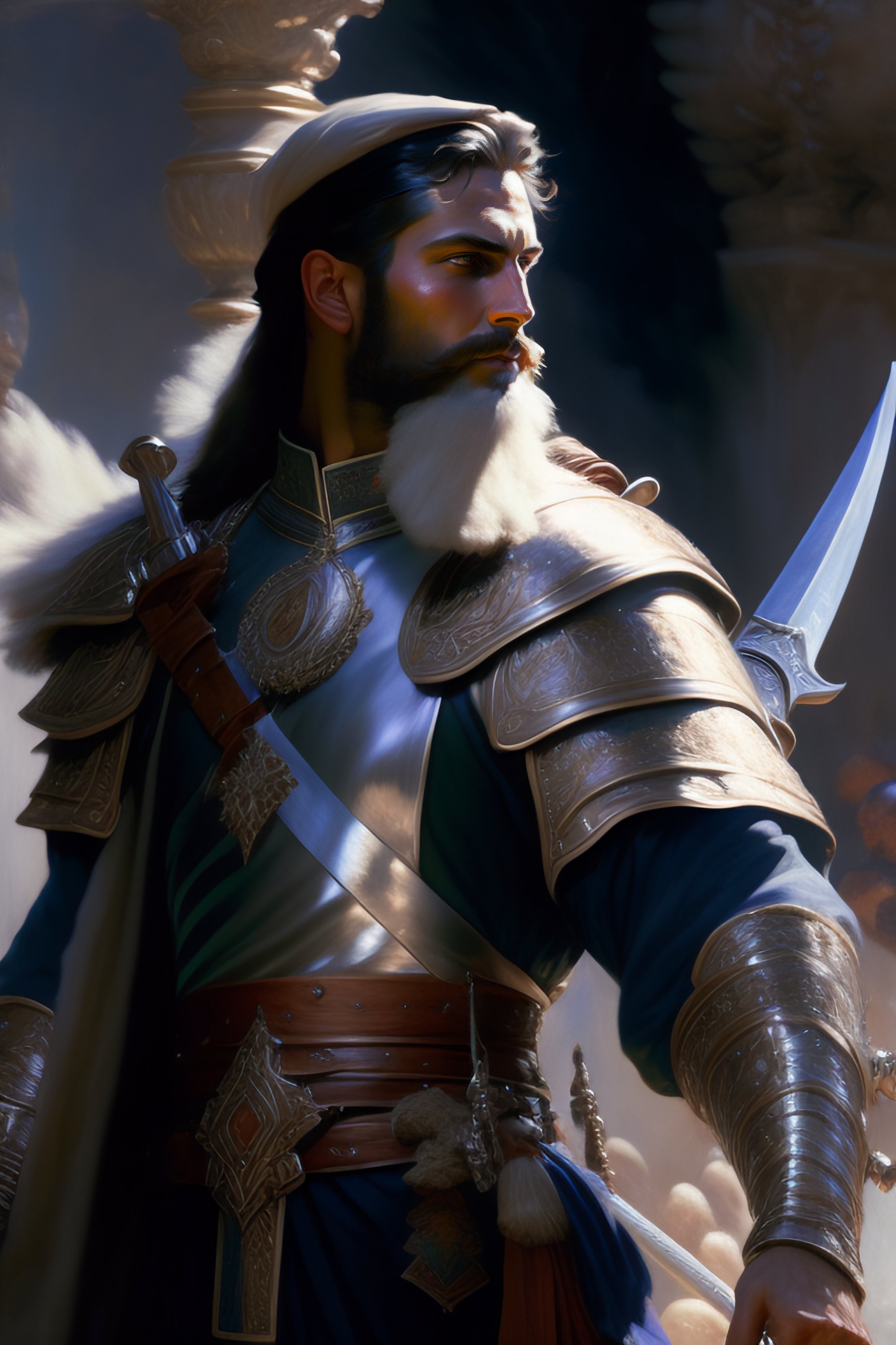 Detailed paint of a sword, highly detailed paiting by gaston bussiere, craig mullins, j.c. leyendecker, 8k, royal paiting, dynamic lighting