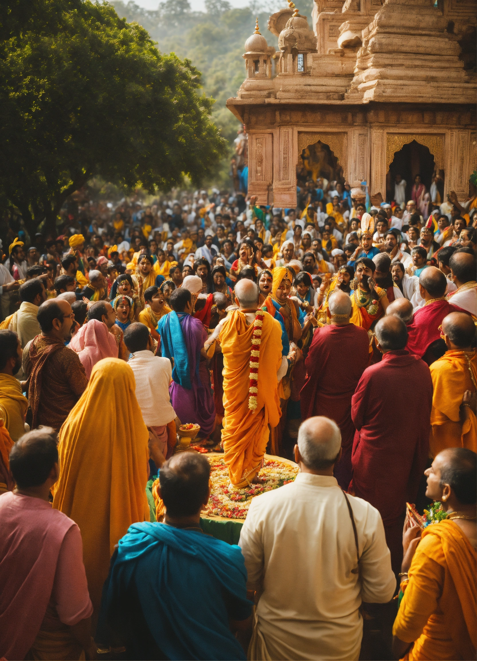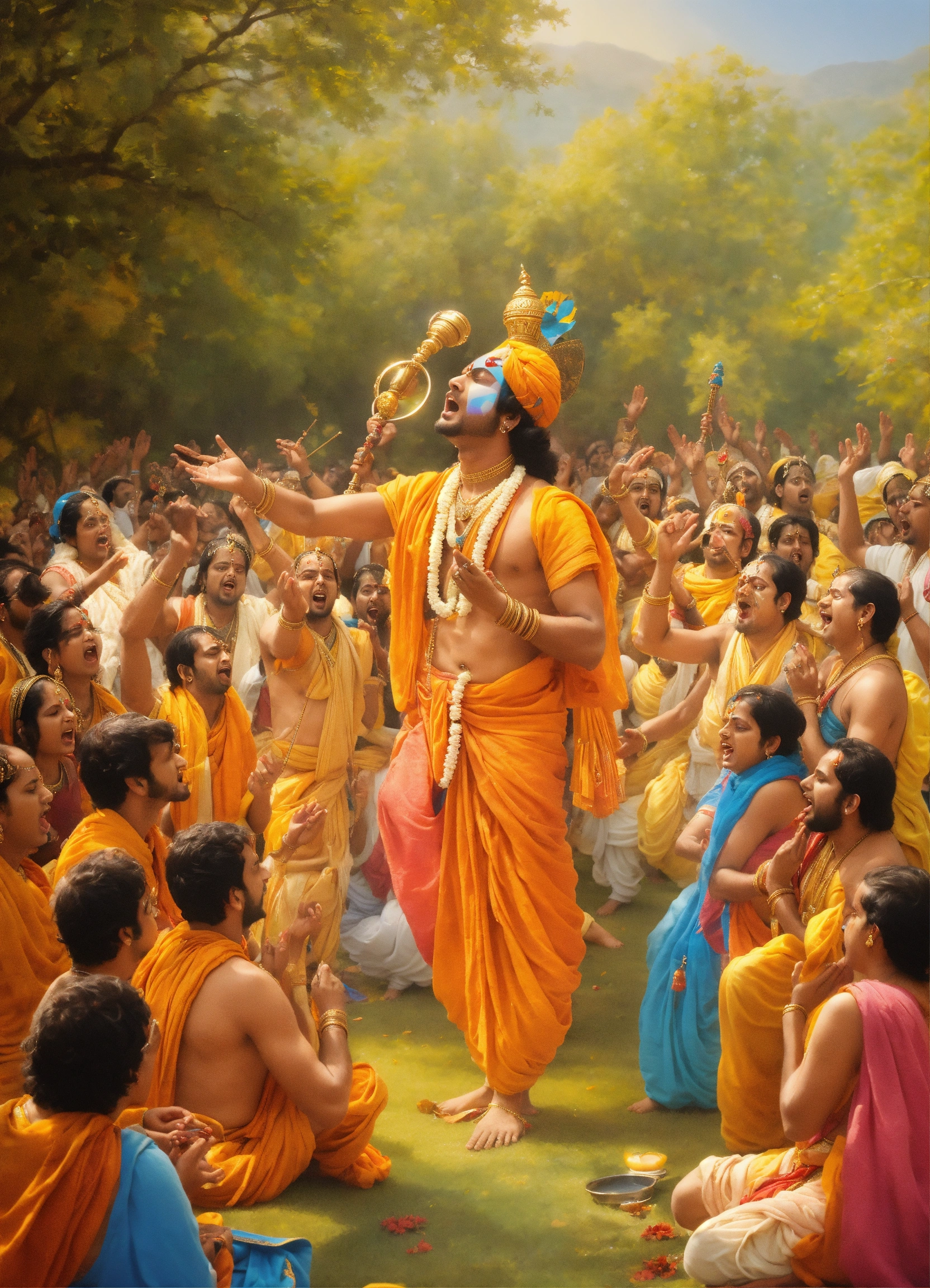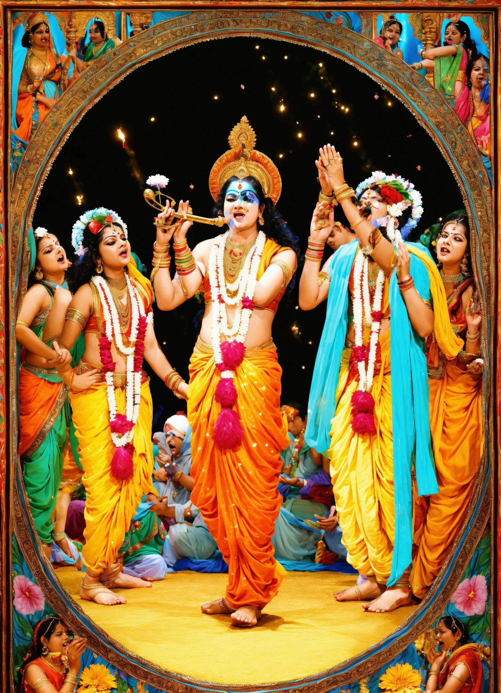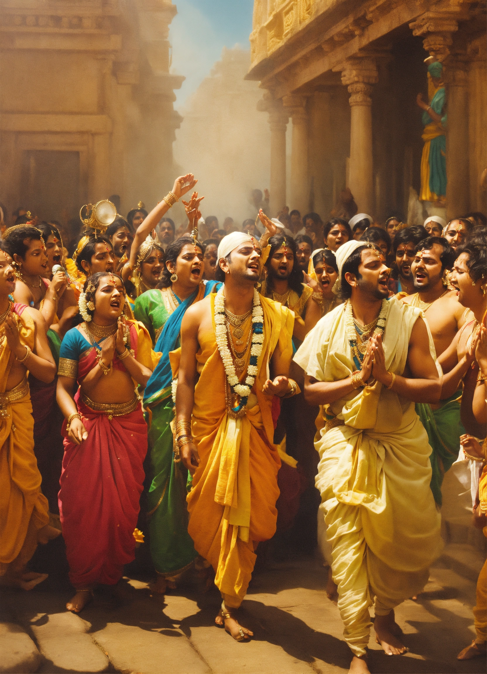 People singing hare krishna, hare krishna, krishna krishna, hare hare, hare rama, hare rama, rama rama, hare hare & worshipping lord krishna