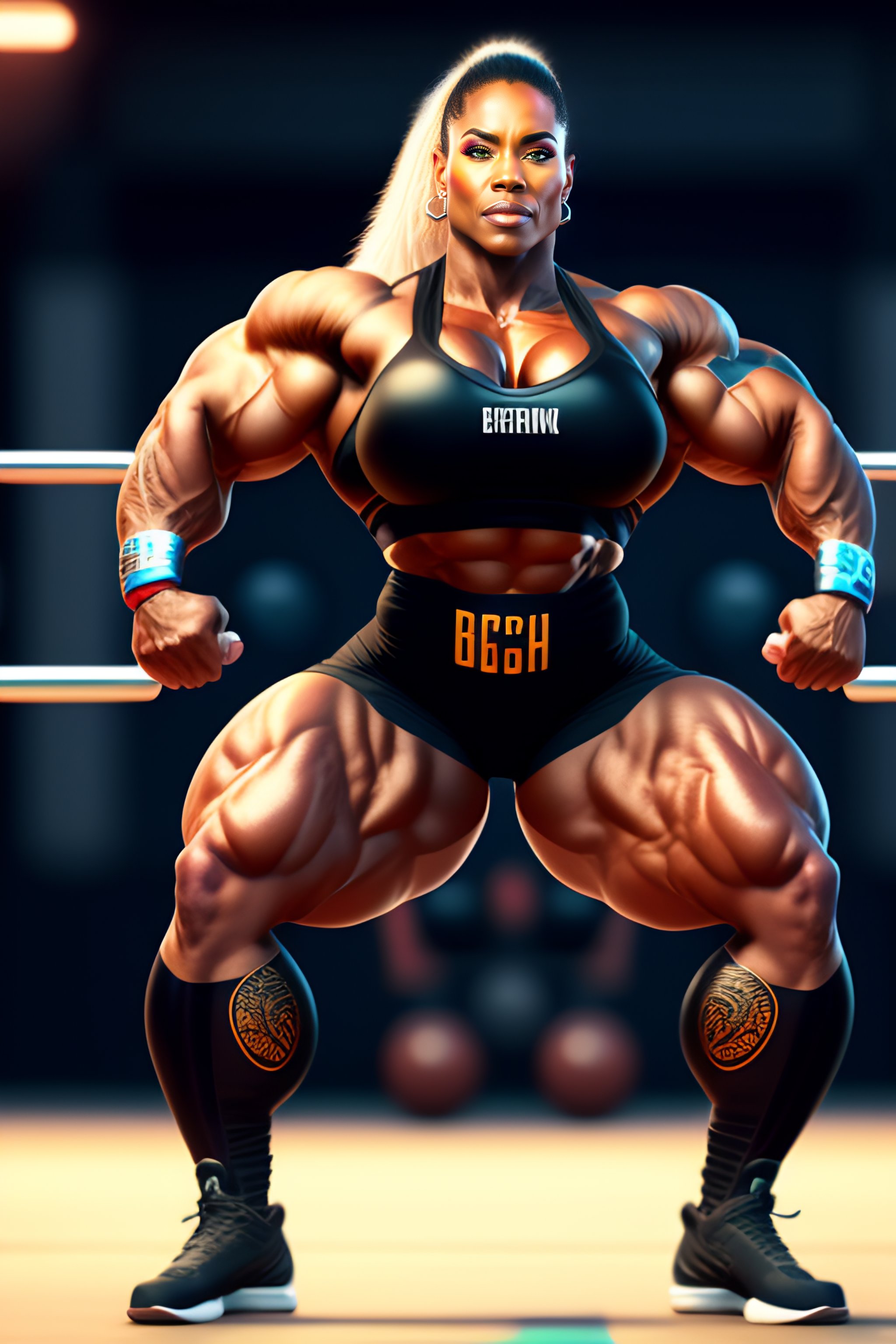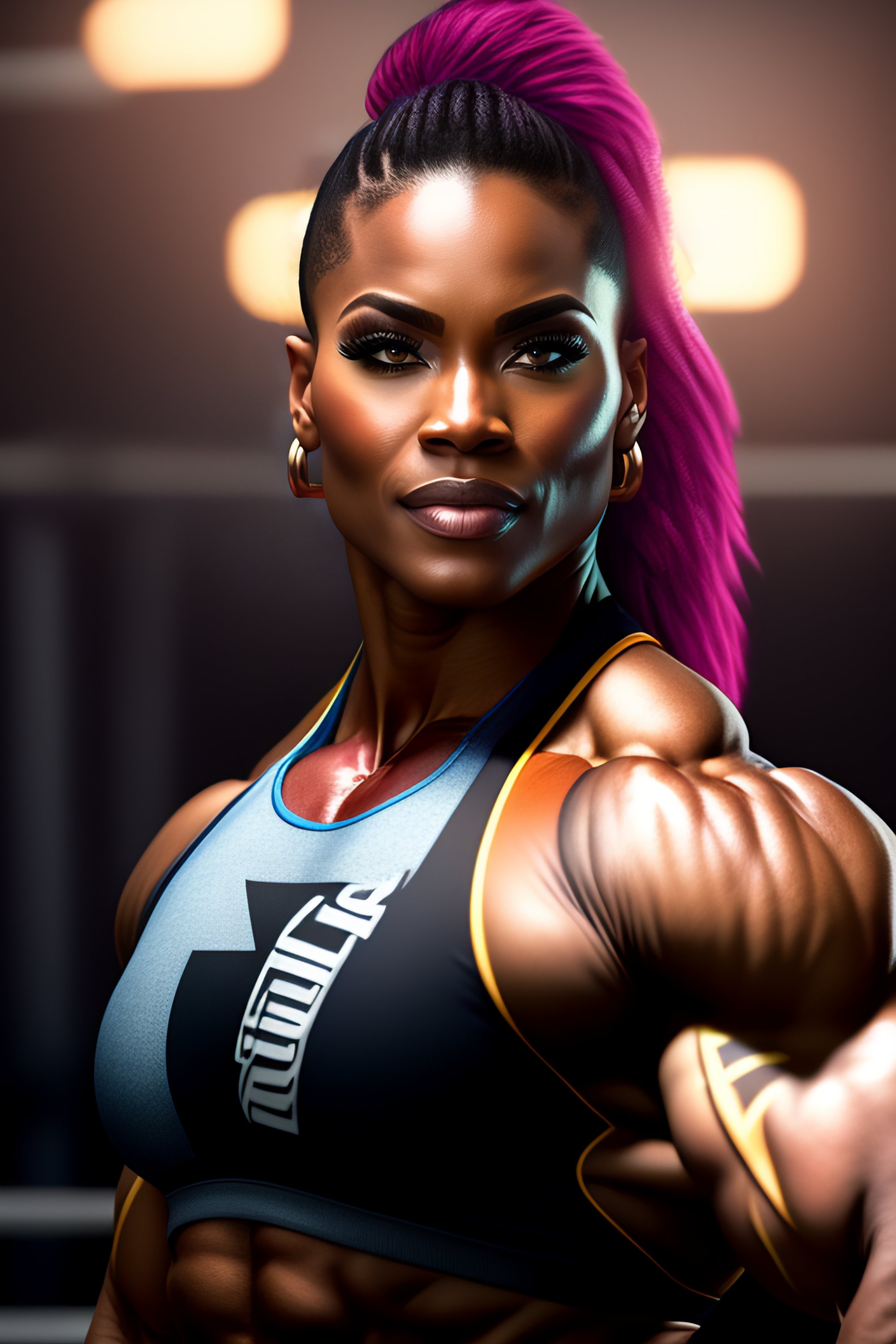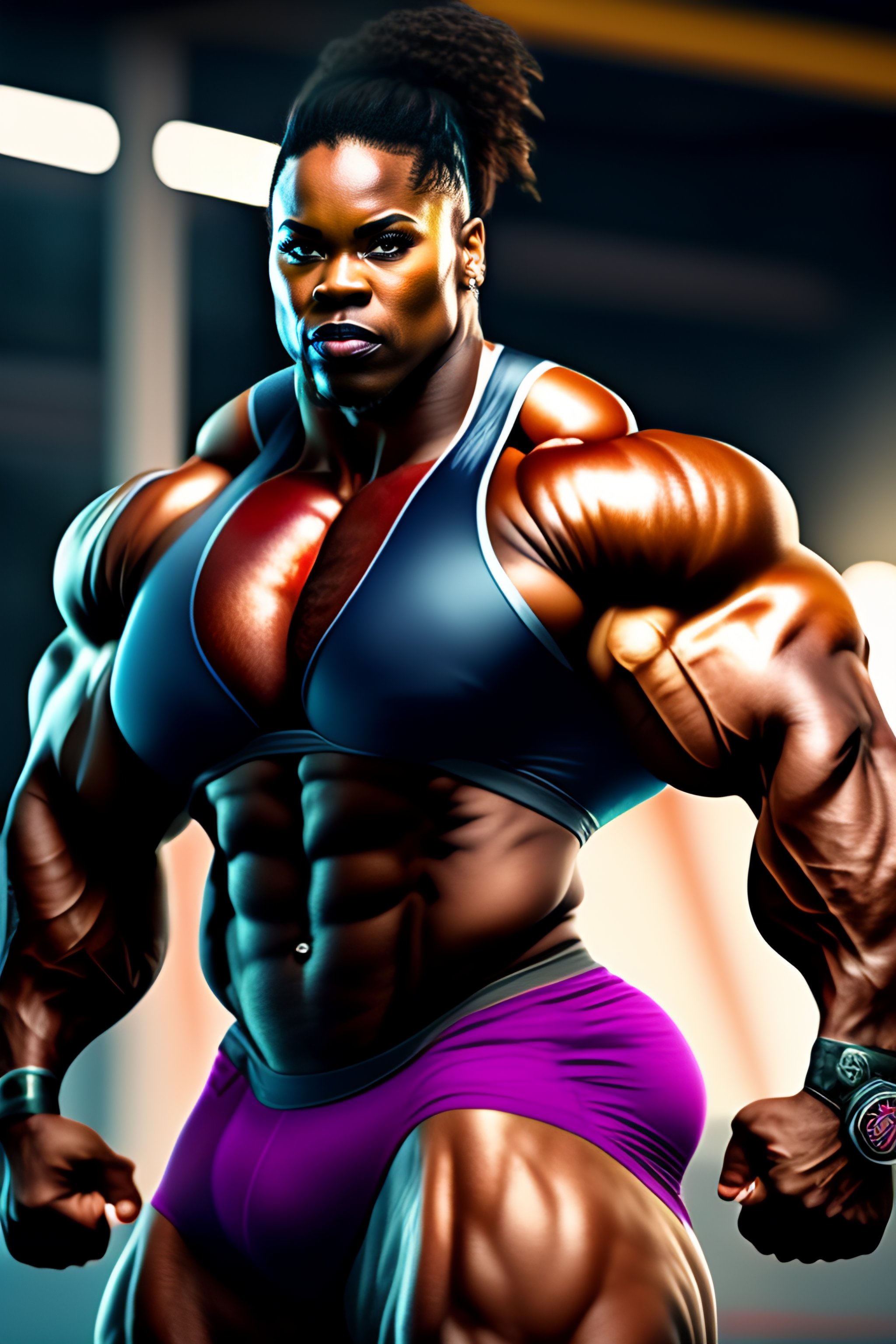 ((big)) muscle woman, perfectly-centered-photograph, sweaty, dynamic action pose, insane detail, intricate, highly detailed, zeiss lens, dslr photography, artstation, realism, smooth, sharp focus, unreal engine 5, octane render, redshift, 8k, highly detailed, beautiful woman bodybuilder