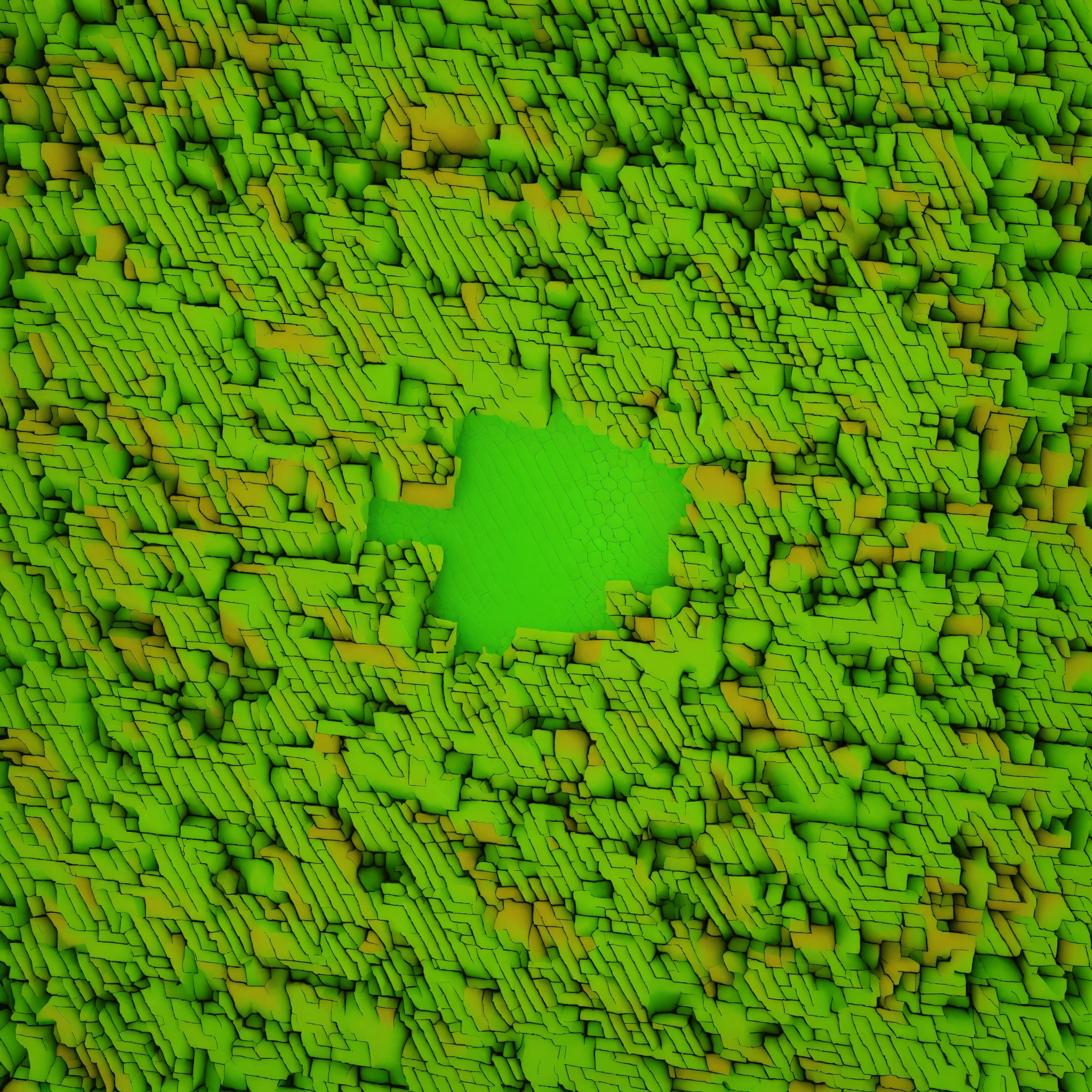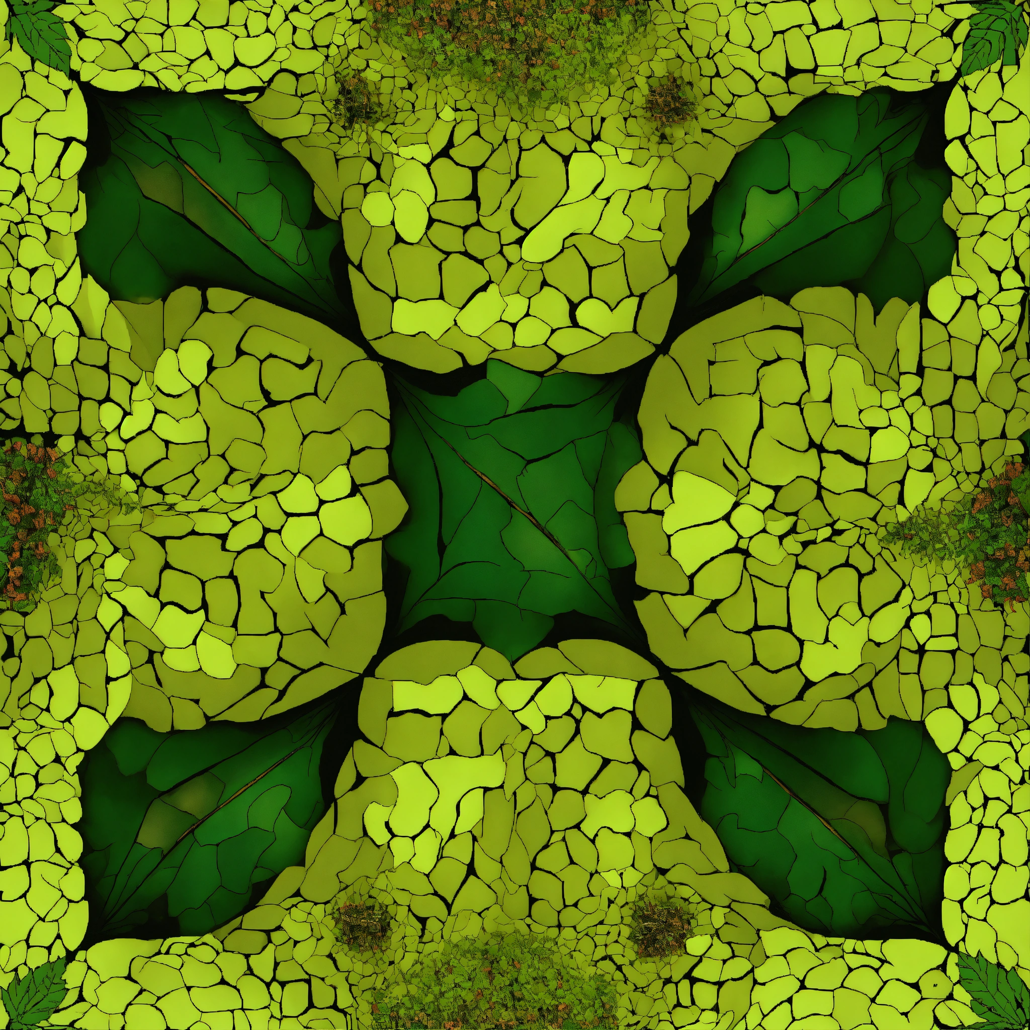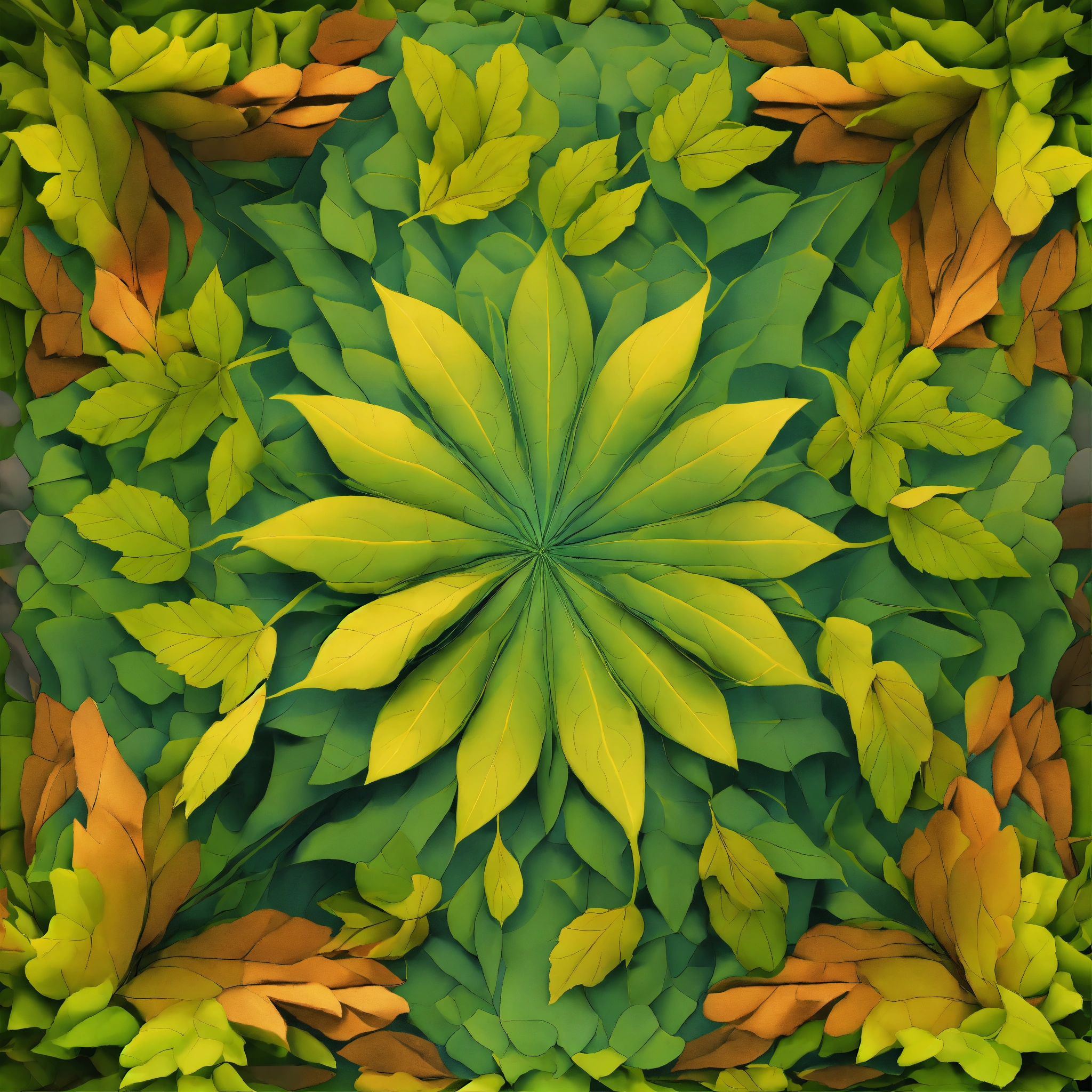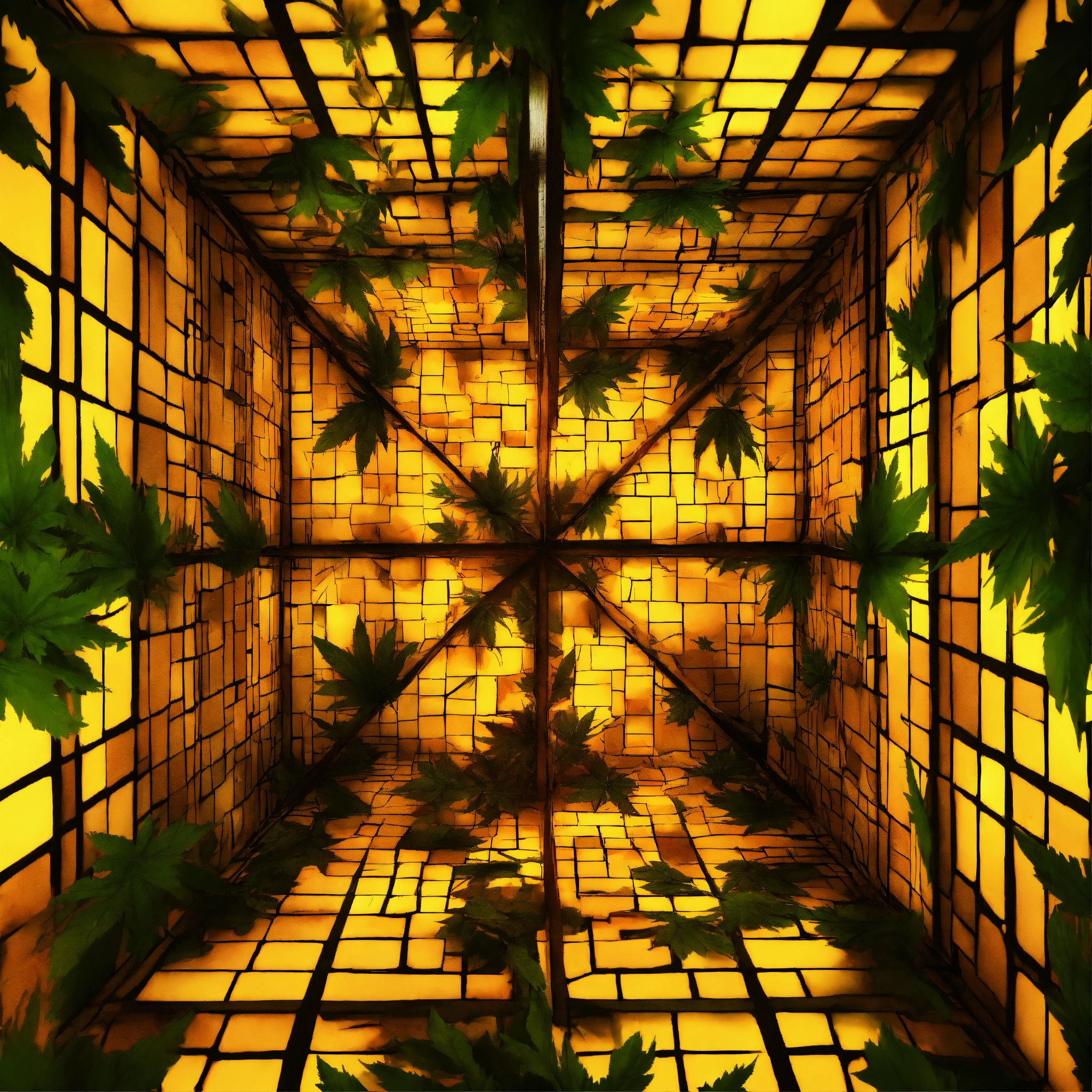 A texture for cubemap 3 sides projection with optical illusion where ganja leaves falling down into the huge rabbit hole, symmetrical, top view