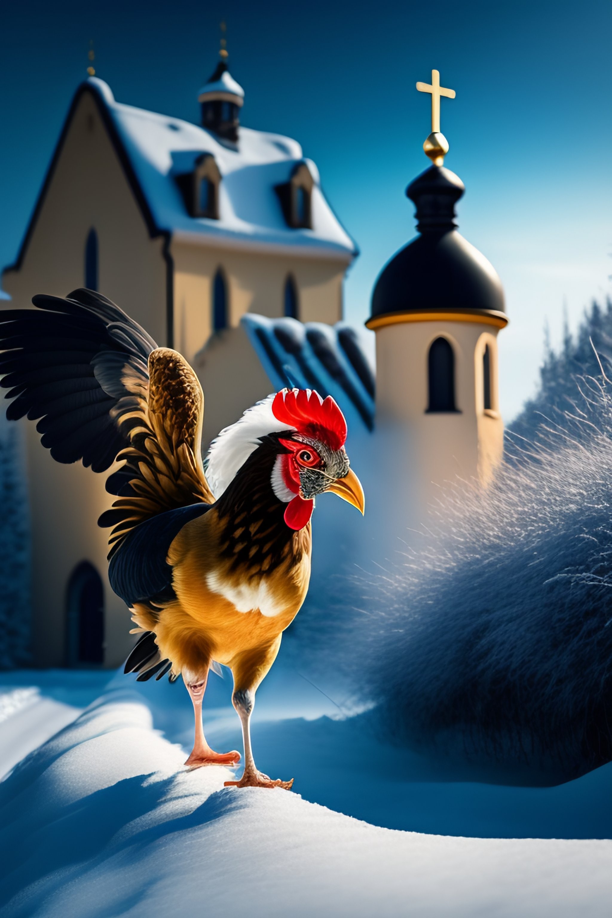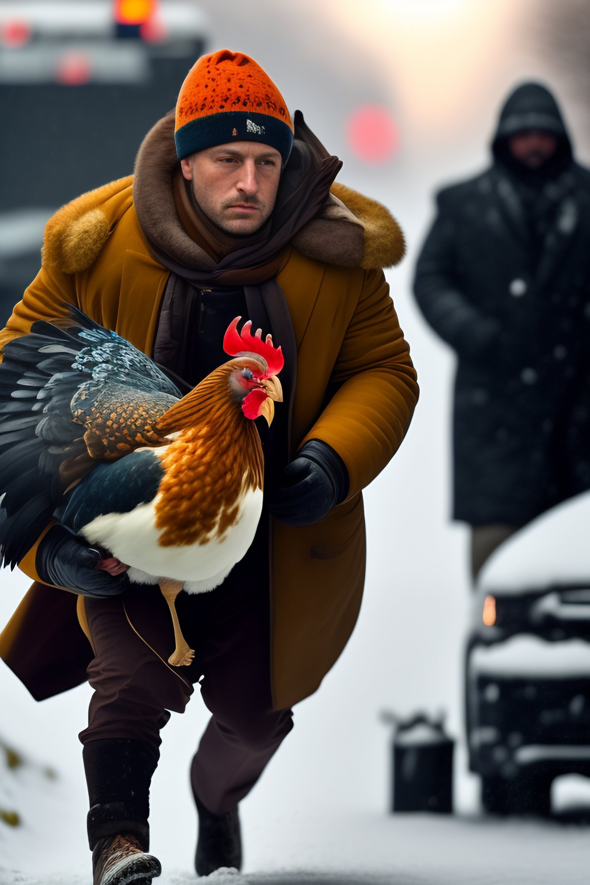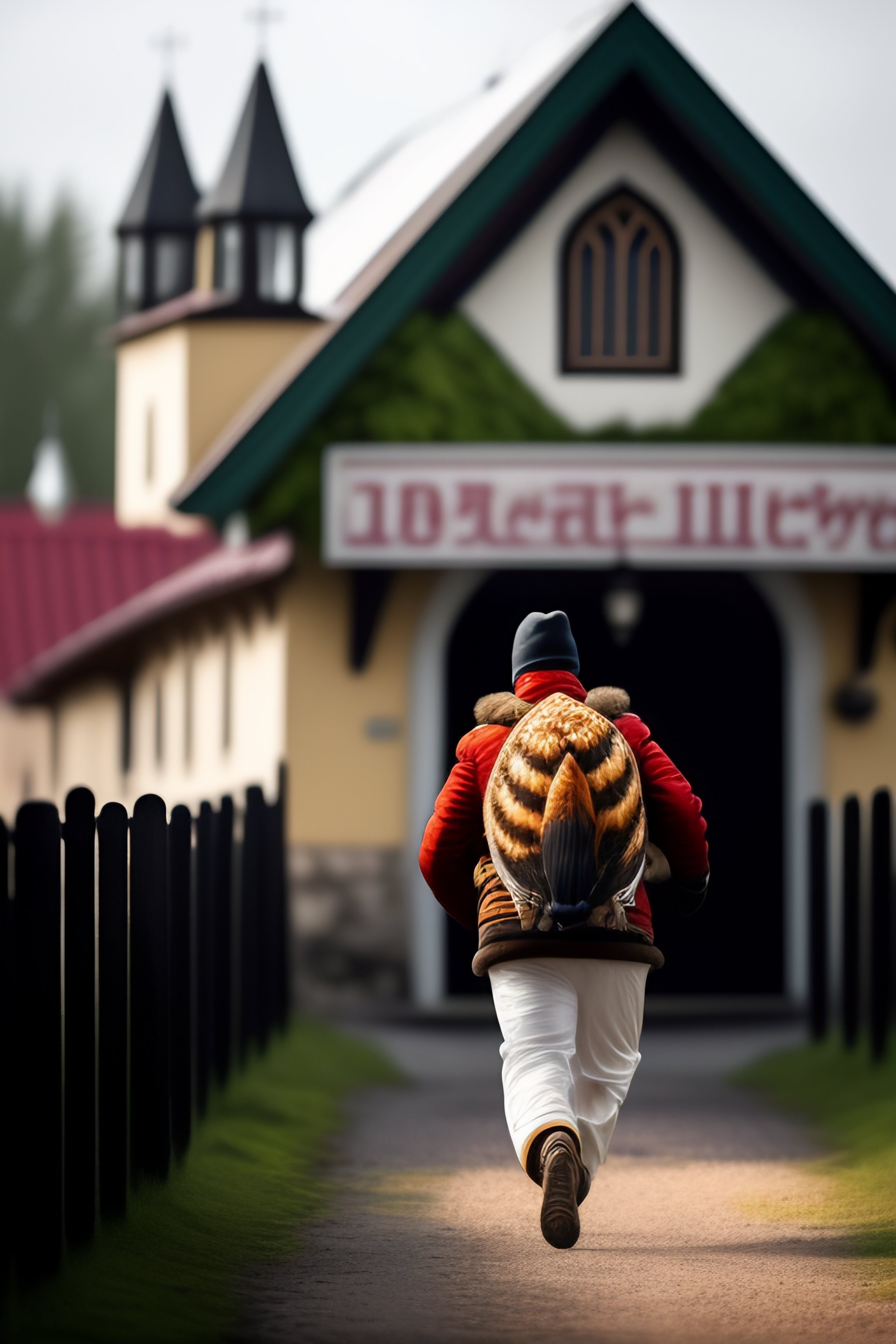 Estonian thief is running away while carrying a stolen chicken and church silver