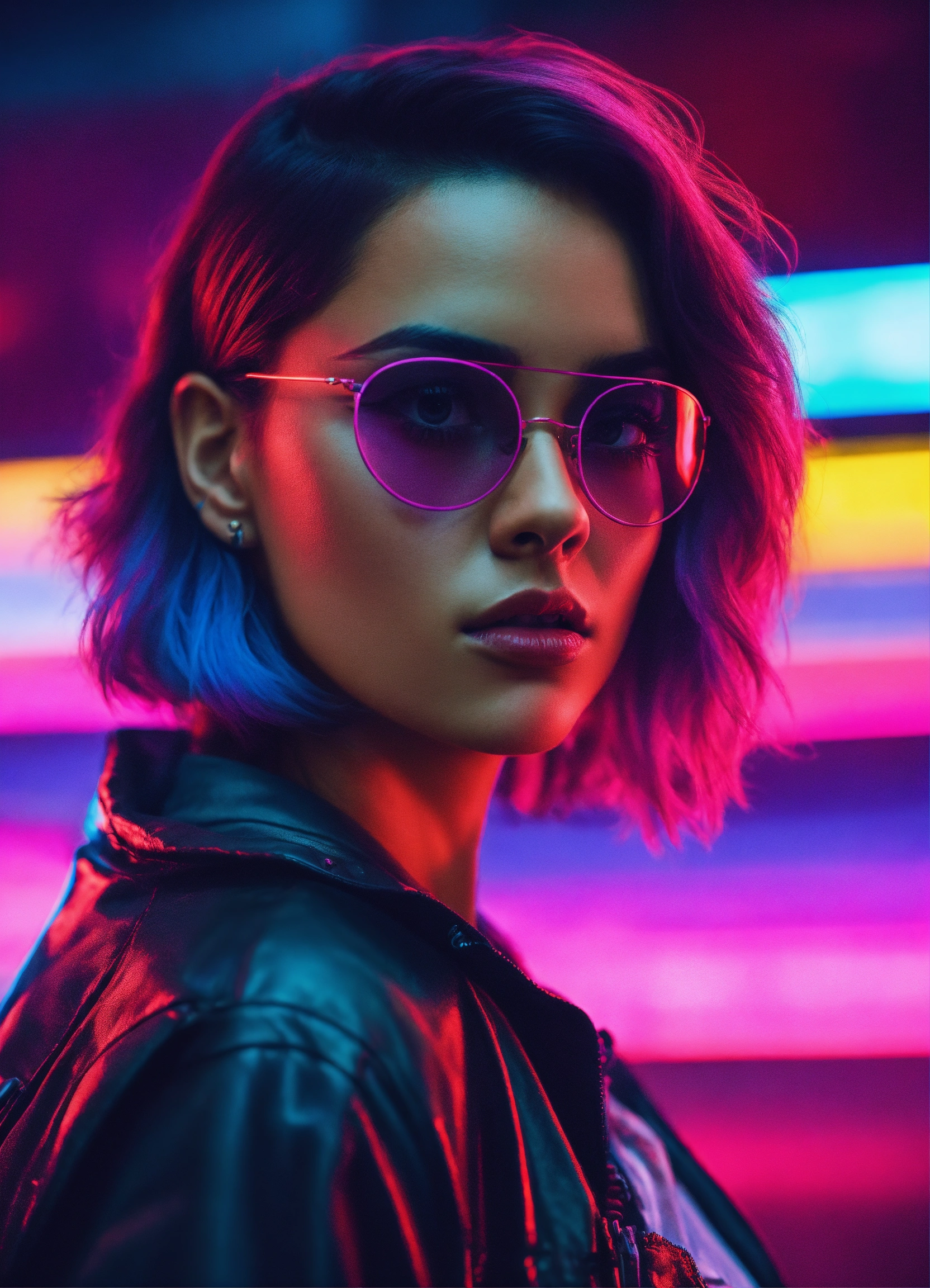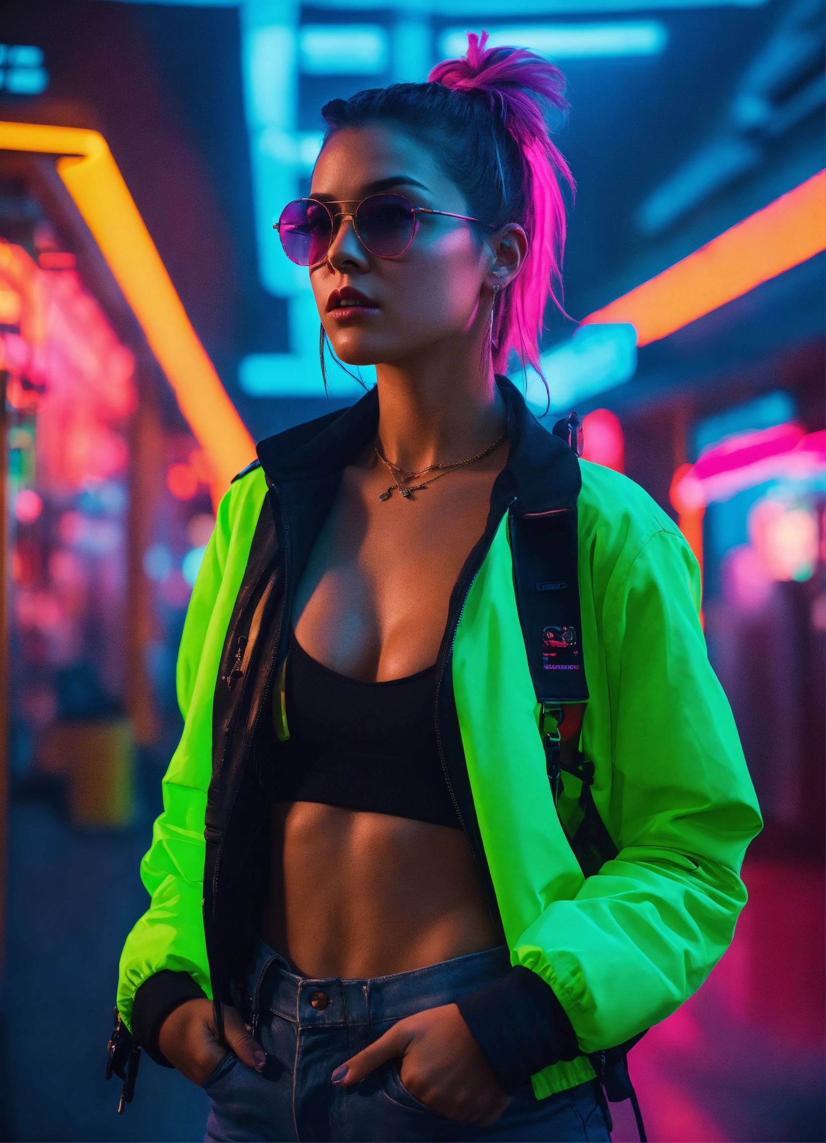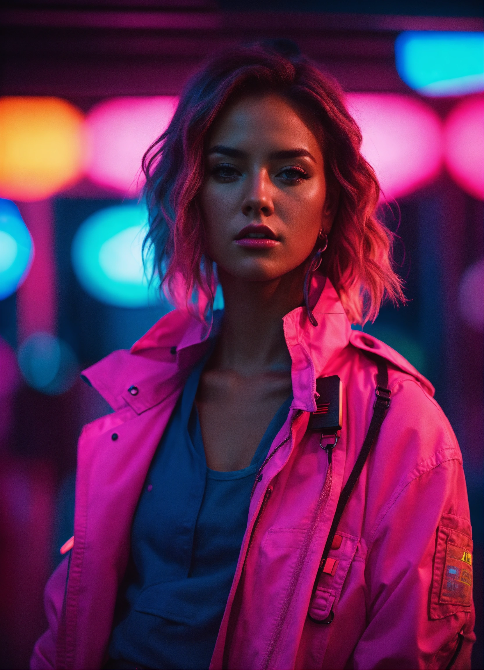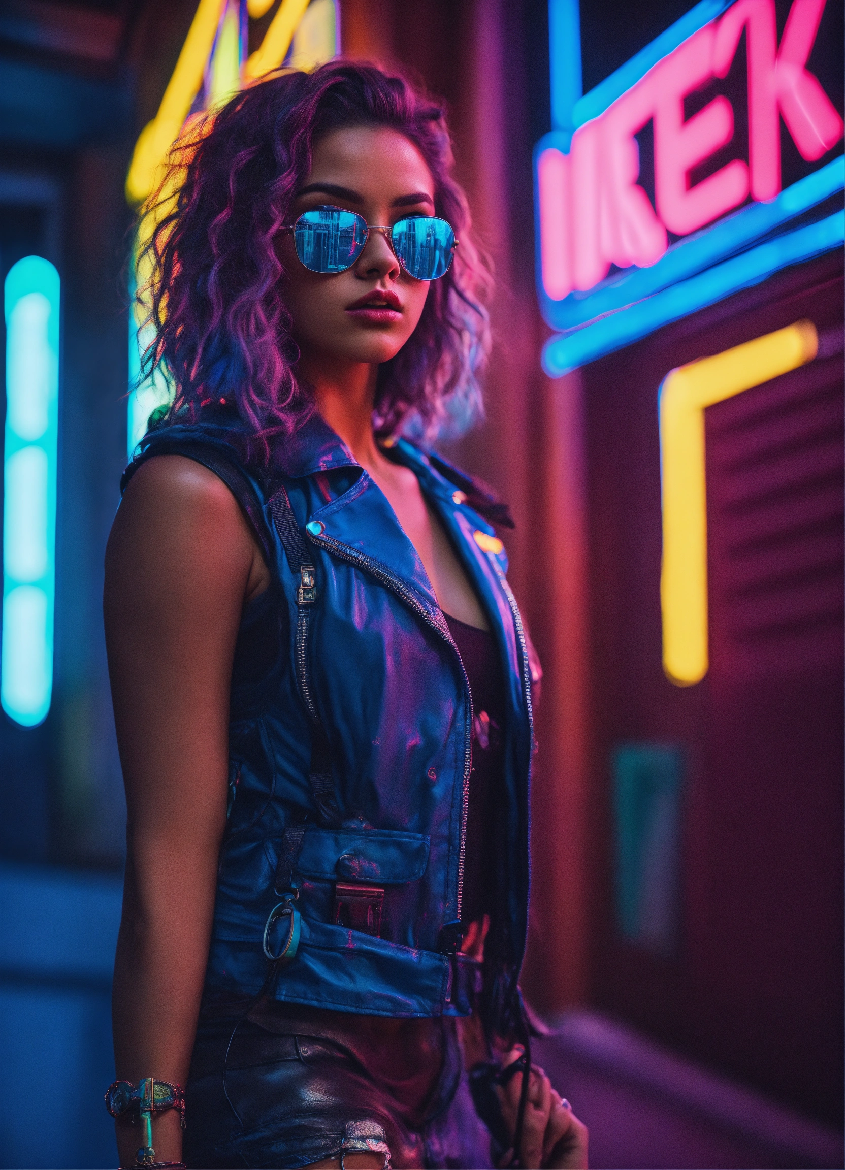 Cinematic photography, modern, mixed female rebel, proportionate, neon colors details, realistic, ultra 8k resolution