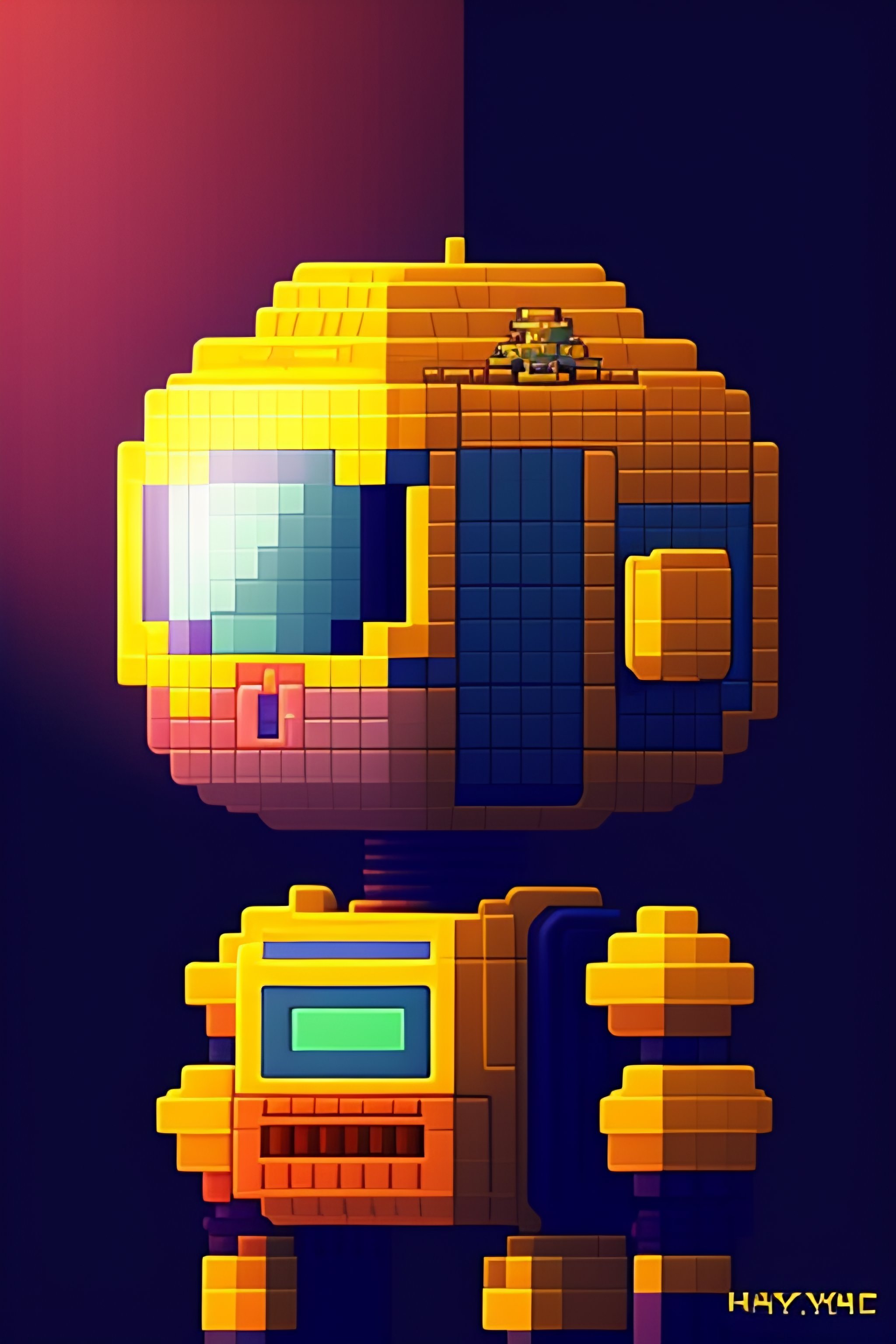 8-bit pixel art of robot, facing directly forward, cozy indoor lighting, detailed, character design by hayao miyazaki