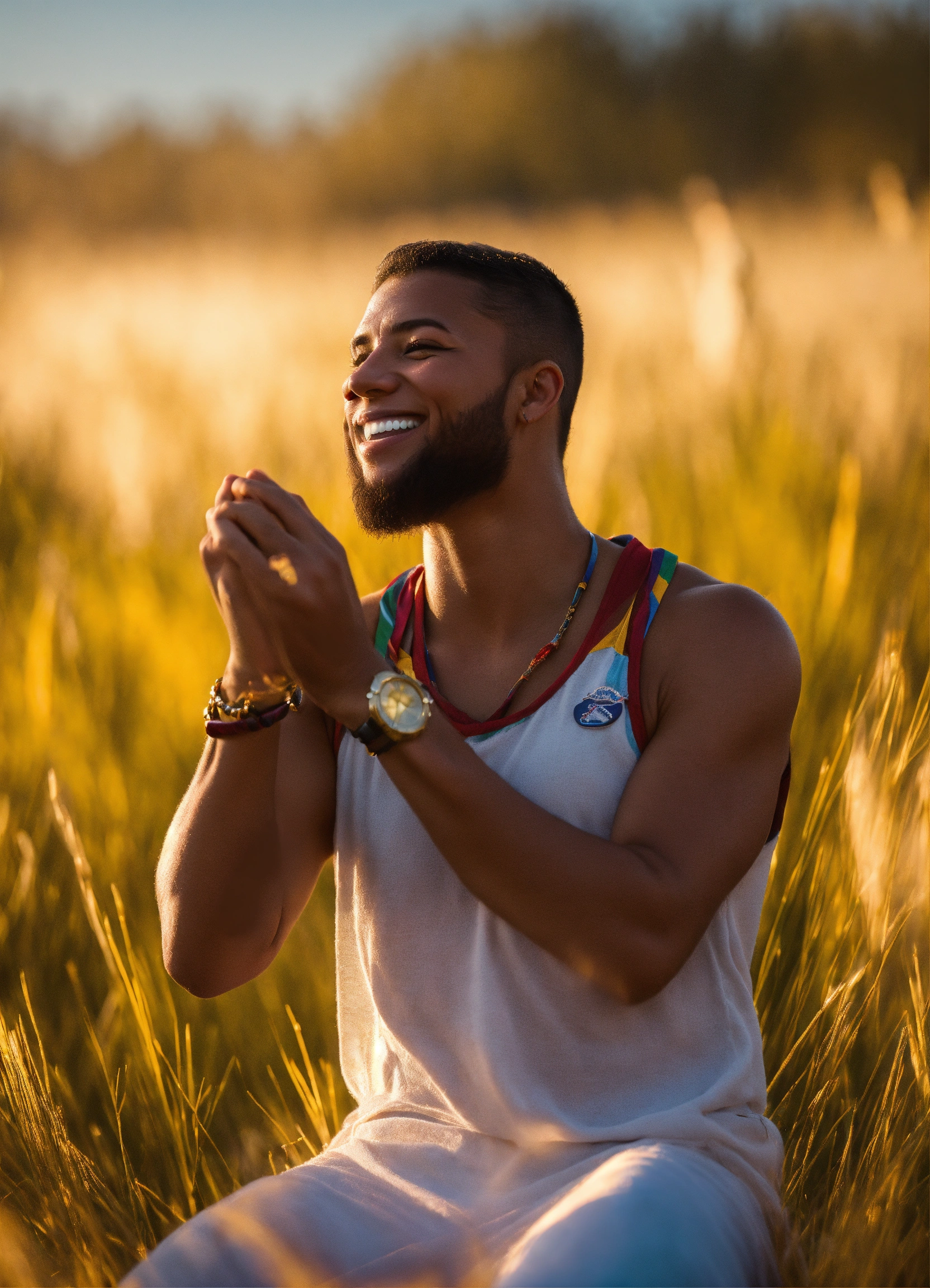 "triumphant achievement the individual basking in pride, accomplishment, and victory", elation, heightened emotions, canon eos-1d x mark iii, golden hour with soft highlights, photorealistic portrayal of triumph.