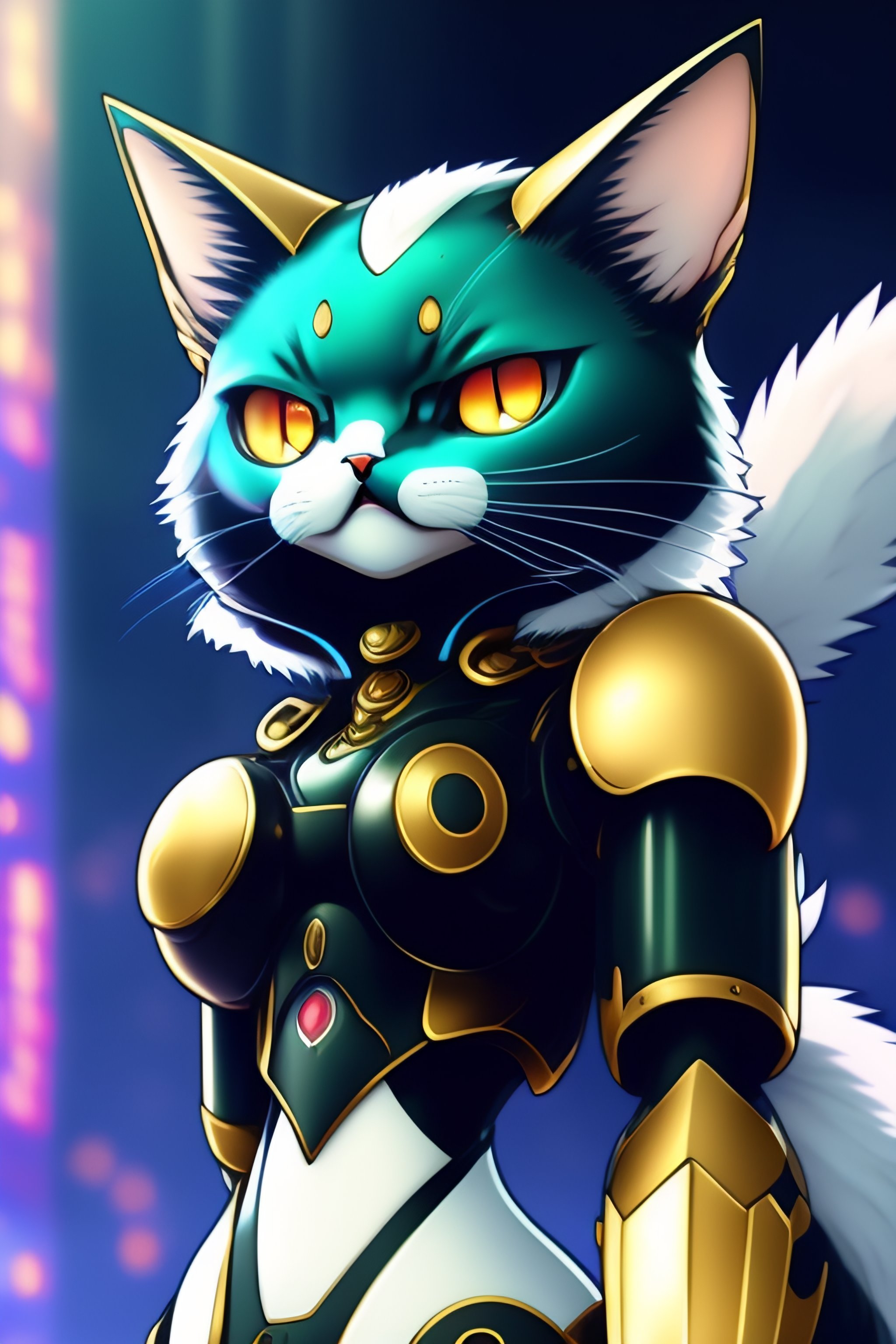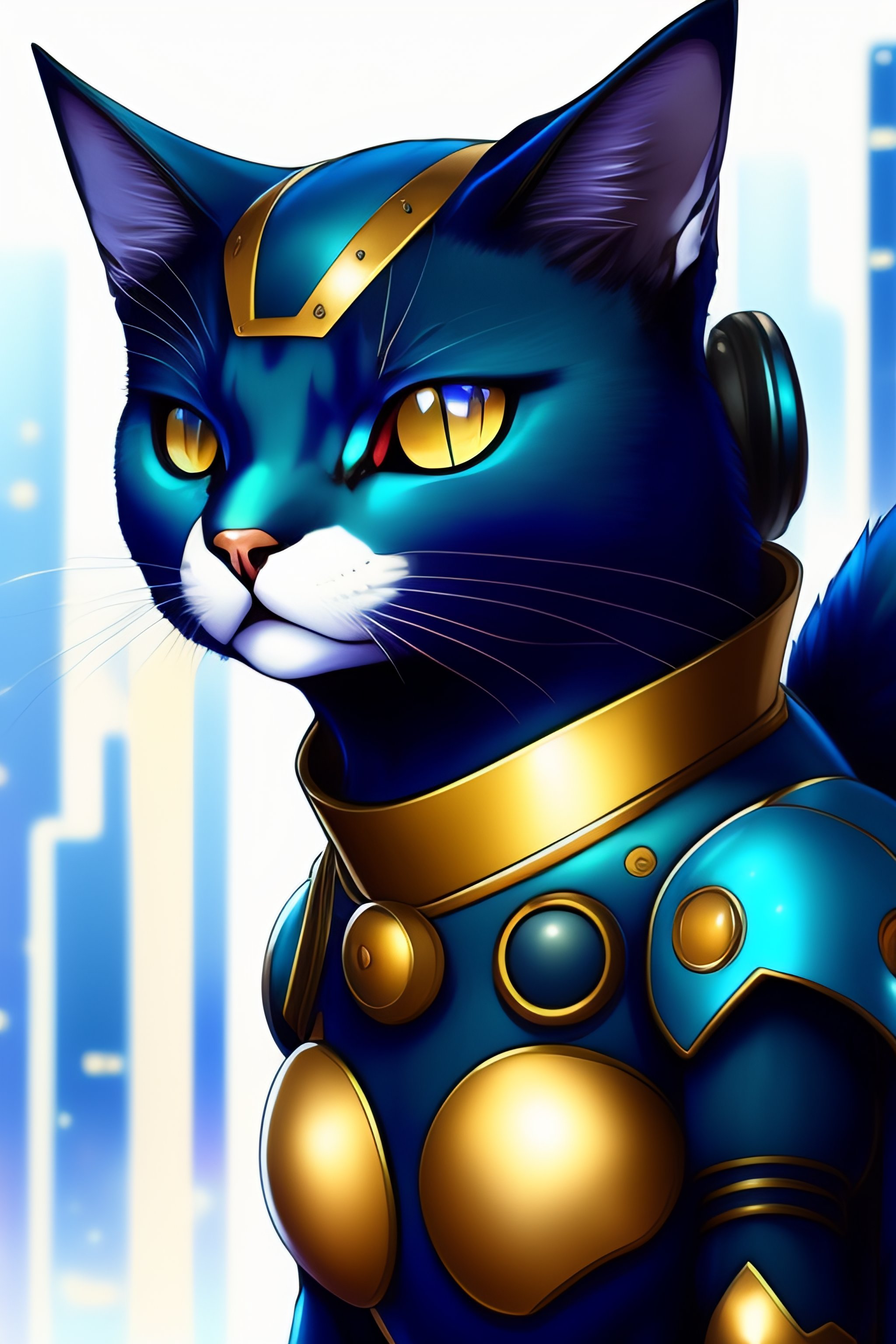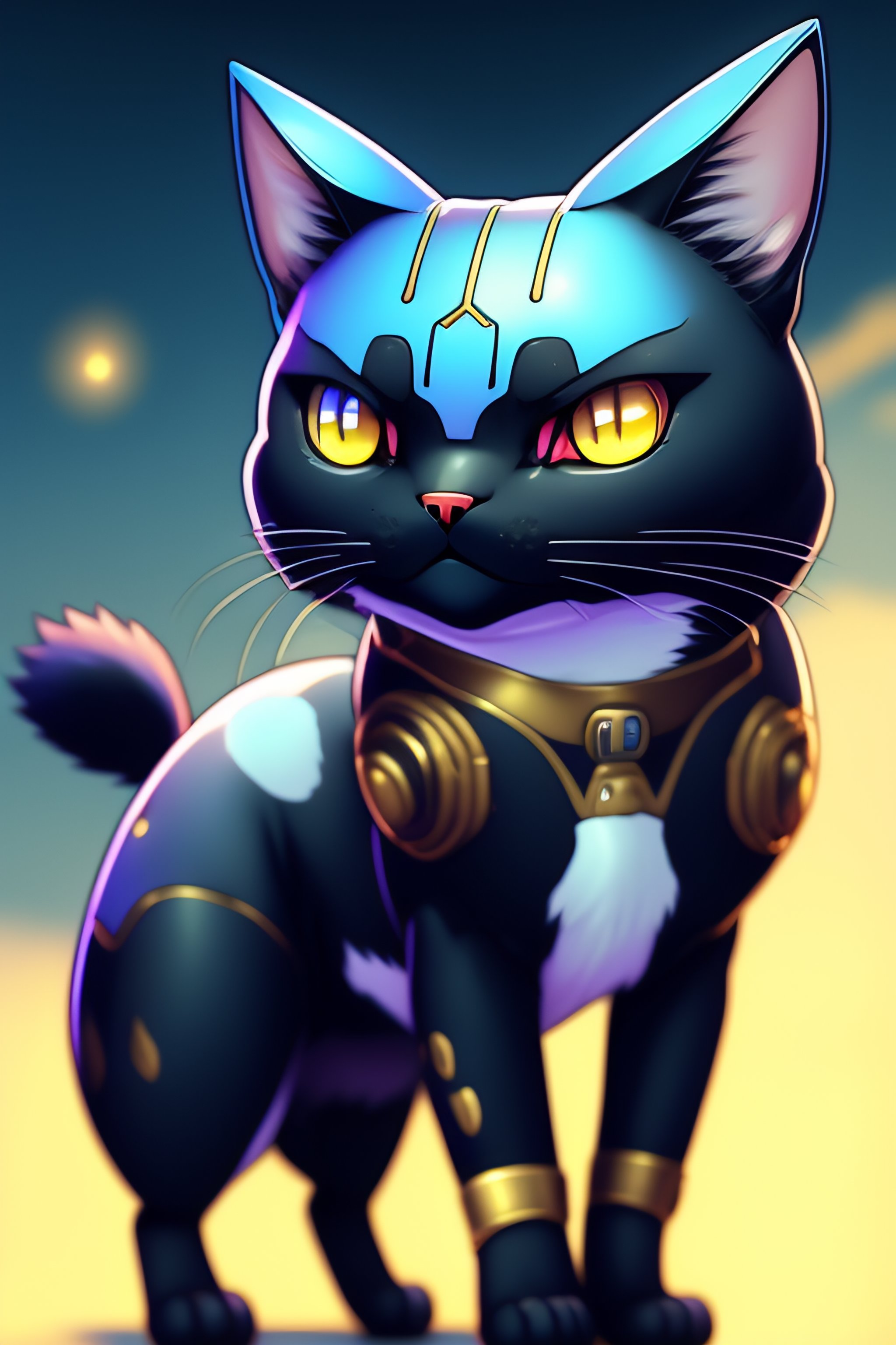 Anime illustration of a pokemon blue and black robot cat
