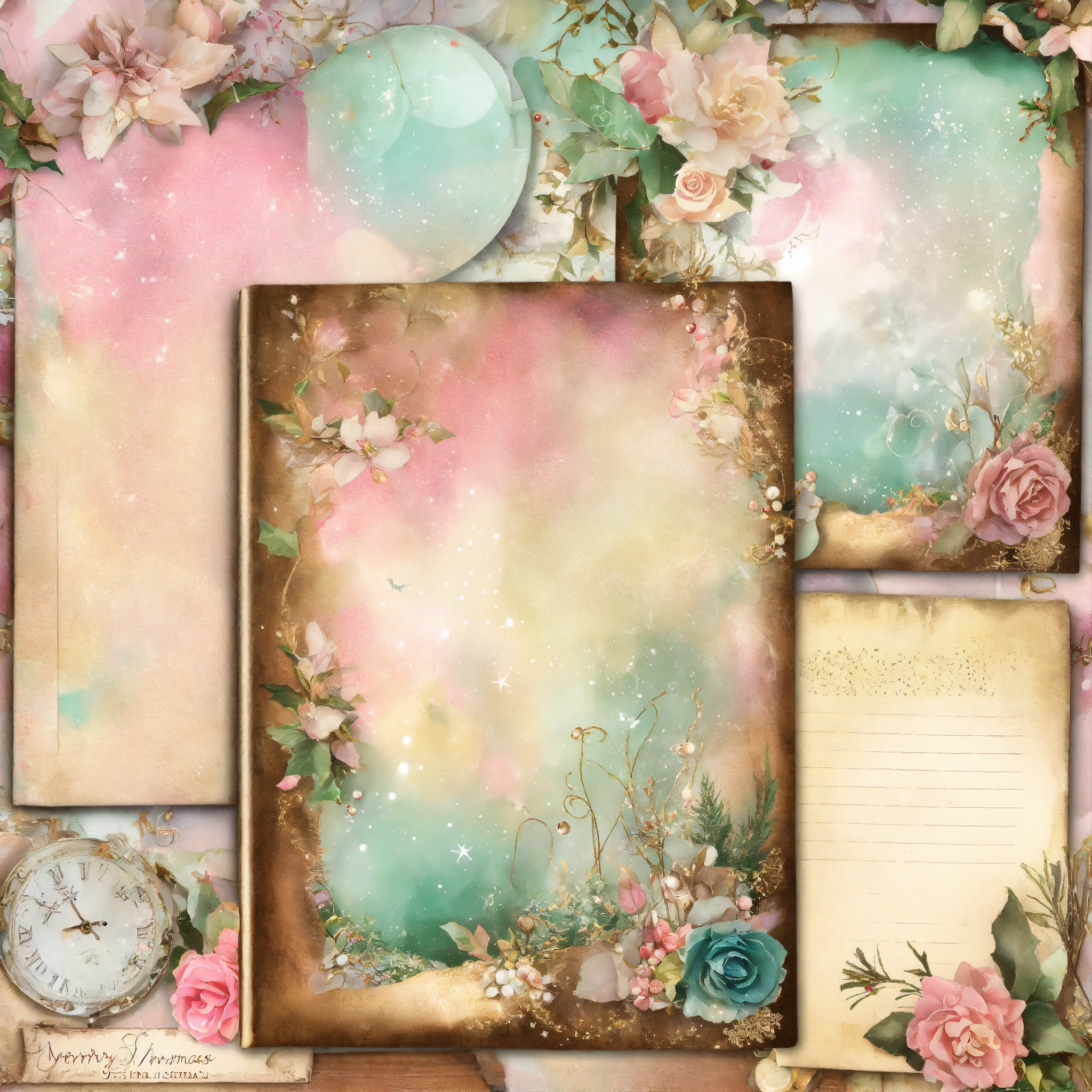 Shabby chic dreamy mist pastel junk journals christmas daily junk journal digital kit, printable collage sheets, christmas daily add on junk journal, journal supplies, ephemera pages swirling magical fairytale abstract art style