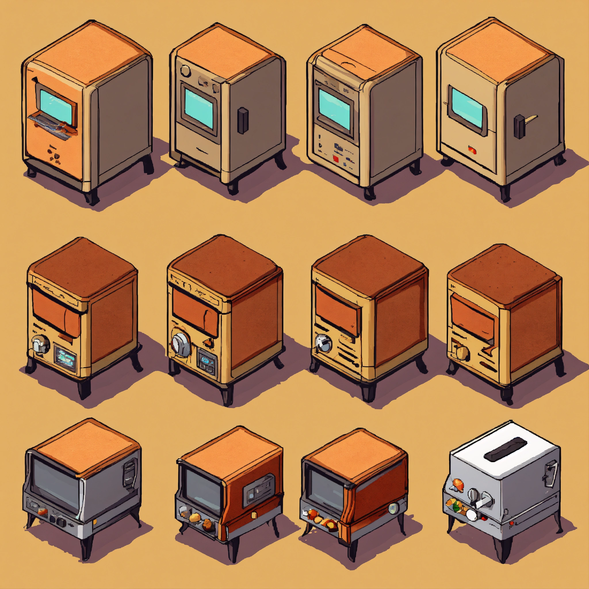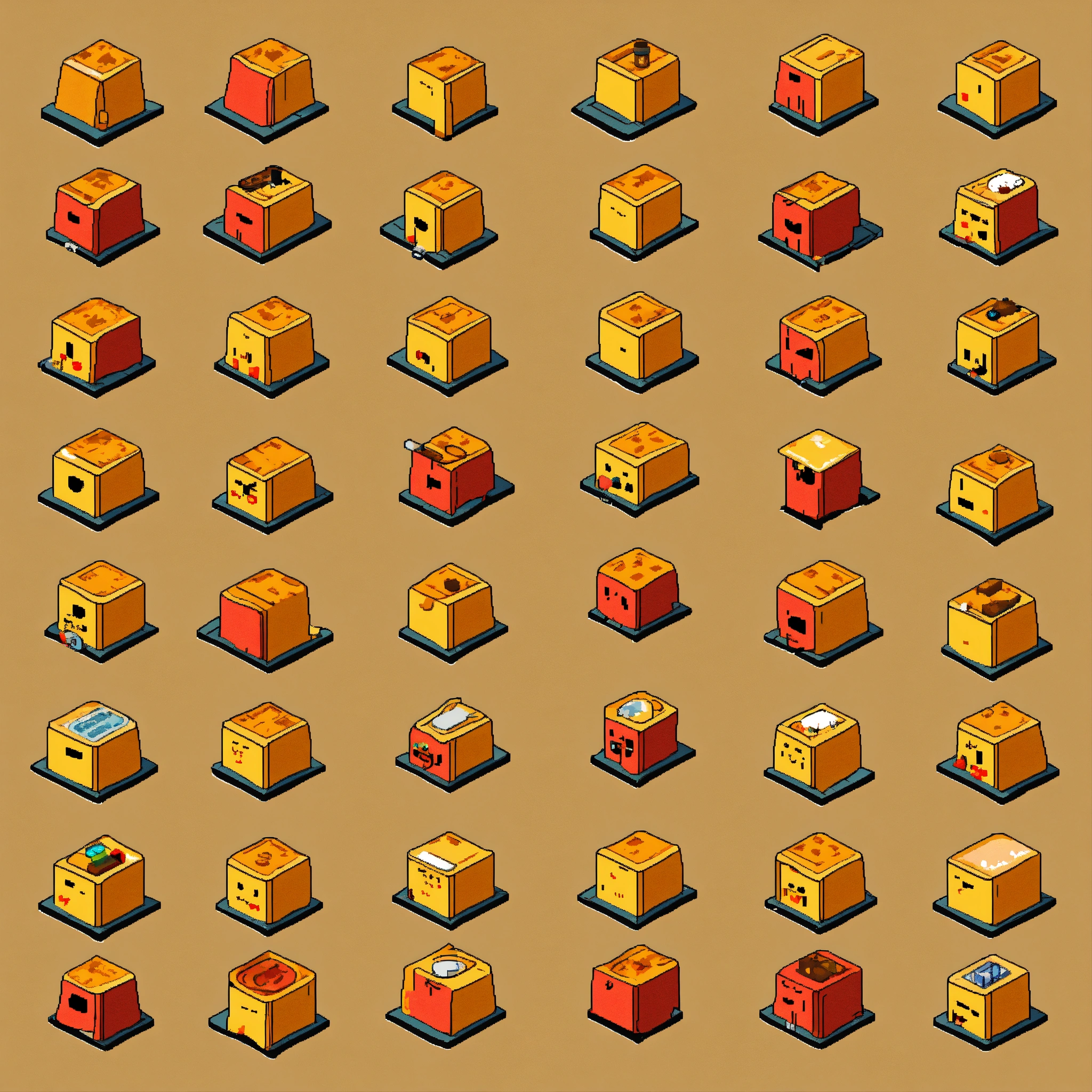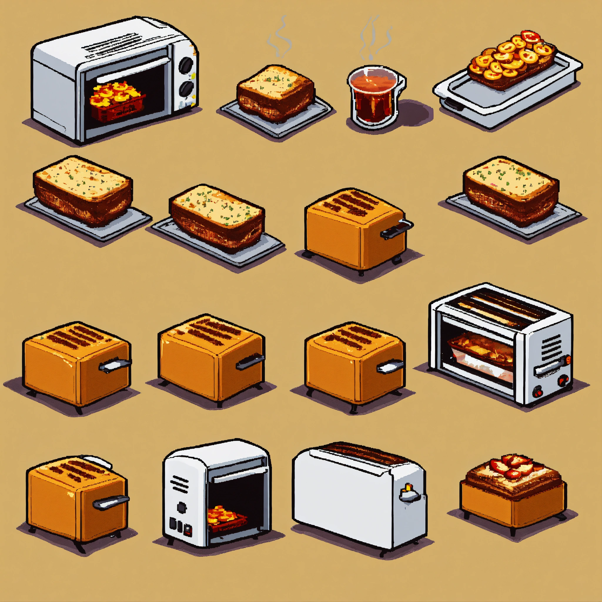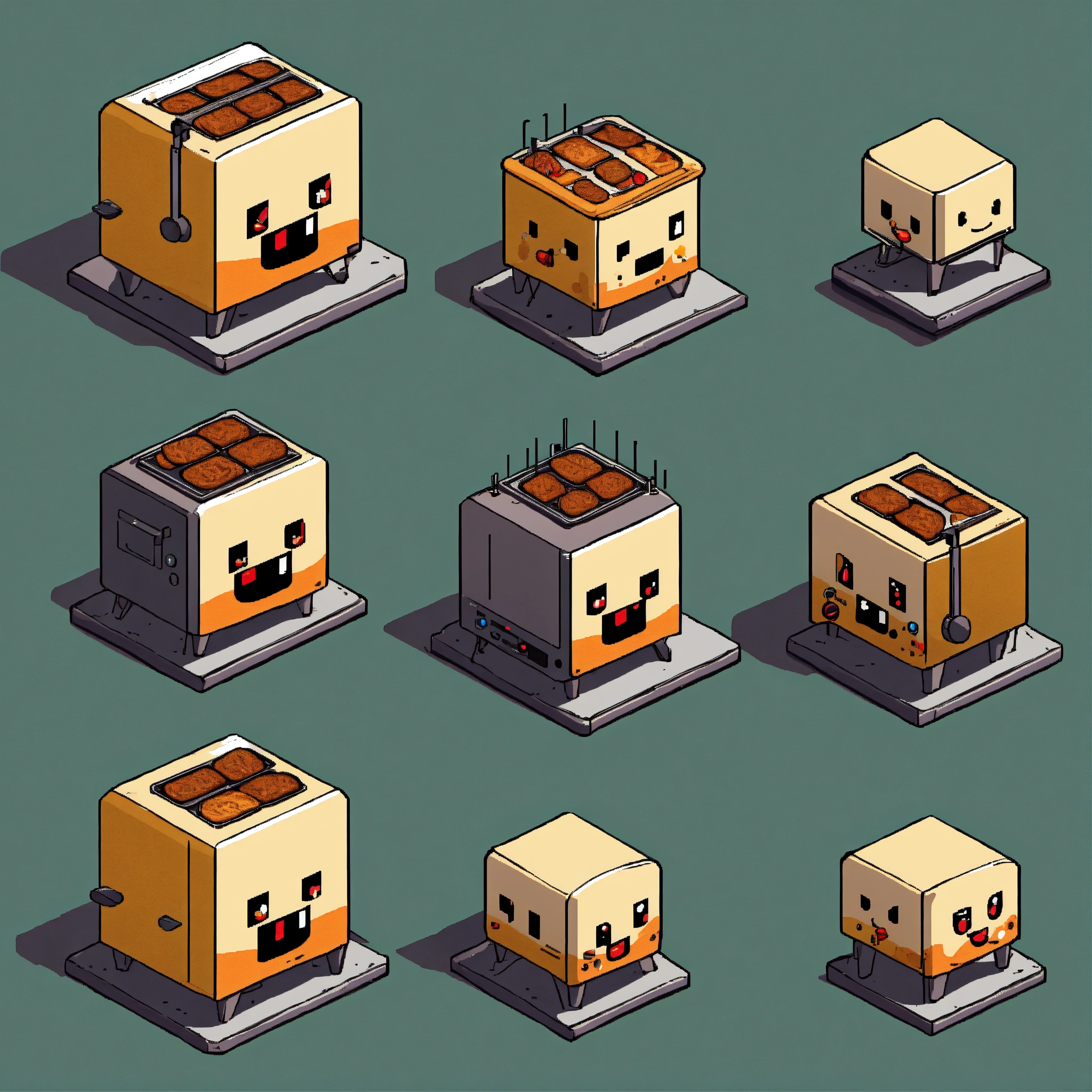Defeat animation sprite sheet for a smiling toaster oven enemy