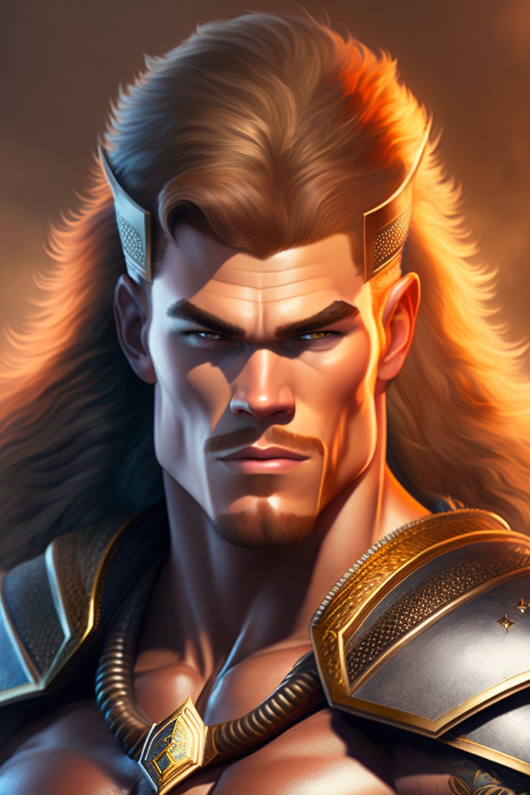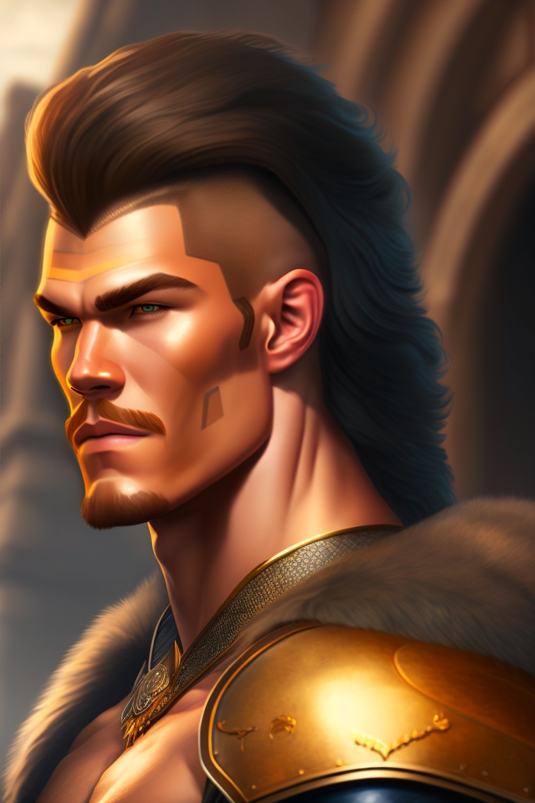 Alan ritchson as a barbarian warrior with short black hair, with a lion's skin on his head, artistic illustration, incredibly detailed and realistic, 8k, sharp focus