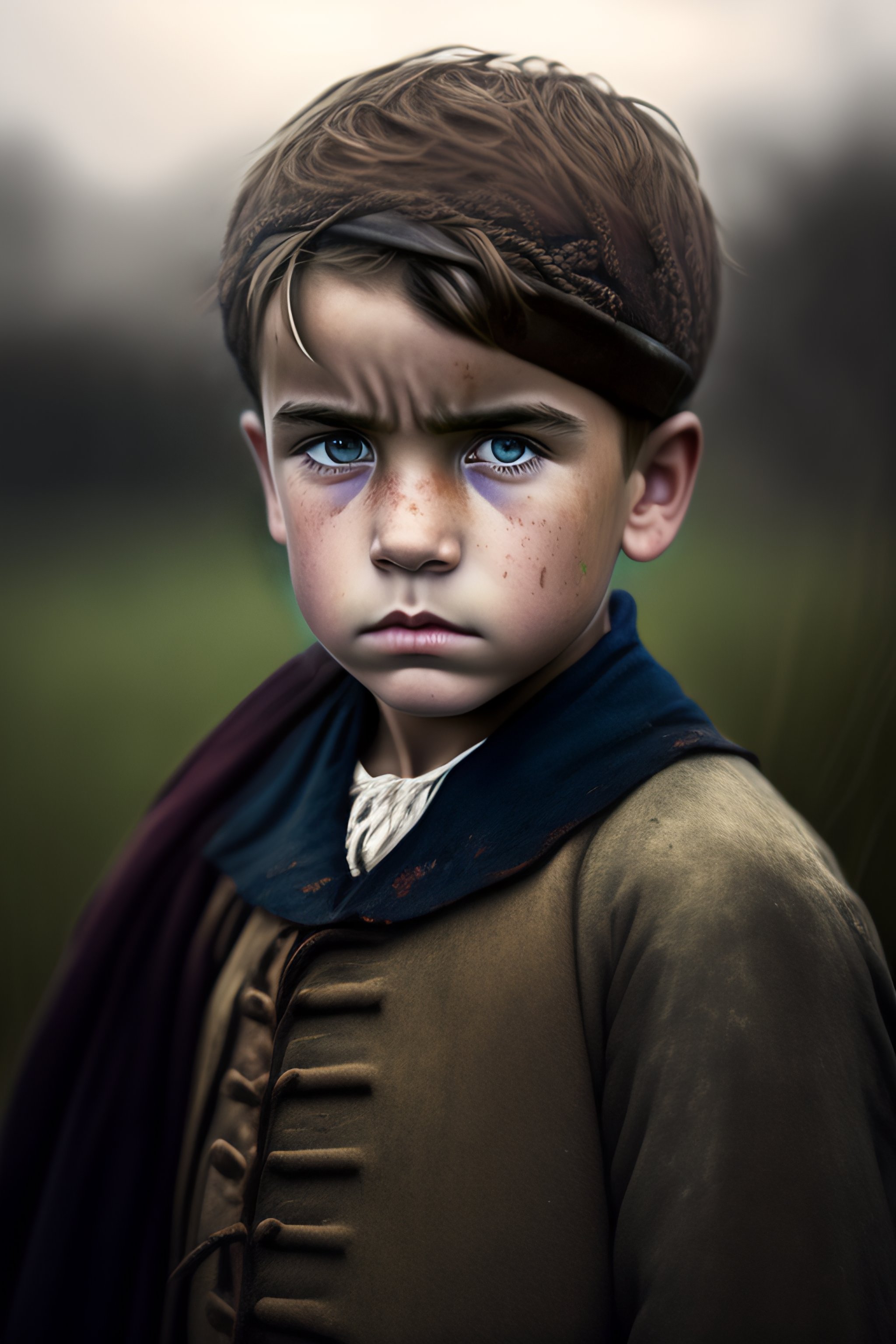 A portrait of poor peasant child in old used 1800 london british peasant clothing, crazy mad aggressive face and eyes, fantasy, concept art, acrylic painting, moody gray colours, gritty, messy style