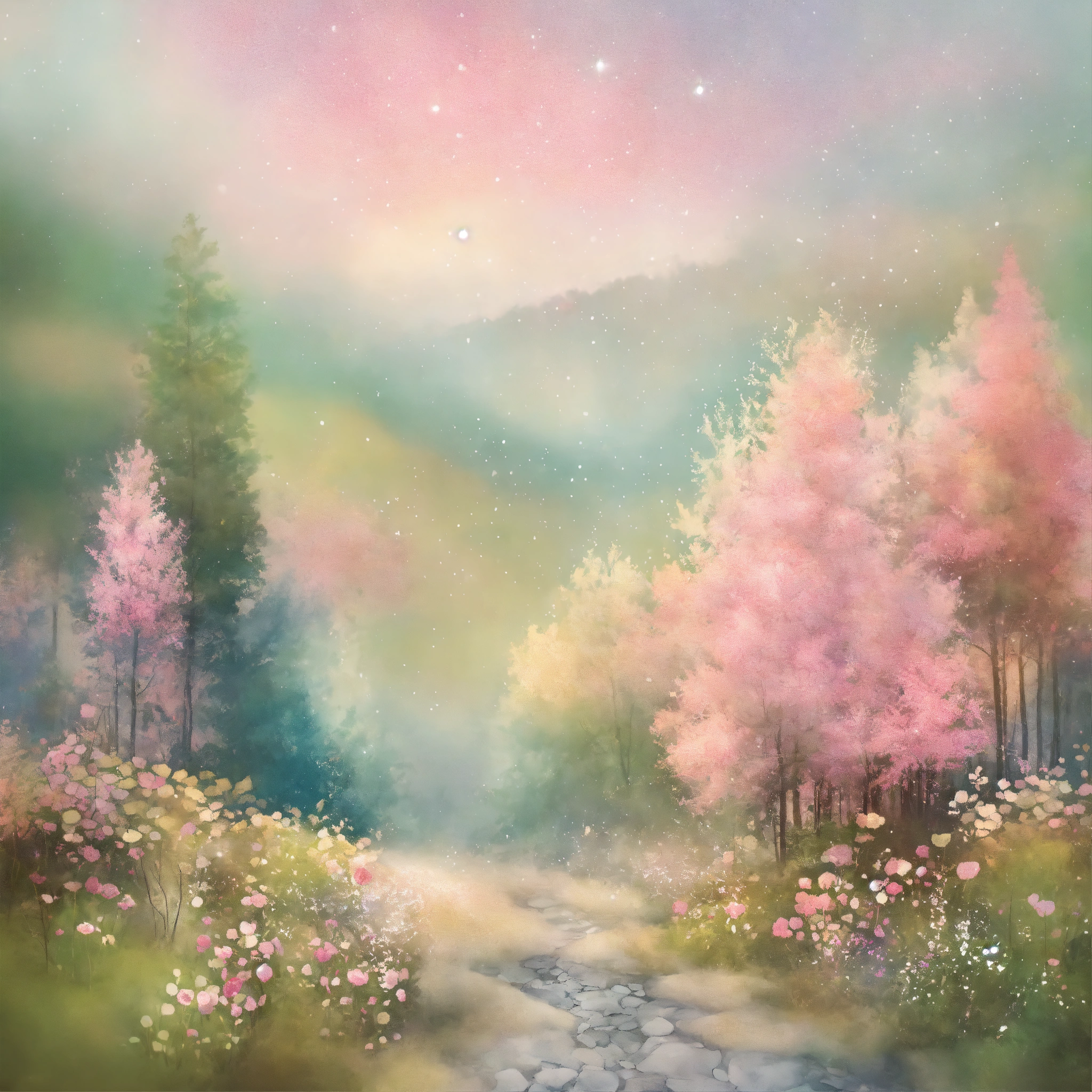 Shabby chic dreamy mist pastel junk journals tiny woods swirling magical fairytale abstract art style