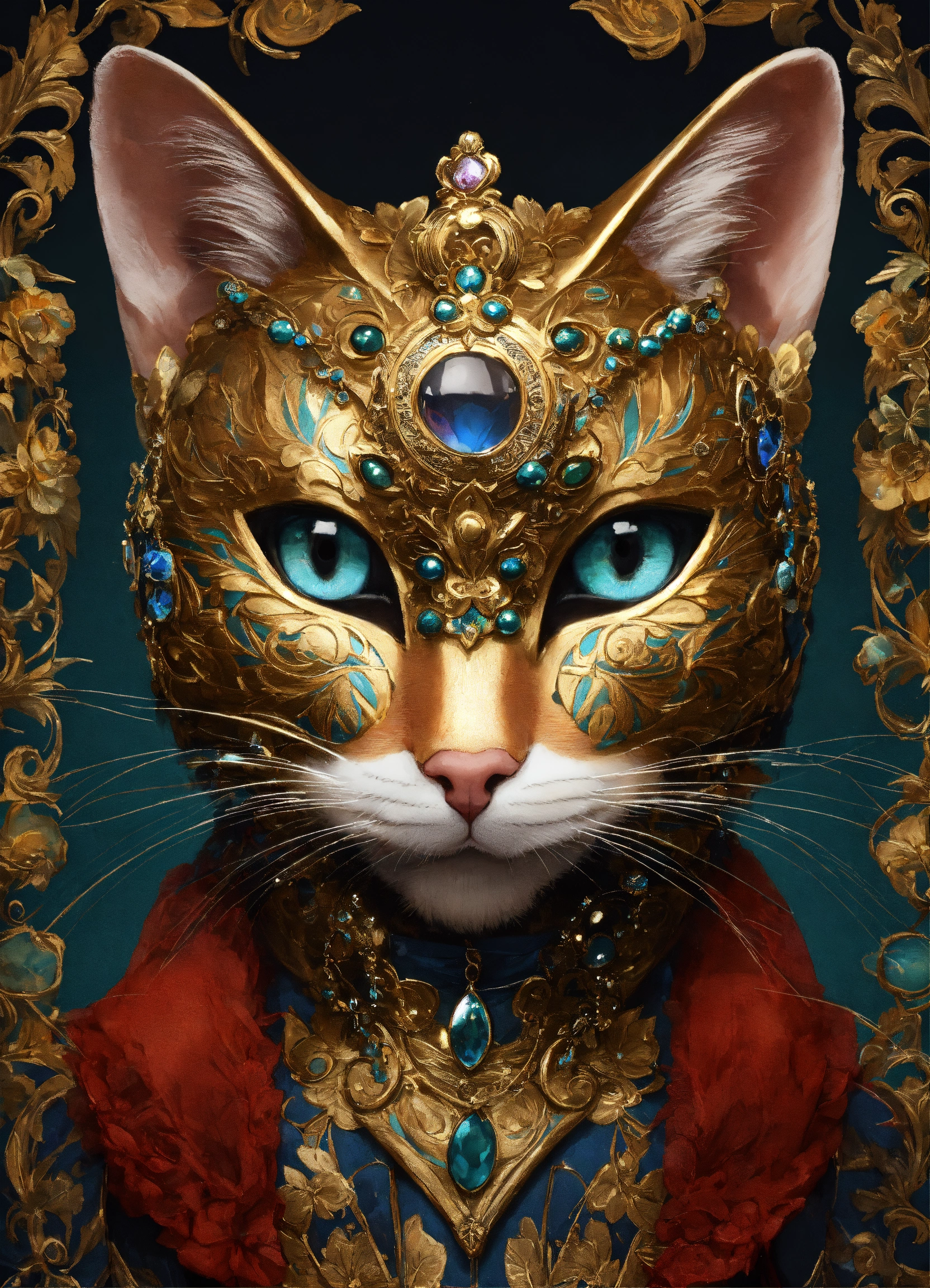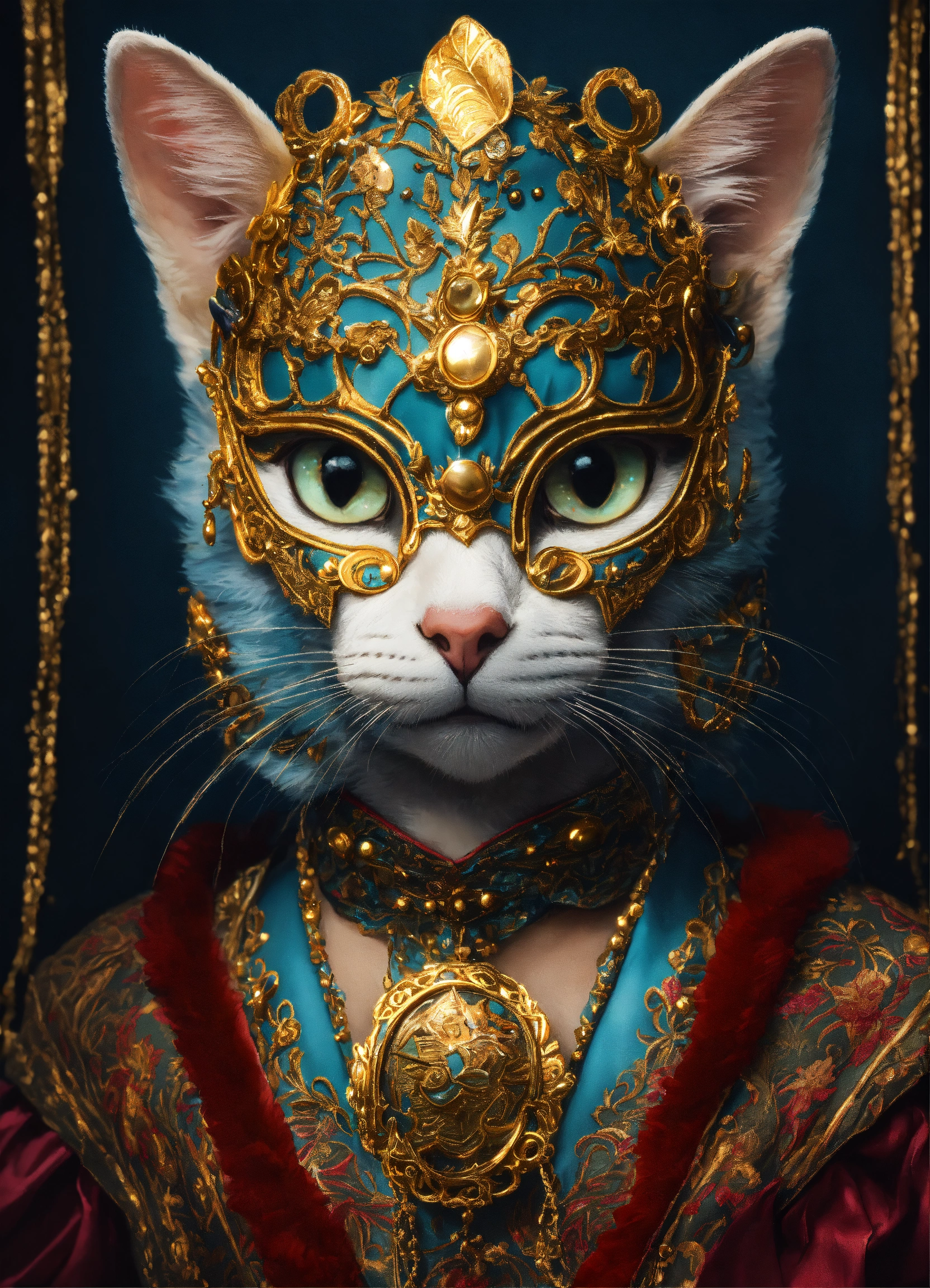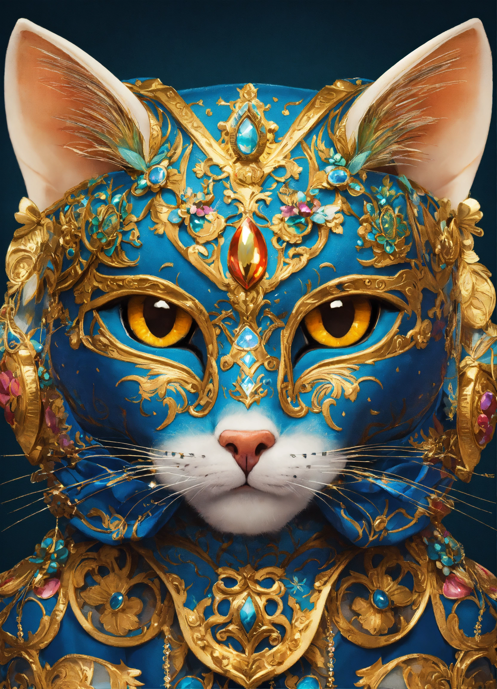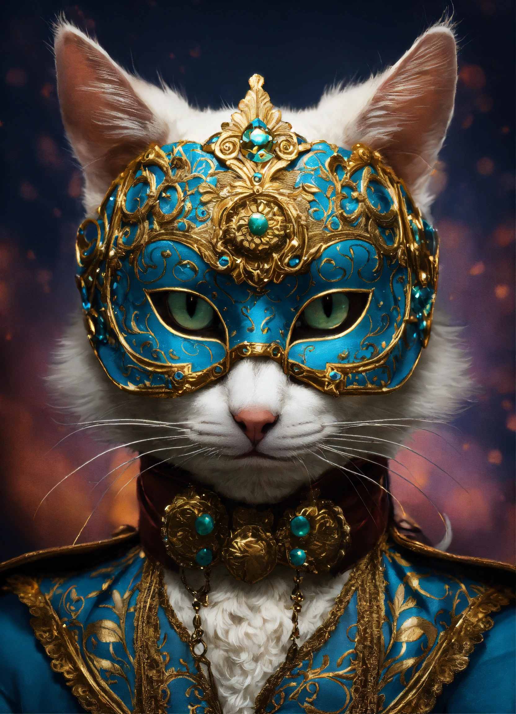 Portrait of a cat in a richly decorated masquerade mask. the mask has high detail and elegant style. the design creates an atmosphere of mystery, fantasy, and magic.