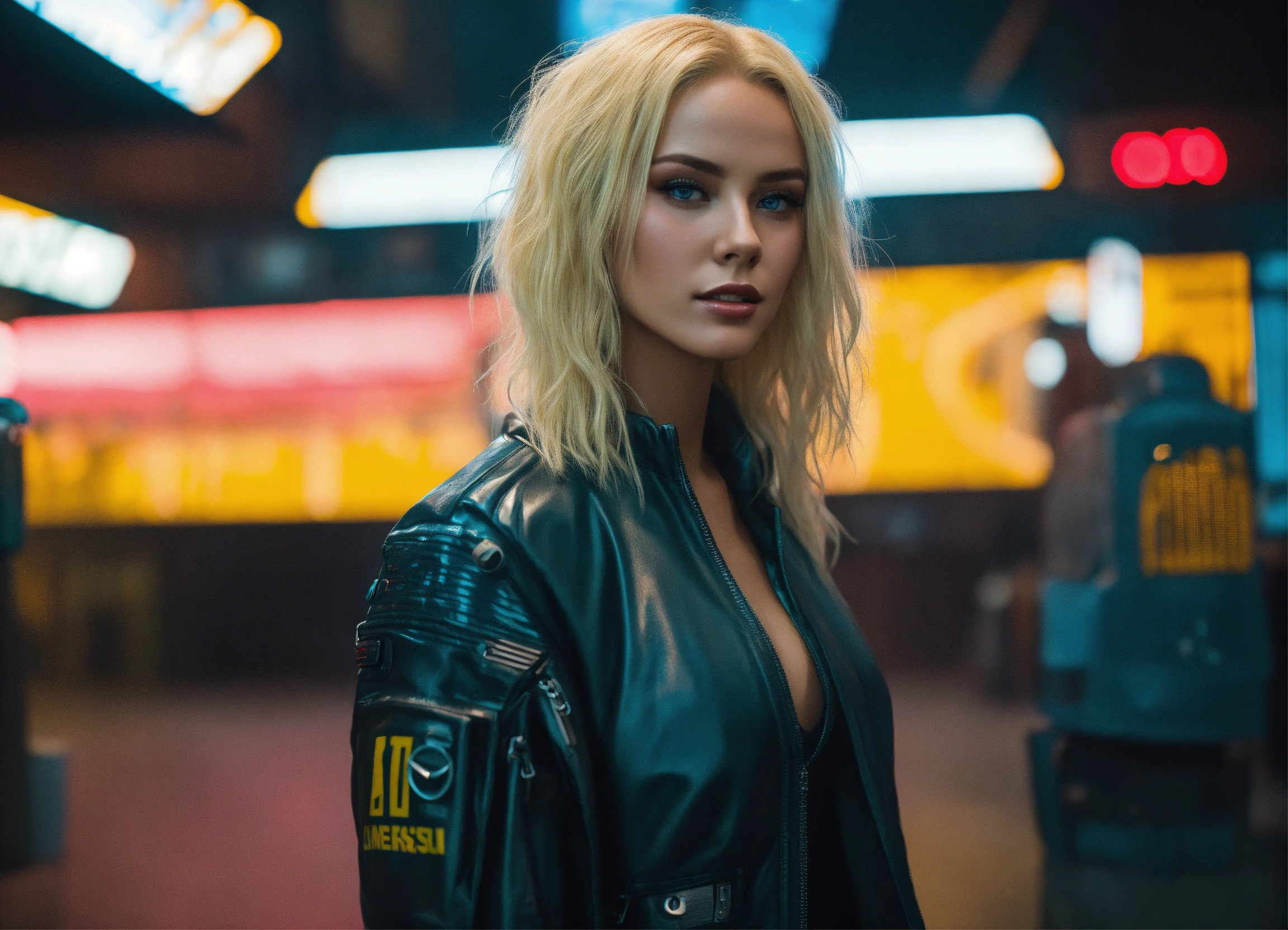 Full body front view 25 year old beautiful blond european model (looks like pamela ) has big futuristic angelwing's in the ghetto of cyberpunk 2077