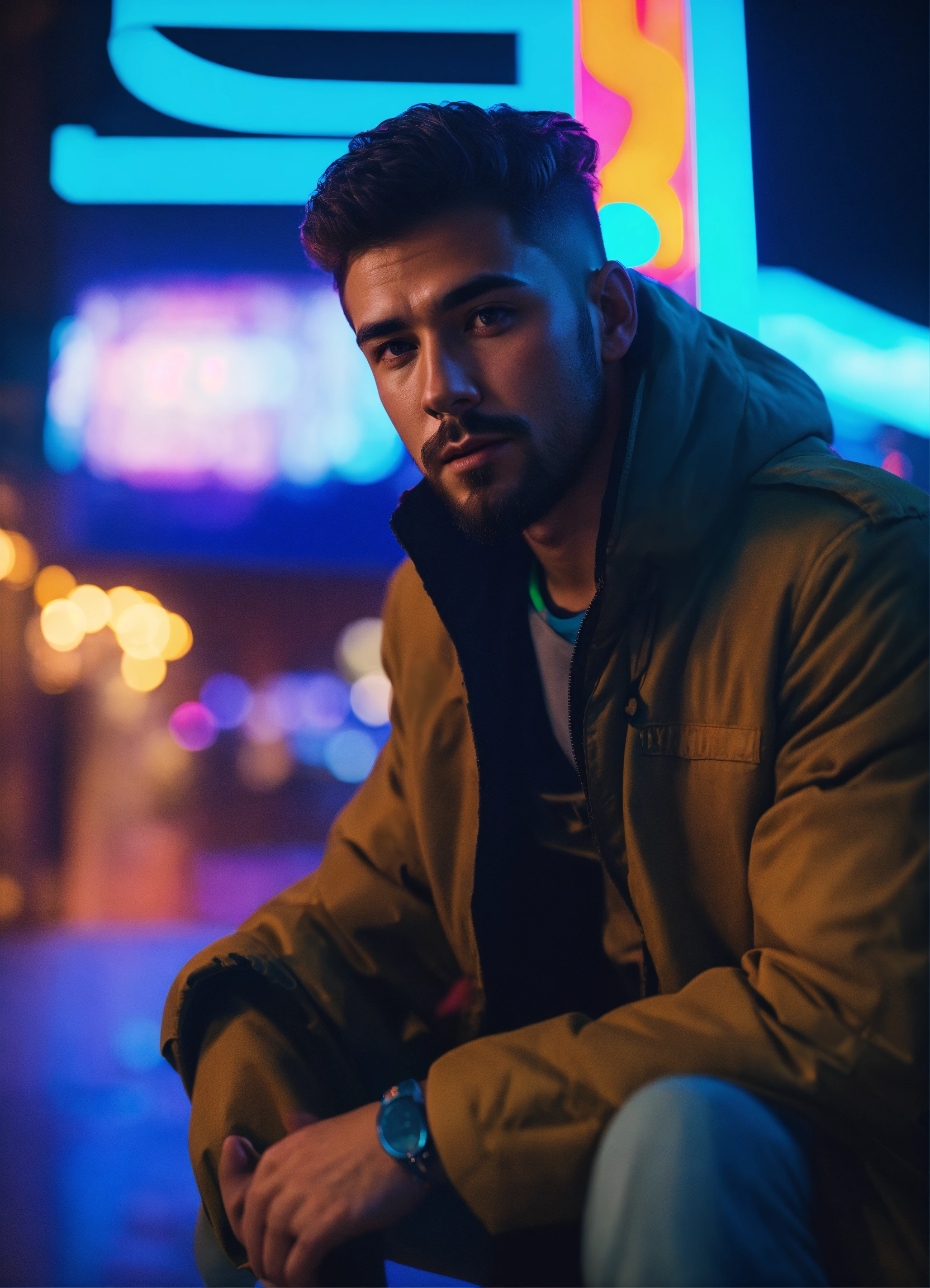 Cinematic photography, modern, male sage, proportionate, neon colors, realistic details, ultra 8k resolution