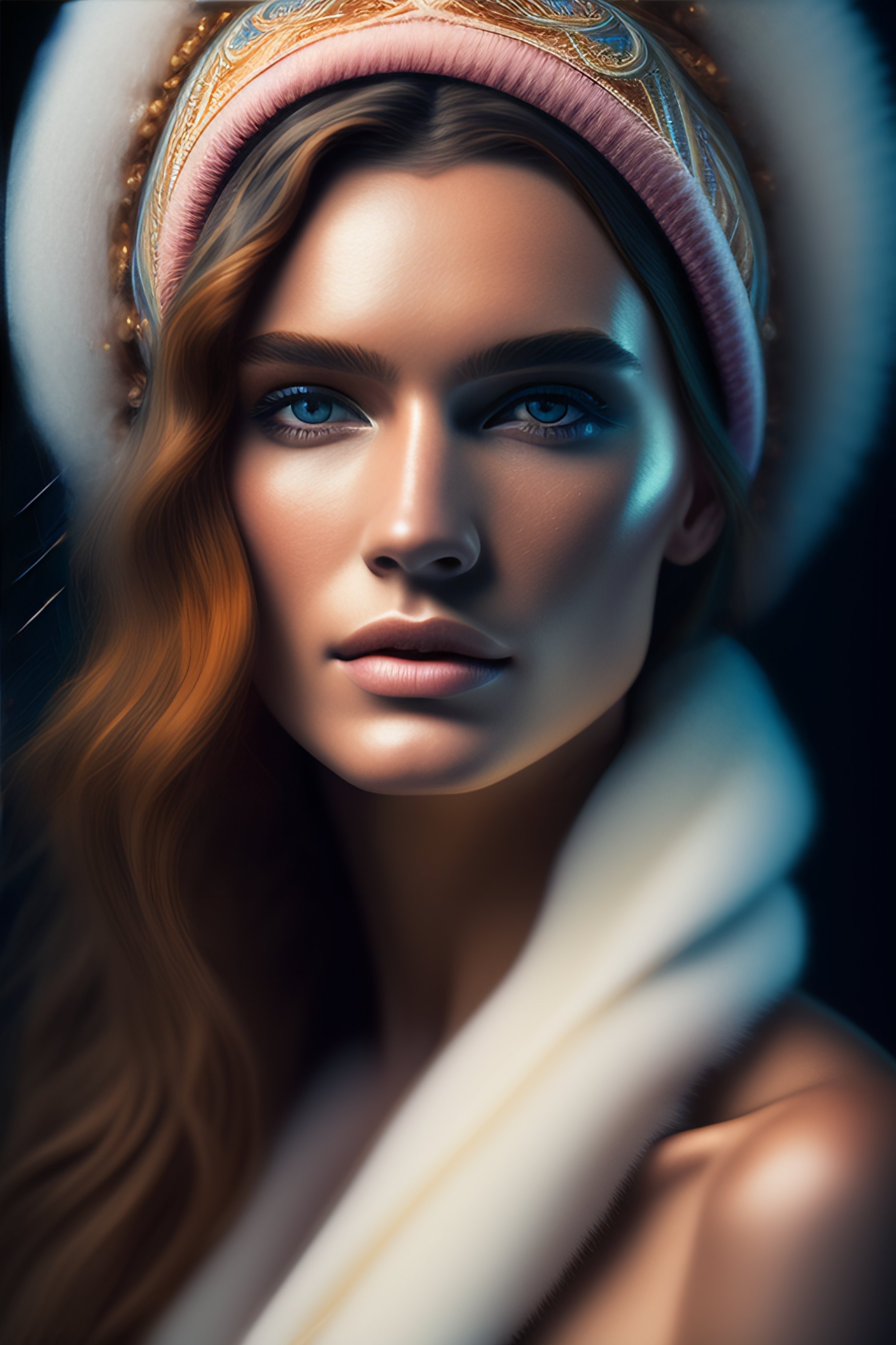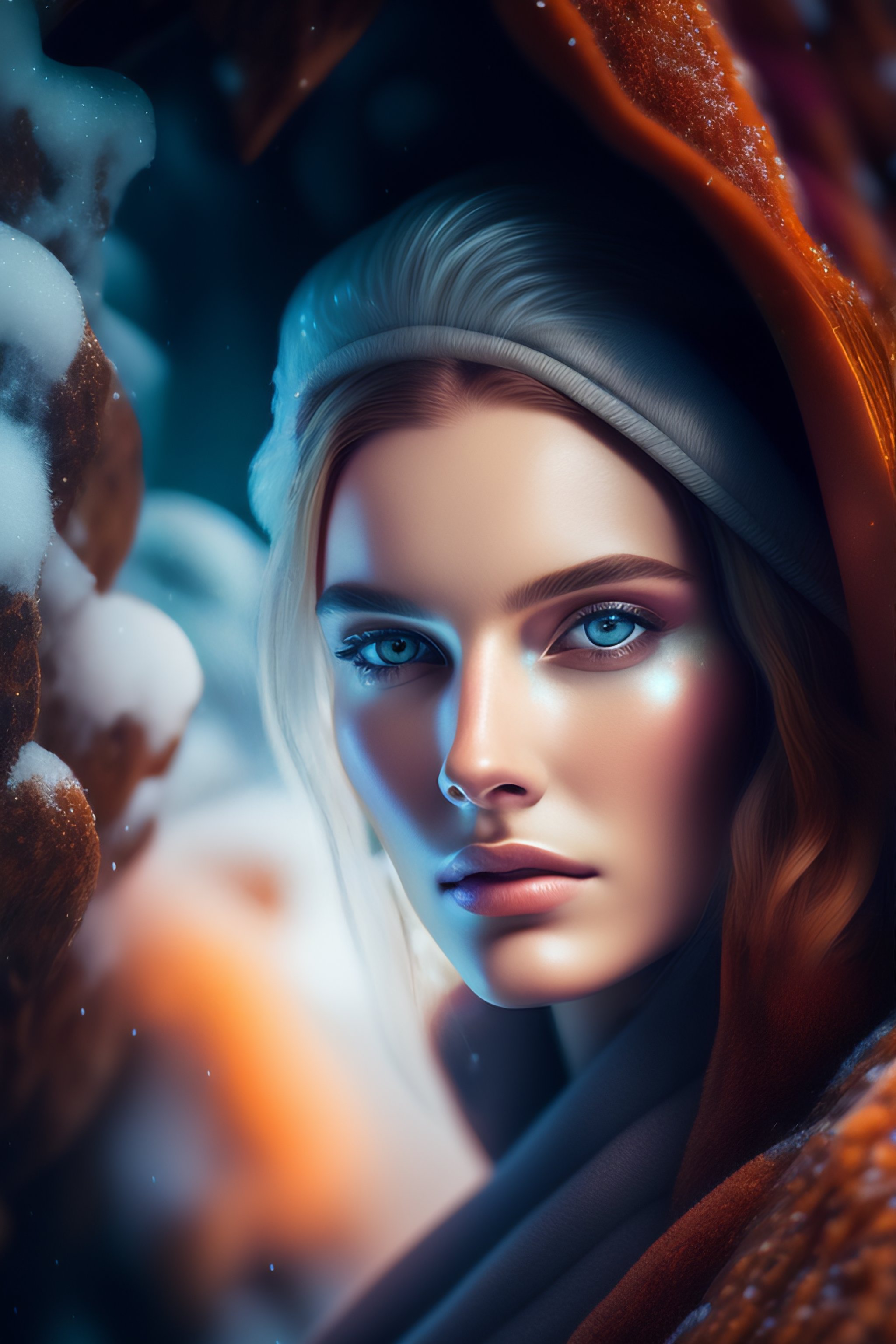 20 years old woman in the snow cave, kodak portra 400, 8k, volumetric lighting, highly detailed, fine art portrait photography in style of paolo roversi, britt marling style 3/4 face merging with stormy clouds in metamorphosis complex 3d render, 150 mm lens, art nouveau fashion embroidered, intricate details, elegant, hyper realistic, ultra detailed, octane render, etheric, outworldly colours, emotionally evoking, head in focus, fantasy, ornamental, intricate, elegant, 8k, soft light, volumetric lighting, highly detailed, refined, highly detailed, soft lighting colors scheme, fine art photography, hyper realistic, photo realistic