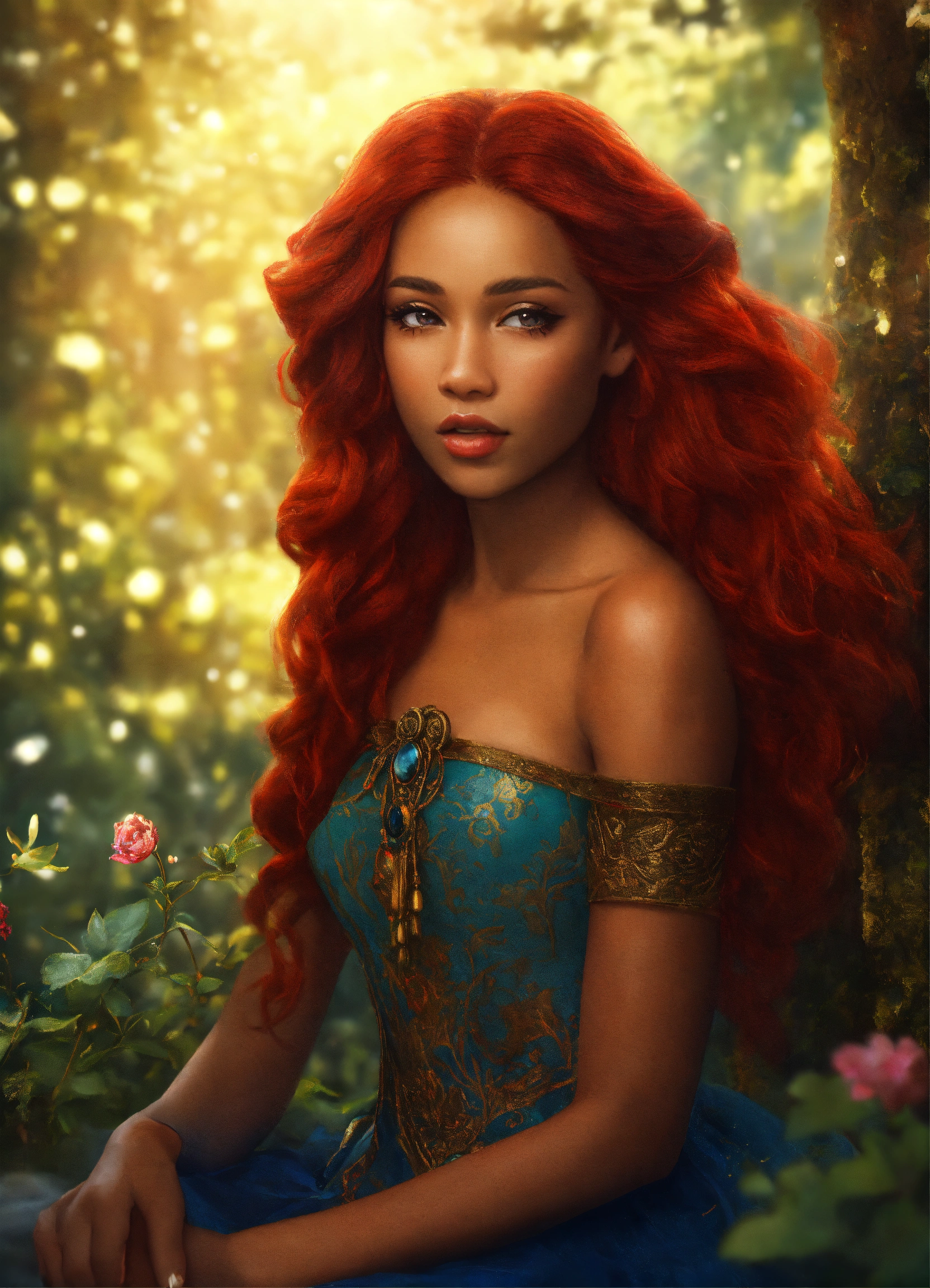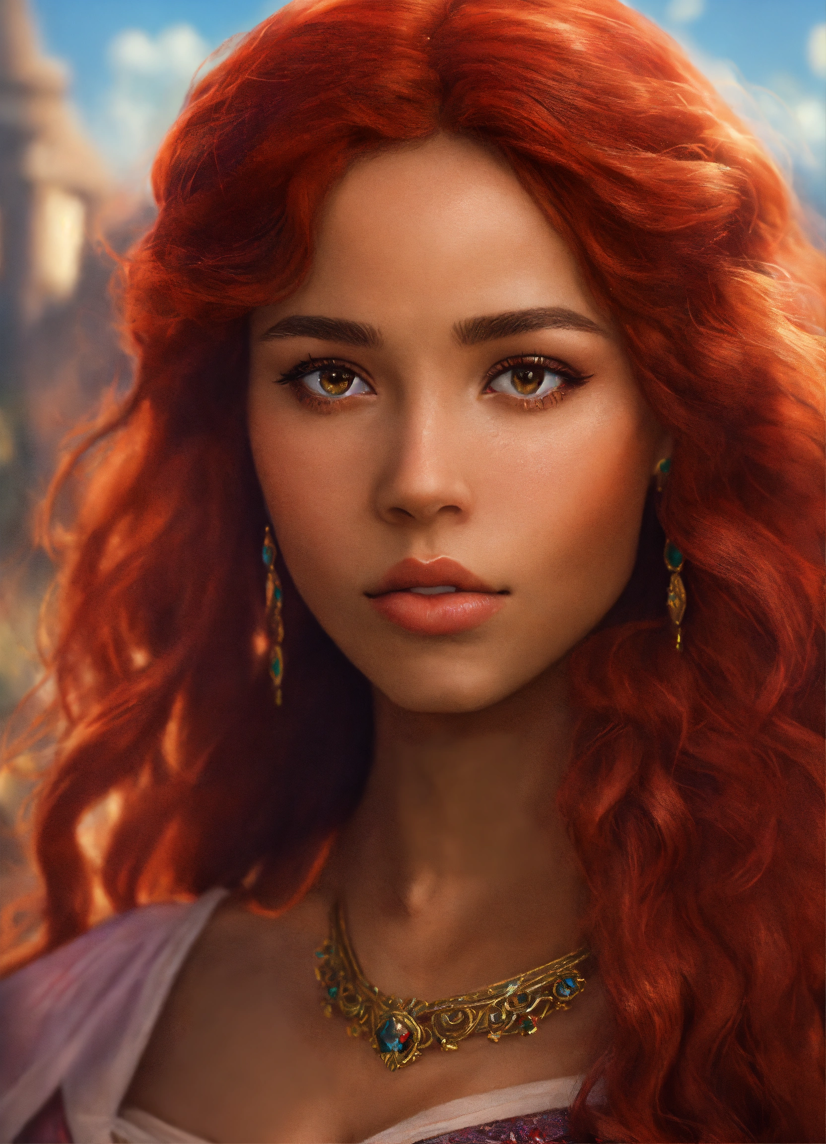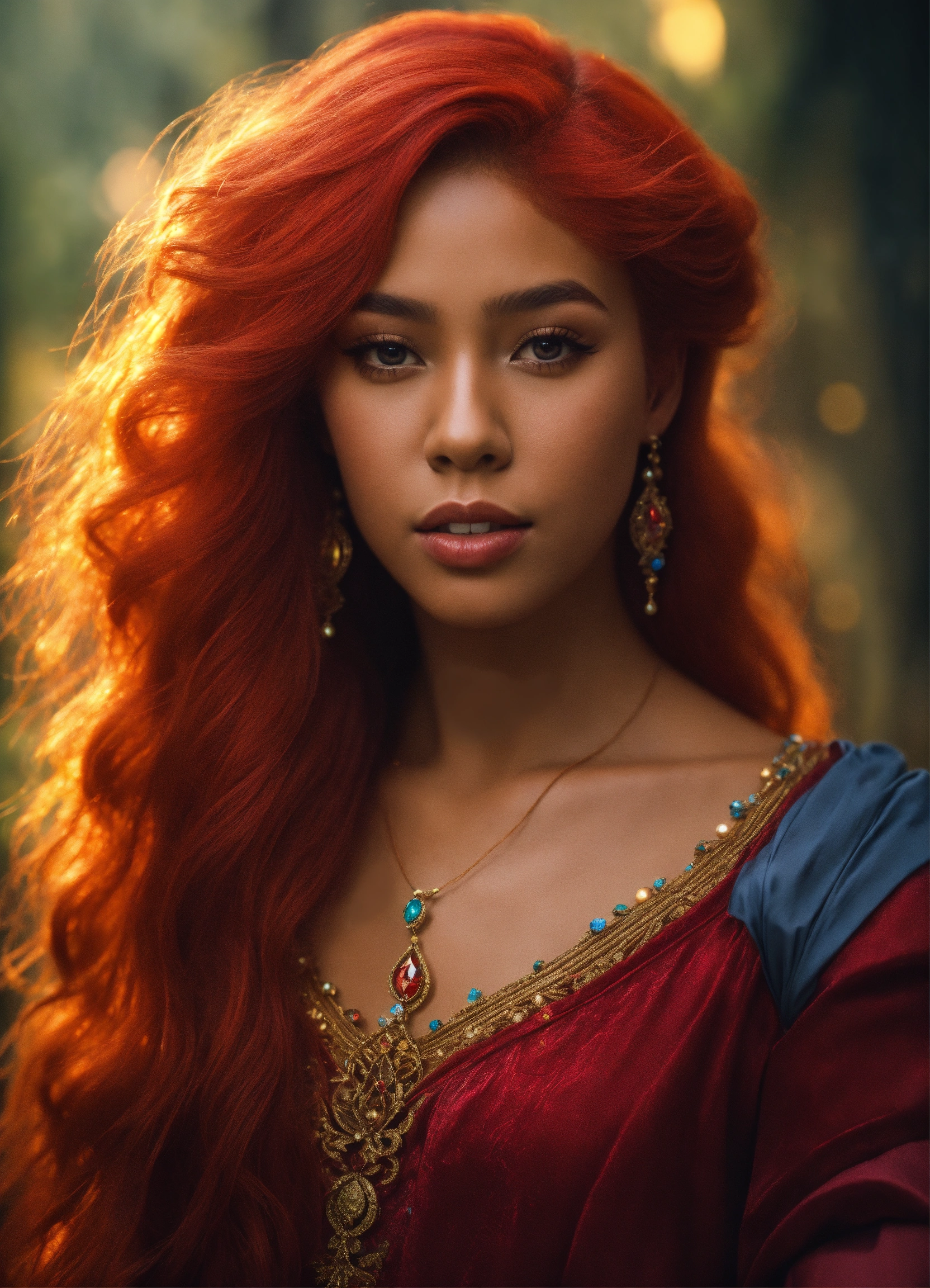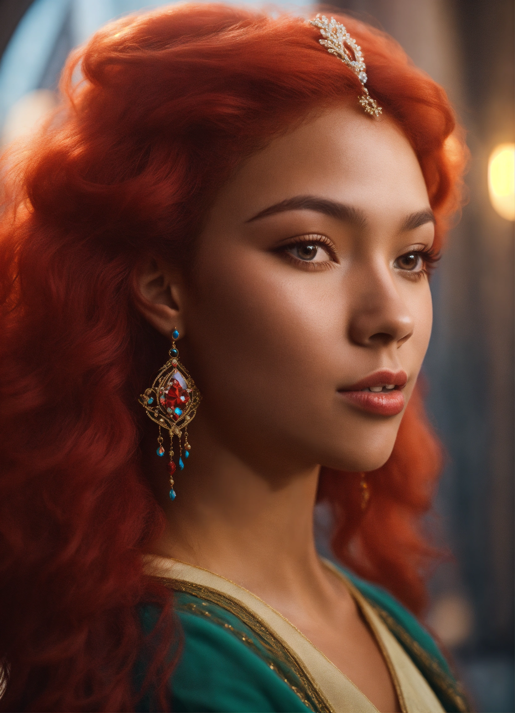 Mixed-race people princess red hair magical realism 4k
