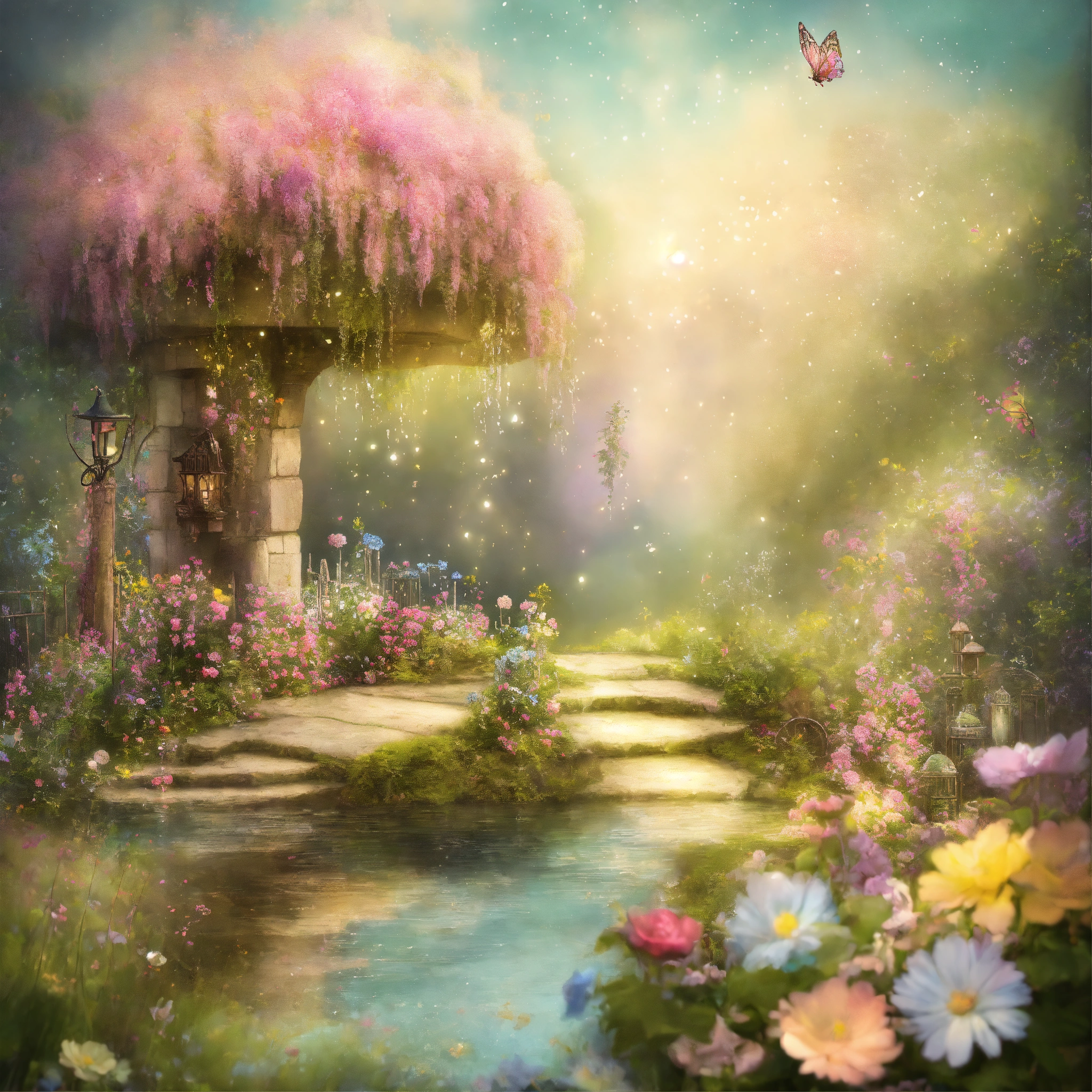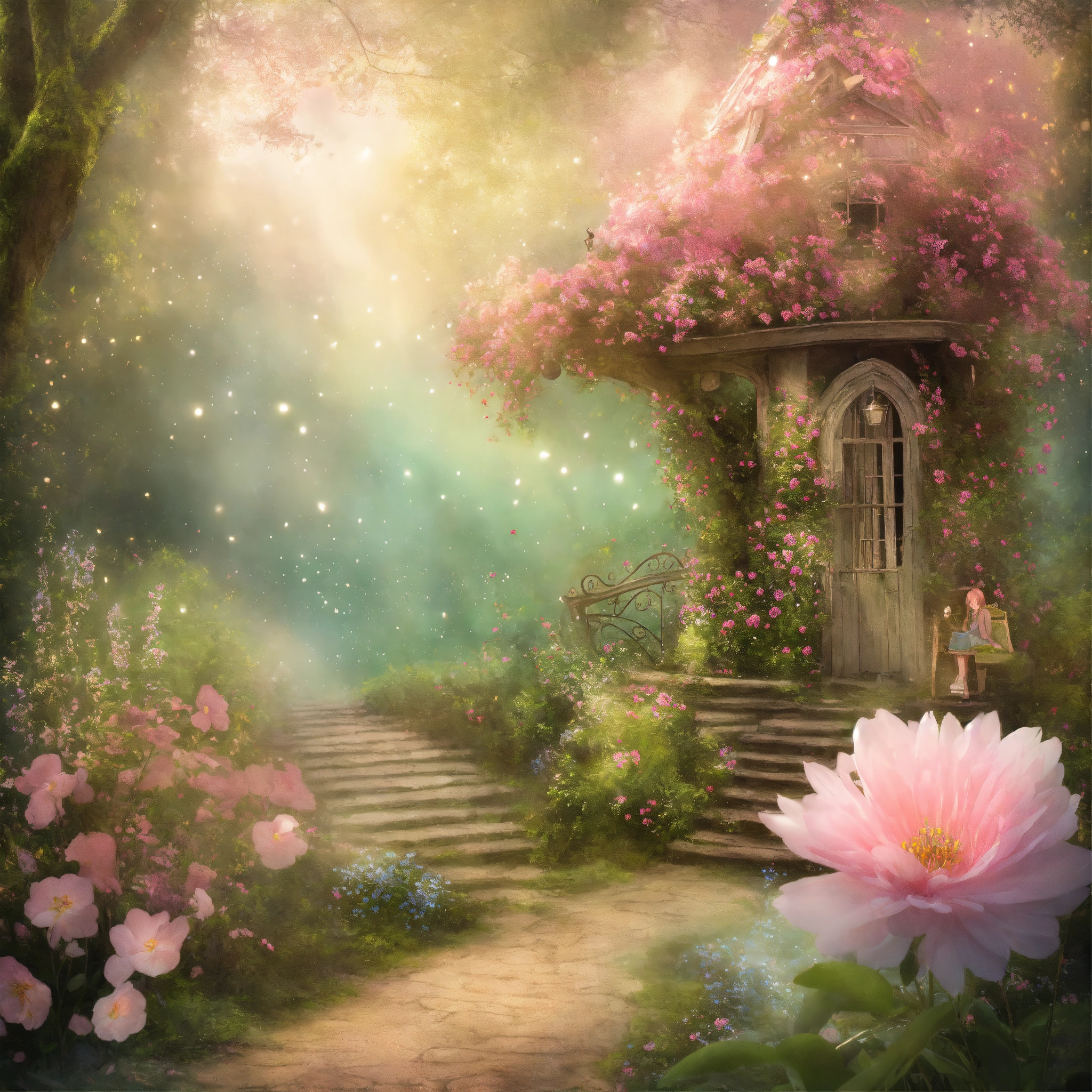 Shabby chic dreamy mist pastel junk journals fairy belle secret garden swirling magical fairytale abstract art style