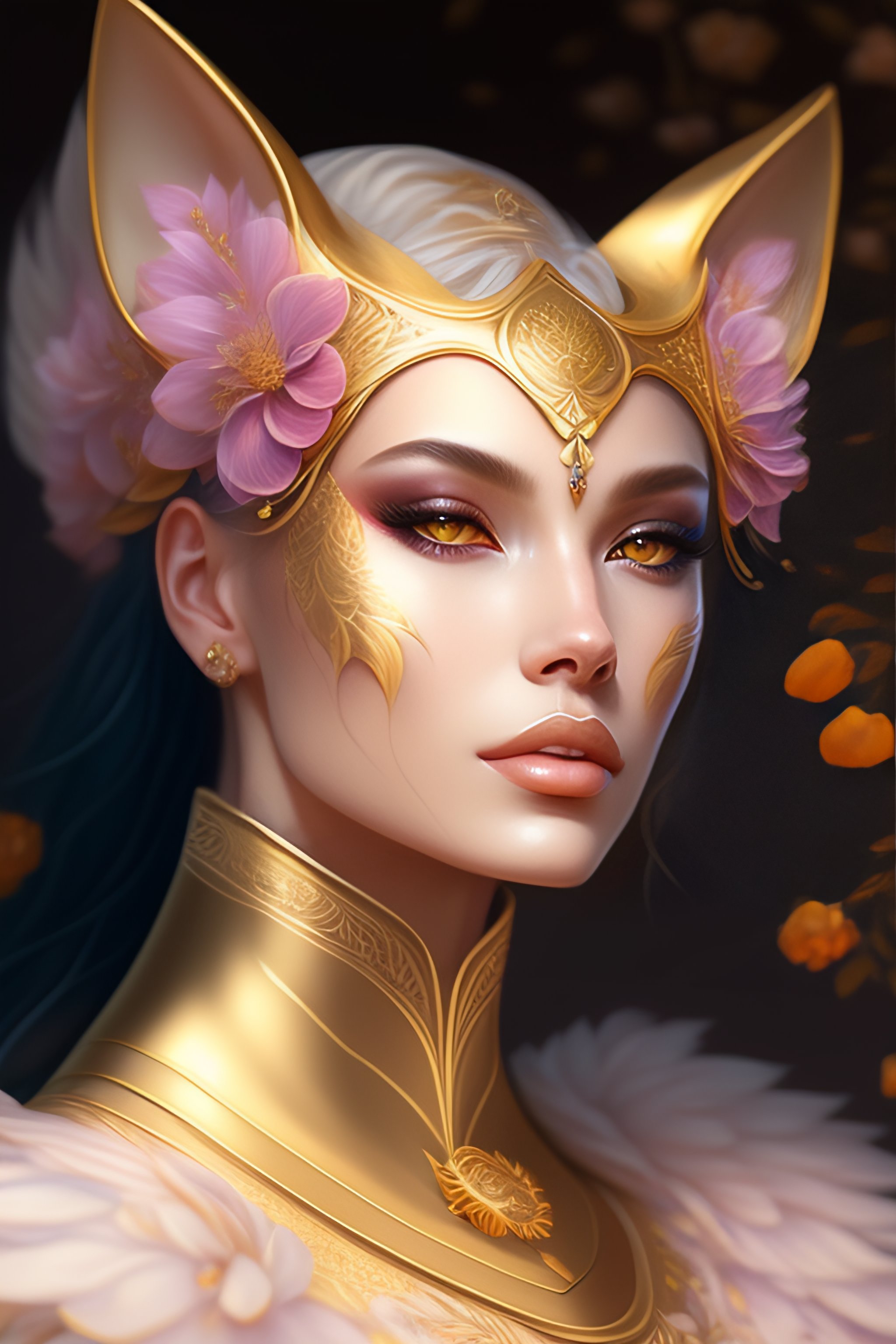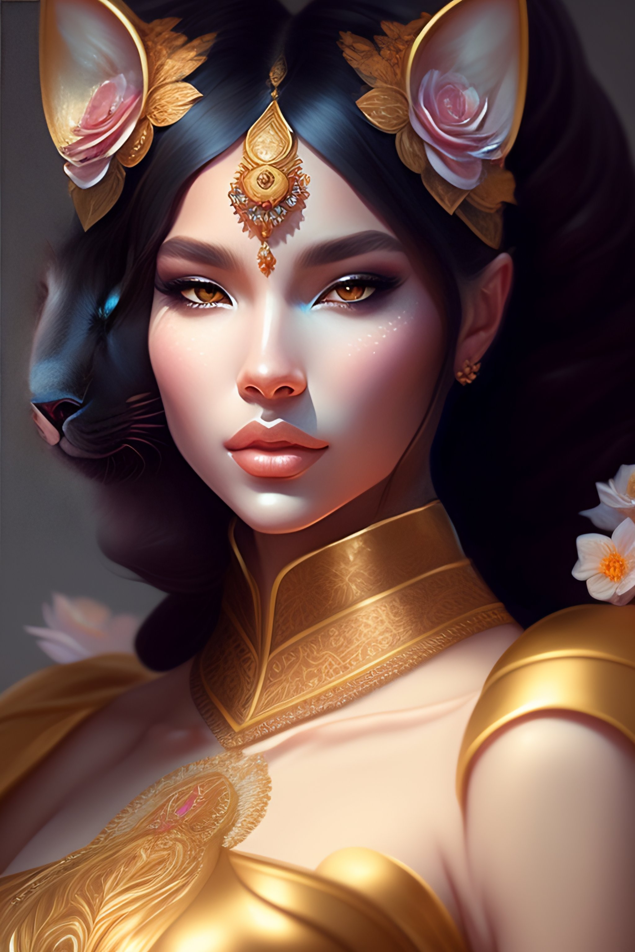 Symmetry!! portrait of a hybrid fantasy cat, floral! intricate, elegant, highly detailed, digital painting, artstation, concept art, smooth, sharp focus, illustration, art by artgerm and greg rutkowski and alphonse mucha, 8 k