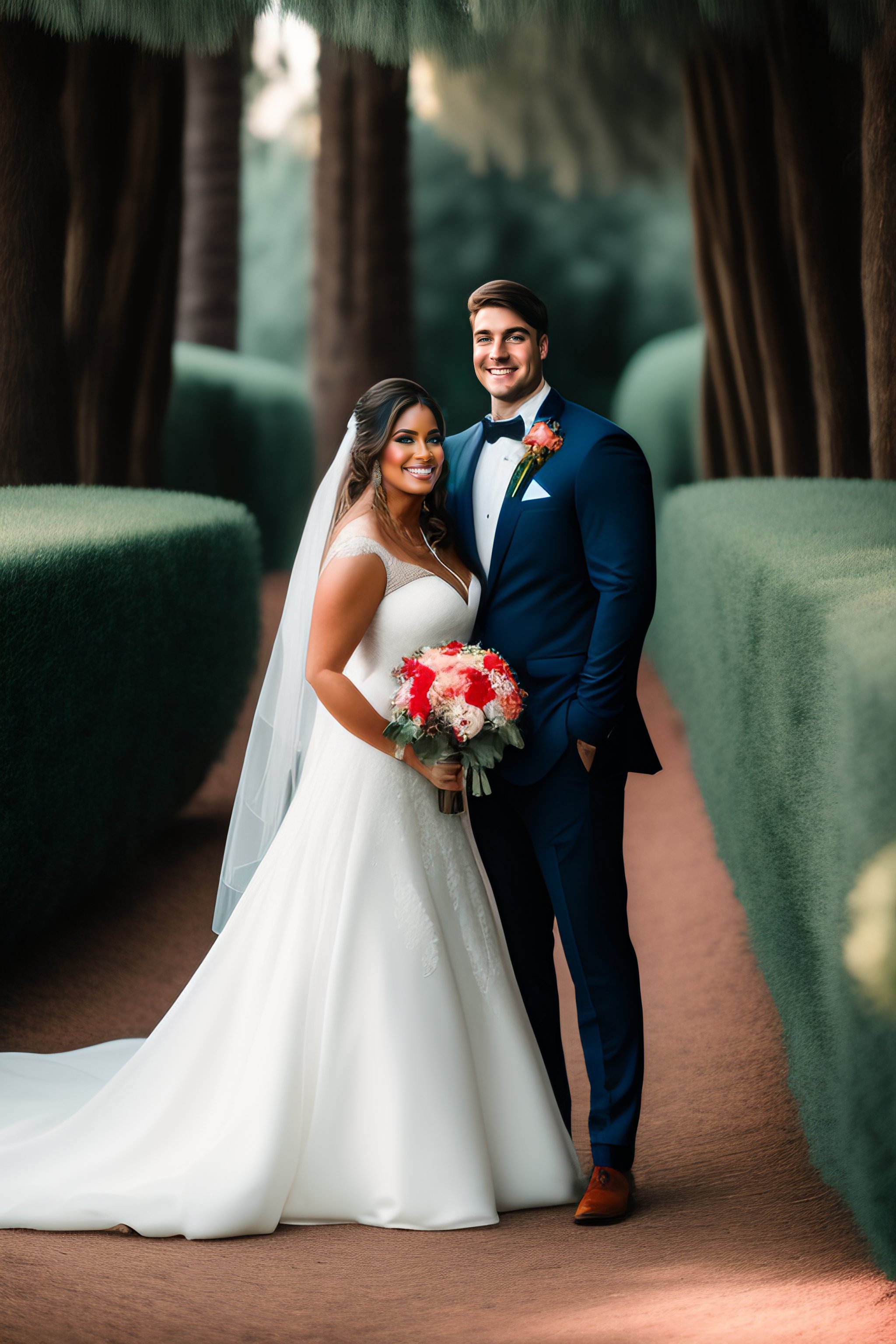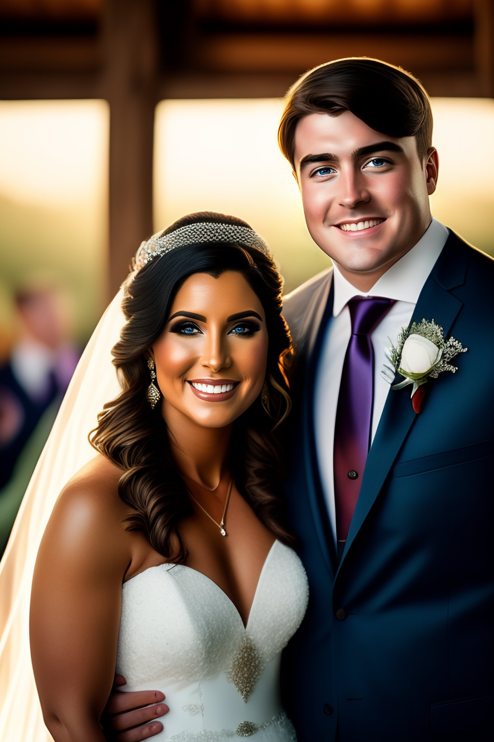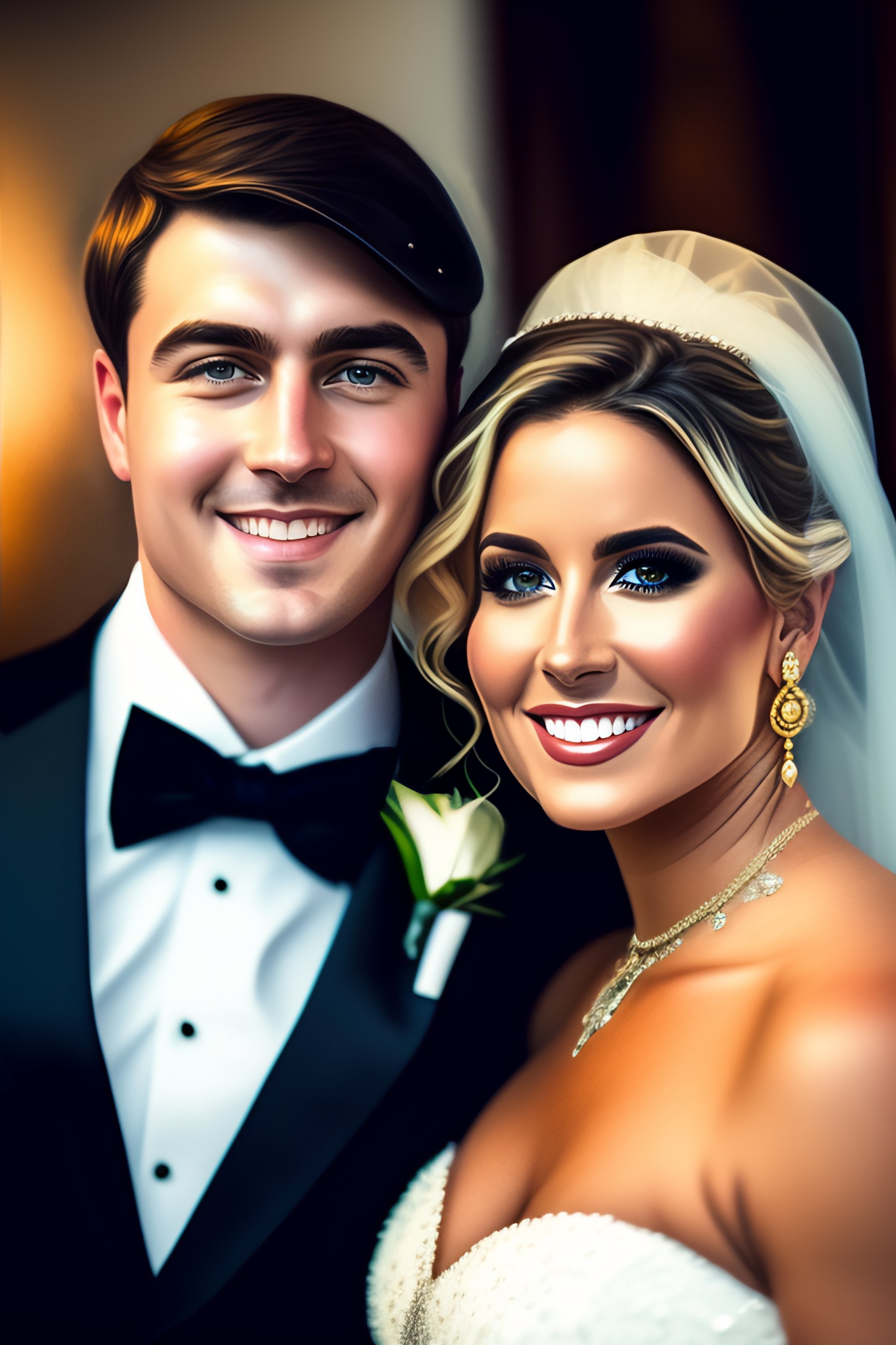 Portrait photo of a mr beast with his beautiful wife on his wedding day