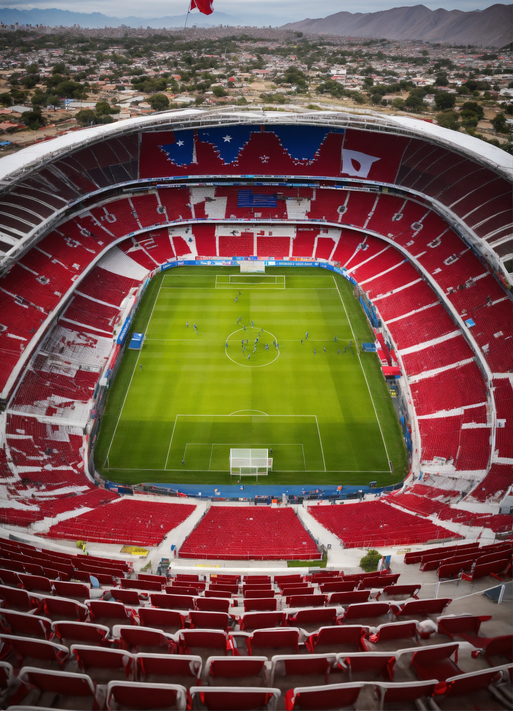The soccer teams of peru and chile are playing a close soccer match, for the usa 2026 world cup qualifiers, action, shots of the field from the top, total presence of spectators, photographic quality