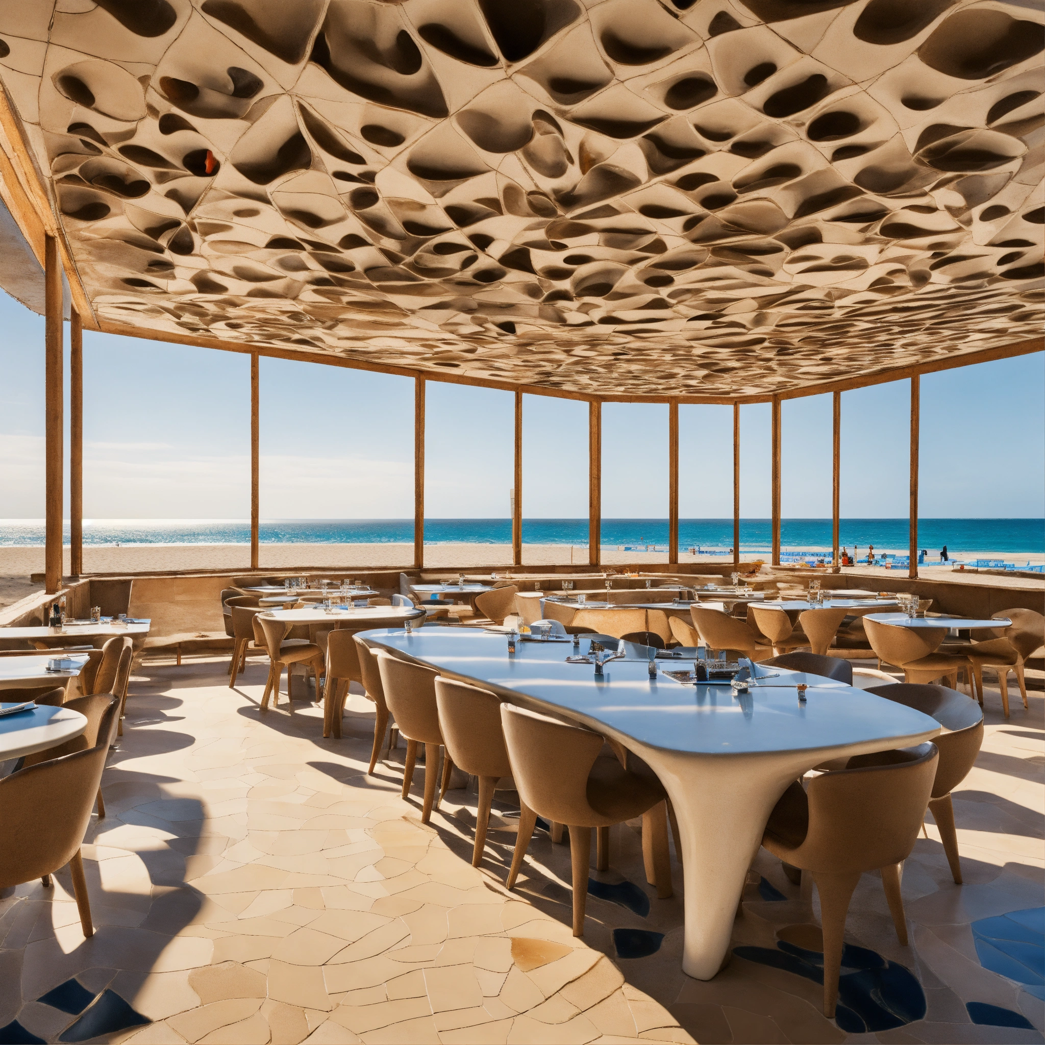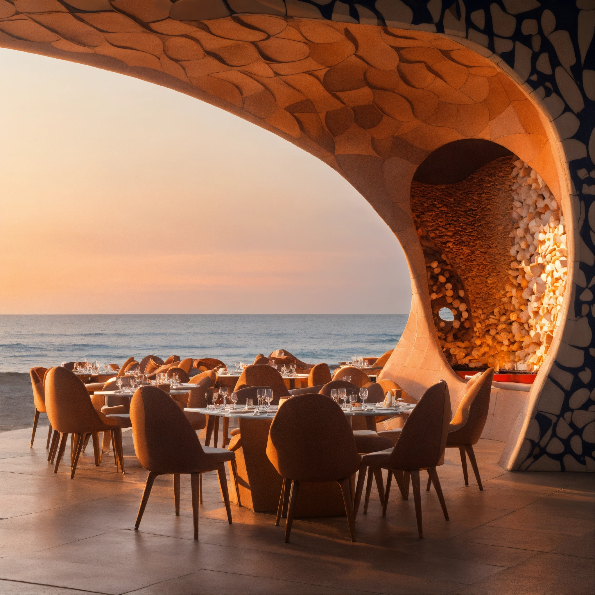 Zaha hadid impressionist ceramic pizzeria at the beach