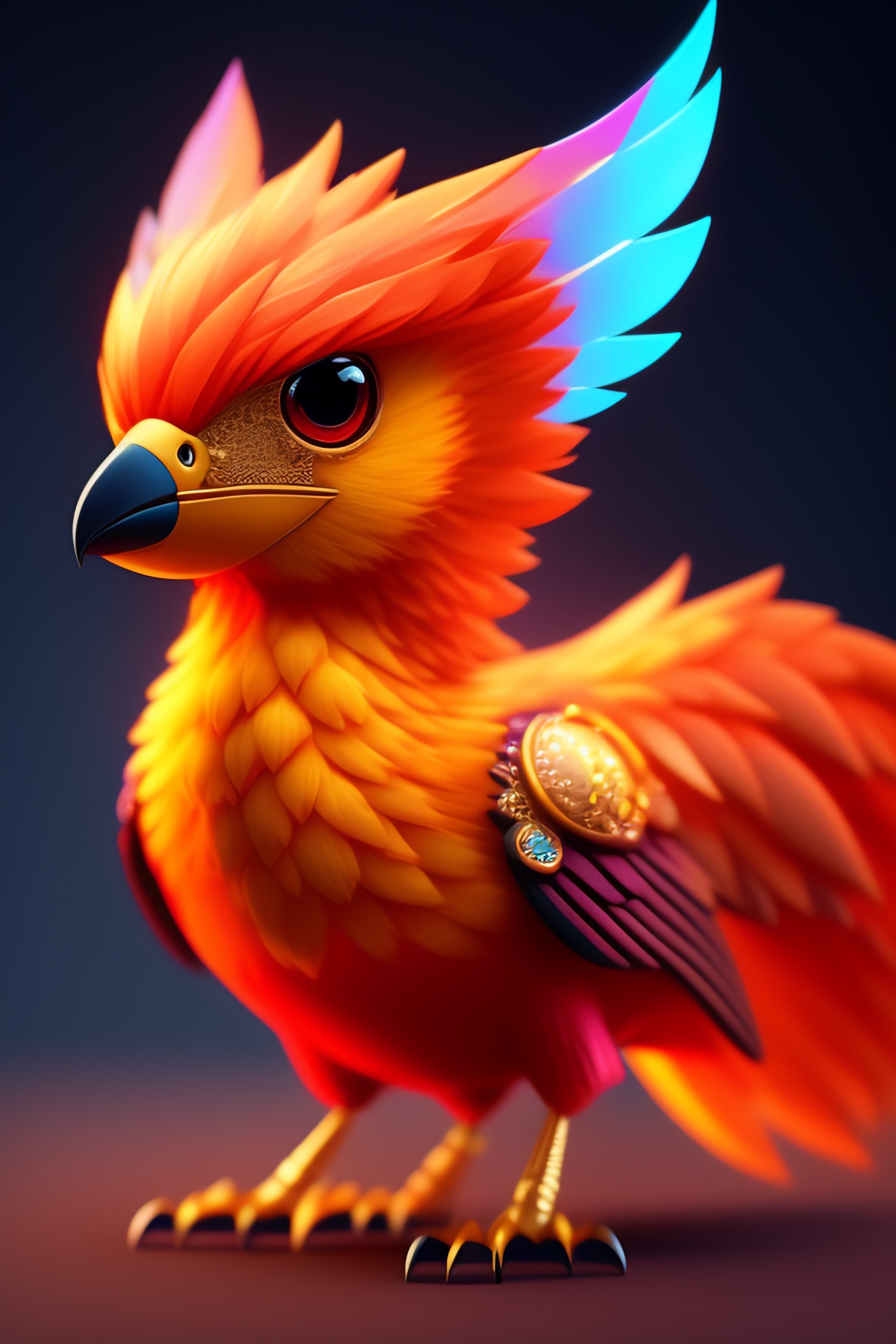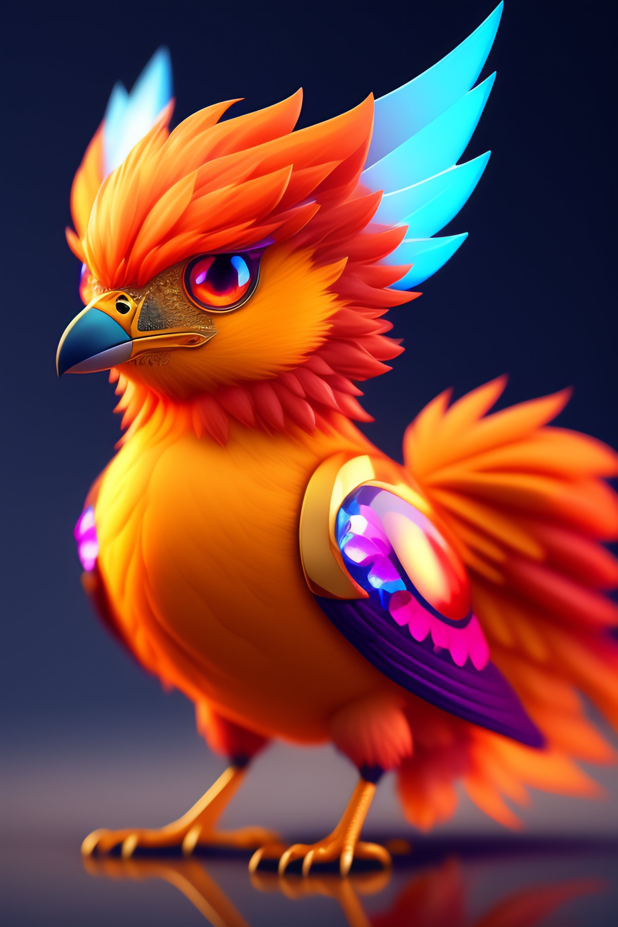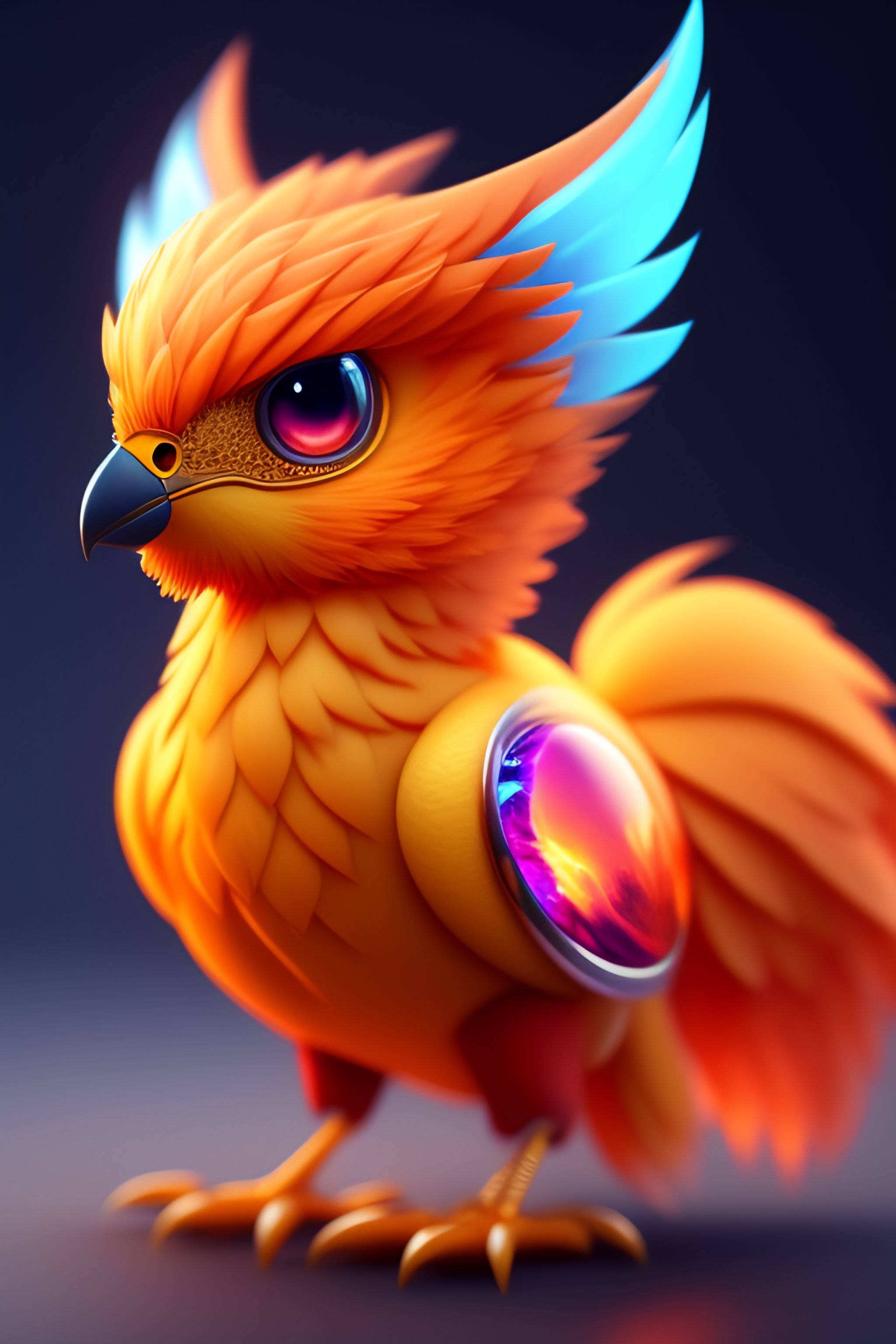A cute adorable adult phoenix made of crystal ball with low poly eye's highly detailed intricated concept art trending artstation 8k