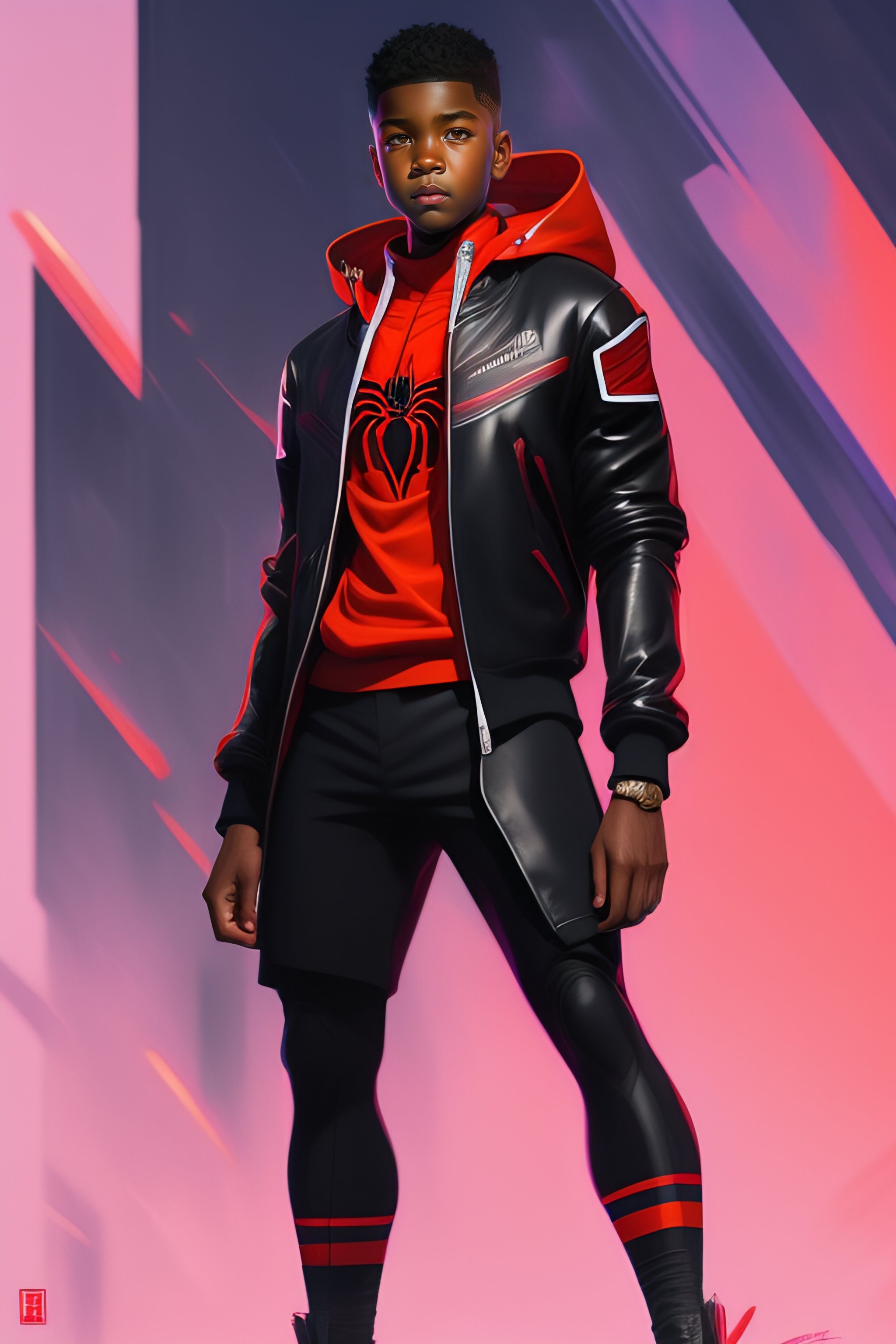 Full body highly detailed portrait of miles morales from spider-man: into the spider verse(2018), by greg rutkowski, by greg tocchini