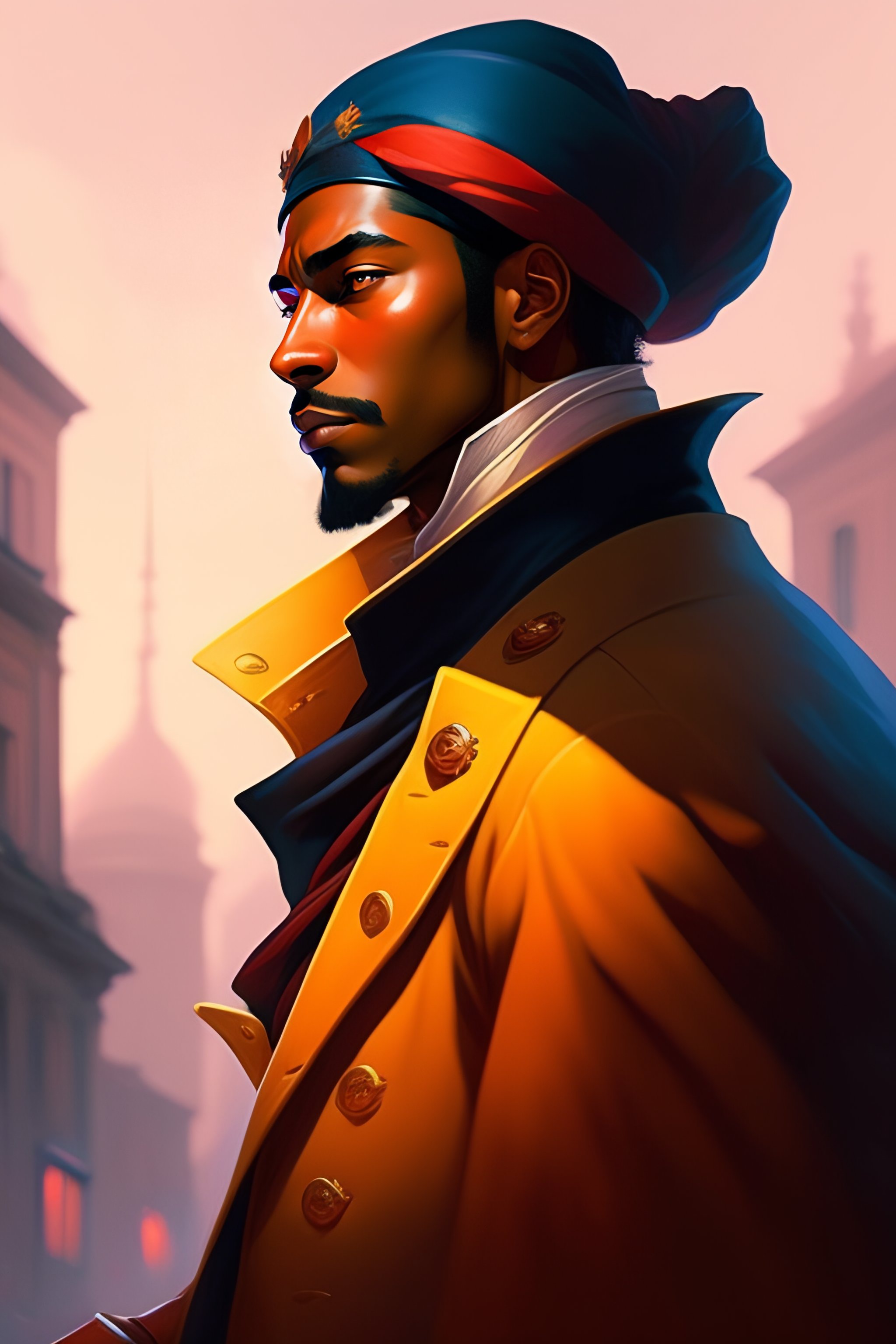French revolutionary darobal, stoic look on his face, heroic, glorious, in the style of artgerm, gerald brom, atey ghailan and mike mignola, vibrant colors and hard shadows and strong rim light, plain background, comic cover art, trending on artstation