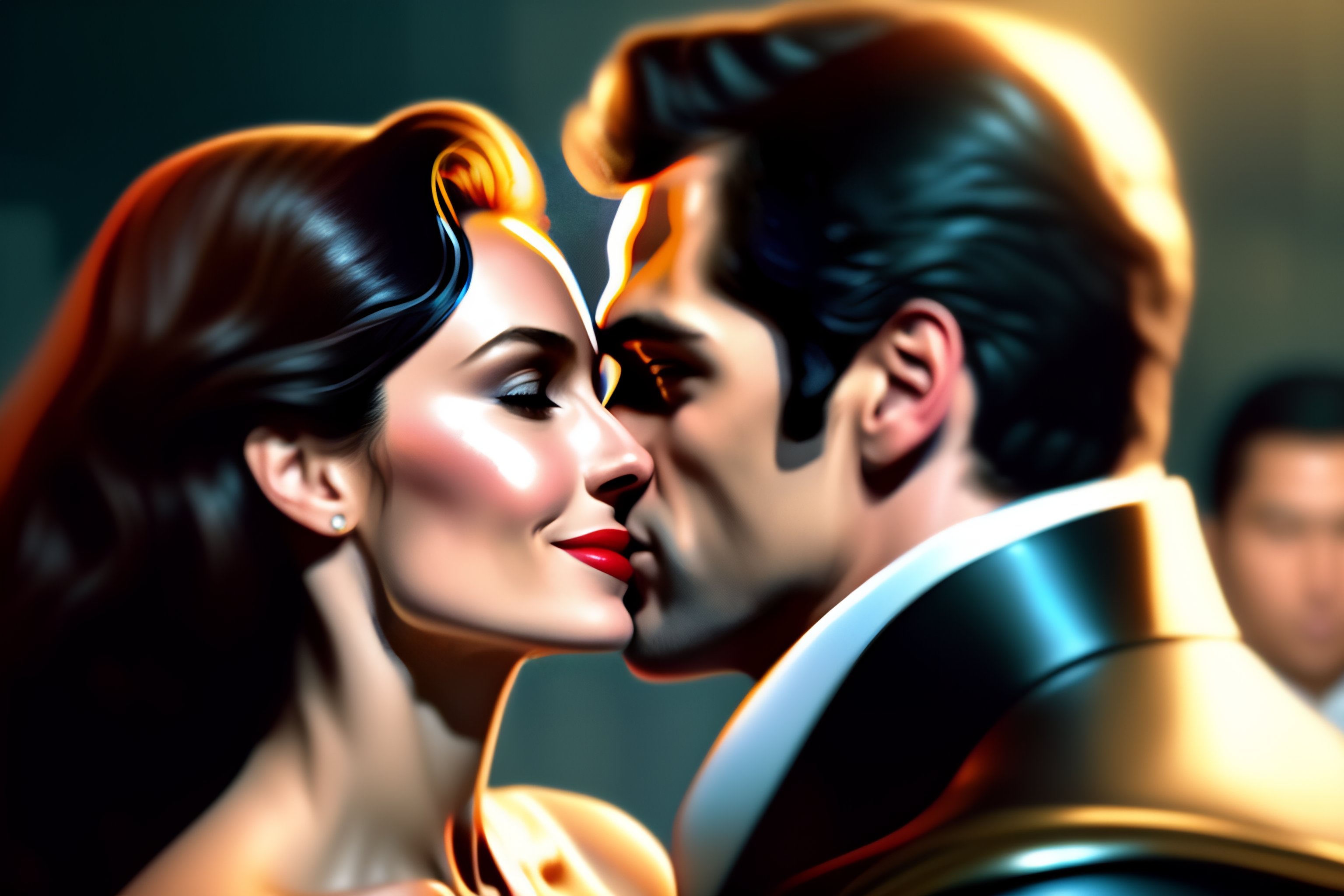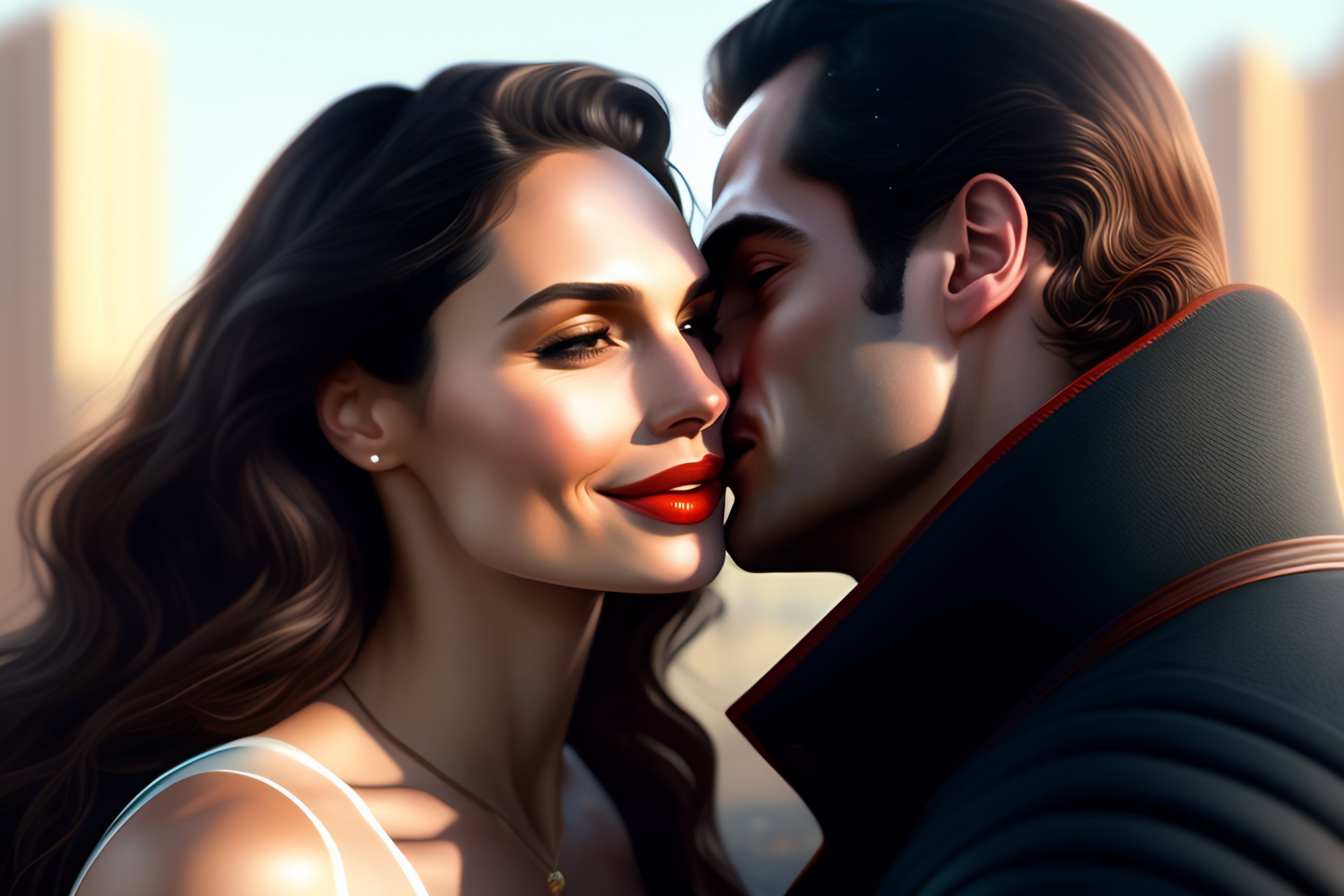 Henry cavill and gal gadot kissing, hyper detailed, digital art, trending in artstation, cinematic lighting, studio quality, smooth render, unreal engine 5 rendered, octane rendered, art style by klimt and nixeu and ian sprigger and wlop and krenz cushart