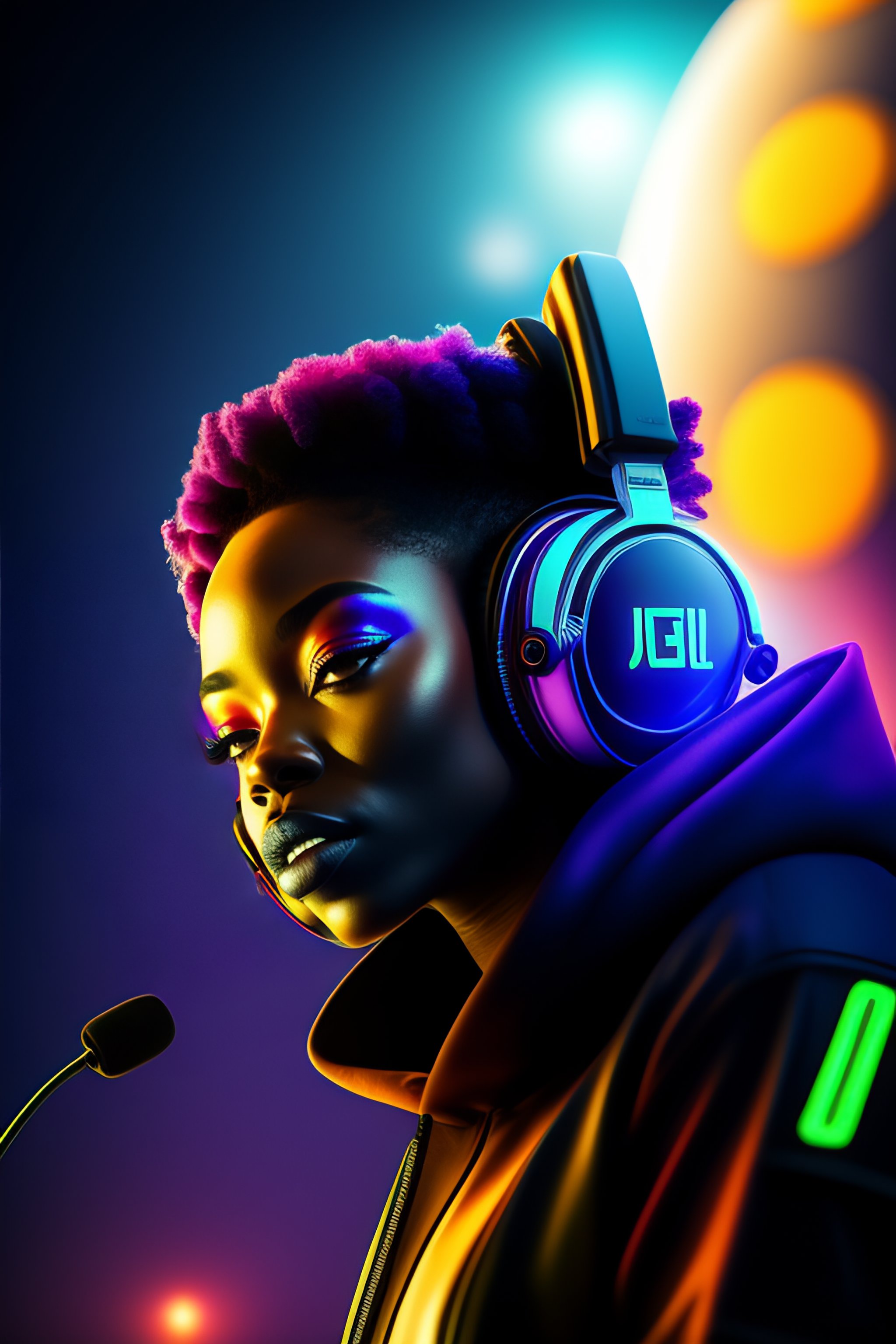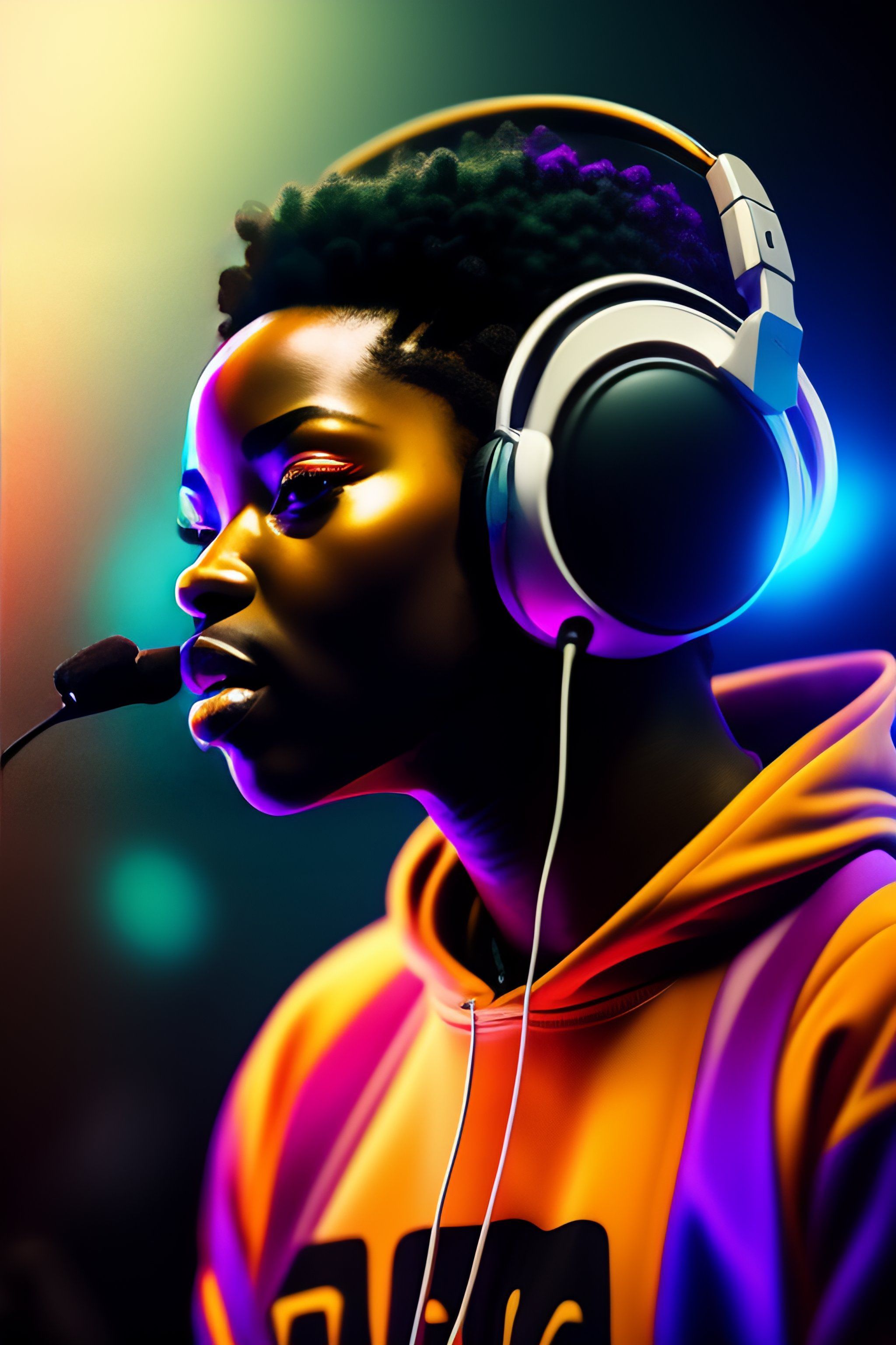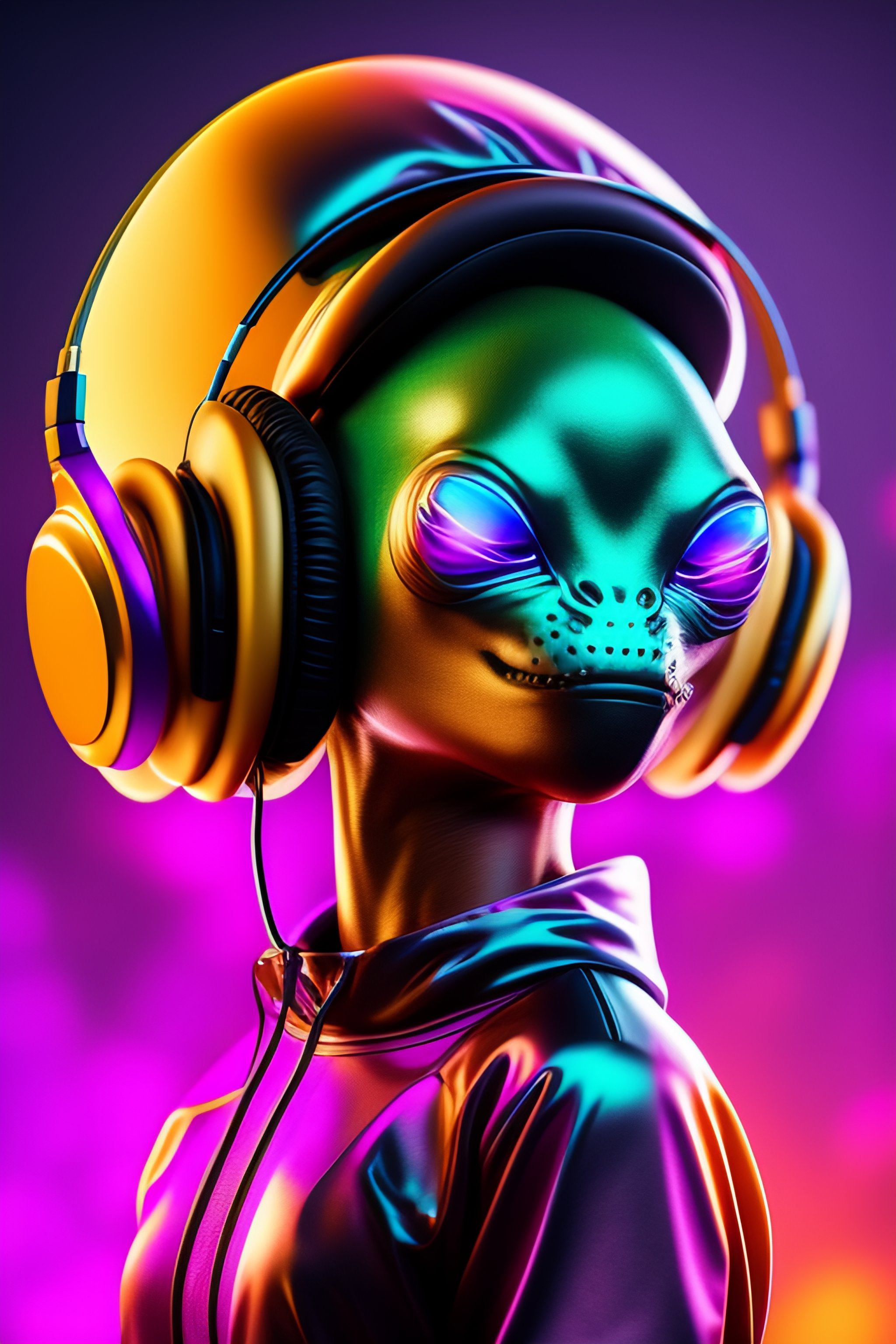 A alien extraterrestrial, singing rap with a headset in a deep space background, ultra detailed, high rendered, full resolution, hyper realistic, xf iq4, f/1.4, iso 200, 1/160s, raw, featured in artstation, illustrative, elegant, intricate, 8k