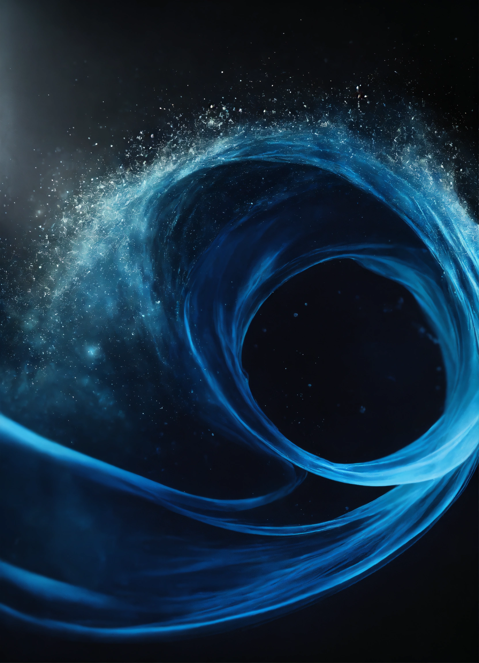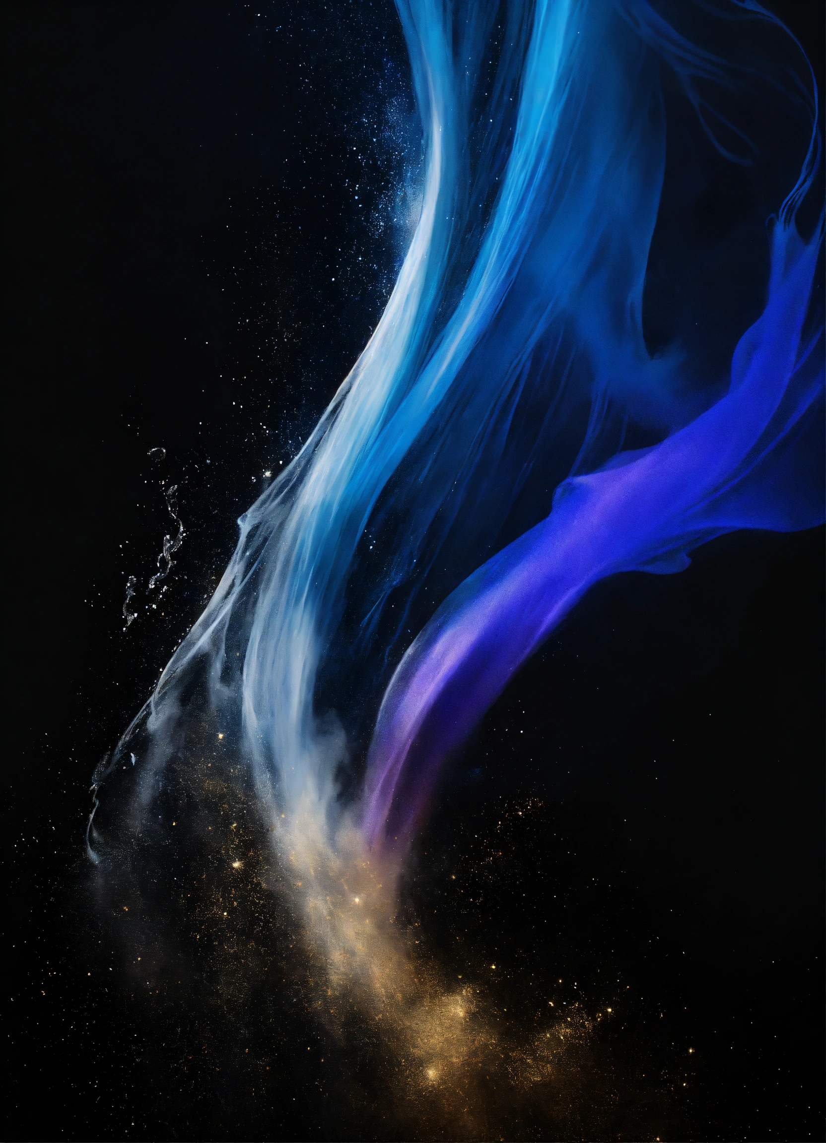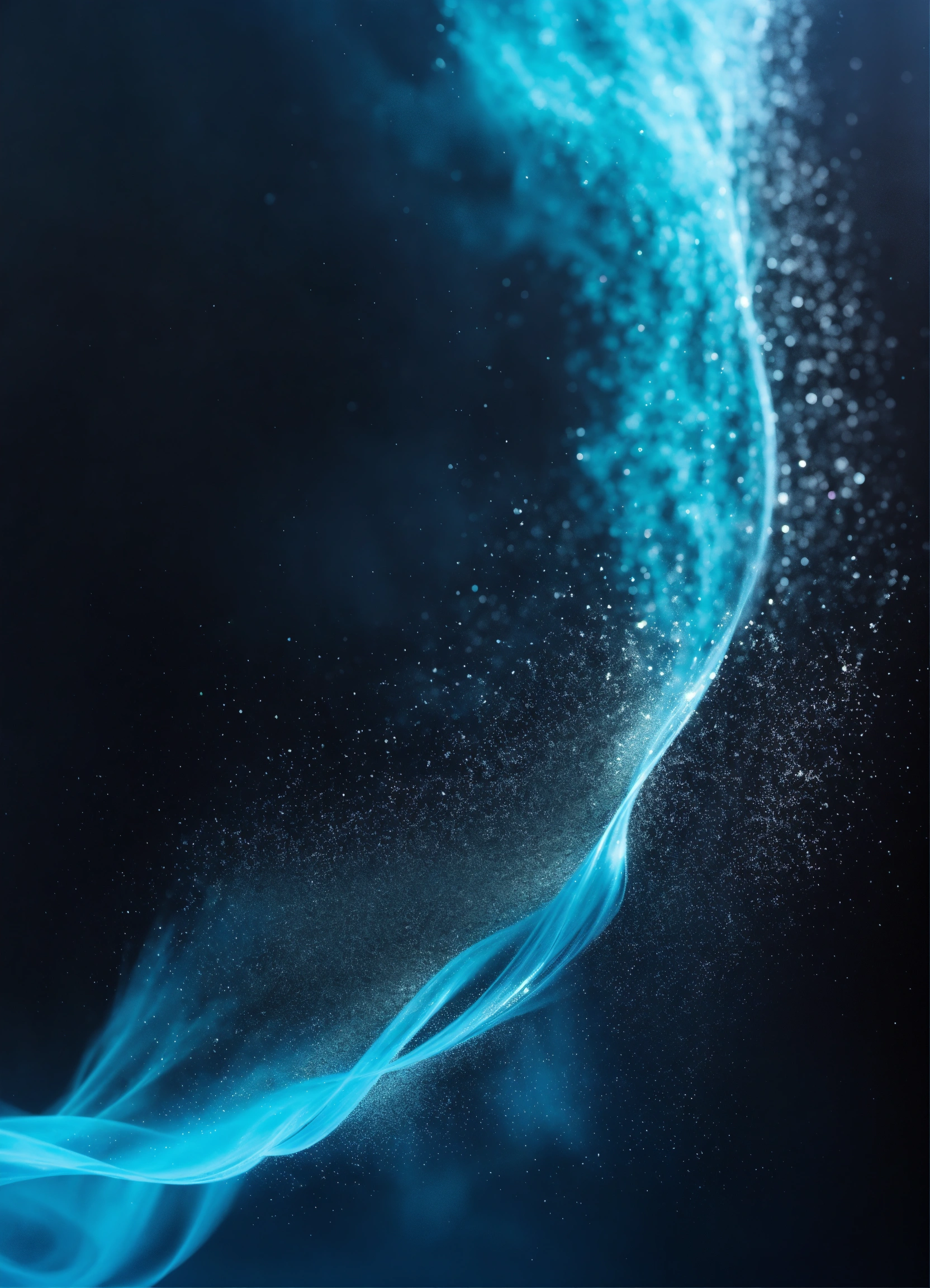 Glitter mist, paint water splash, magic spell, blue silver gray color gradient shiny smoke veil wave on black abstract art background with free space