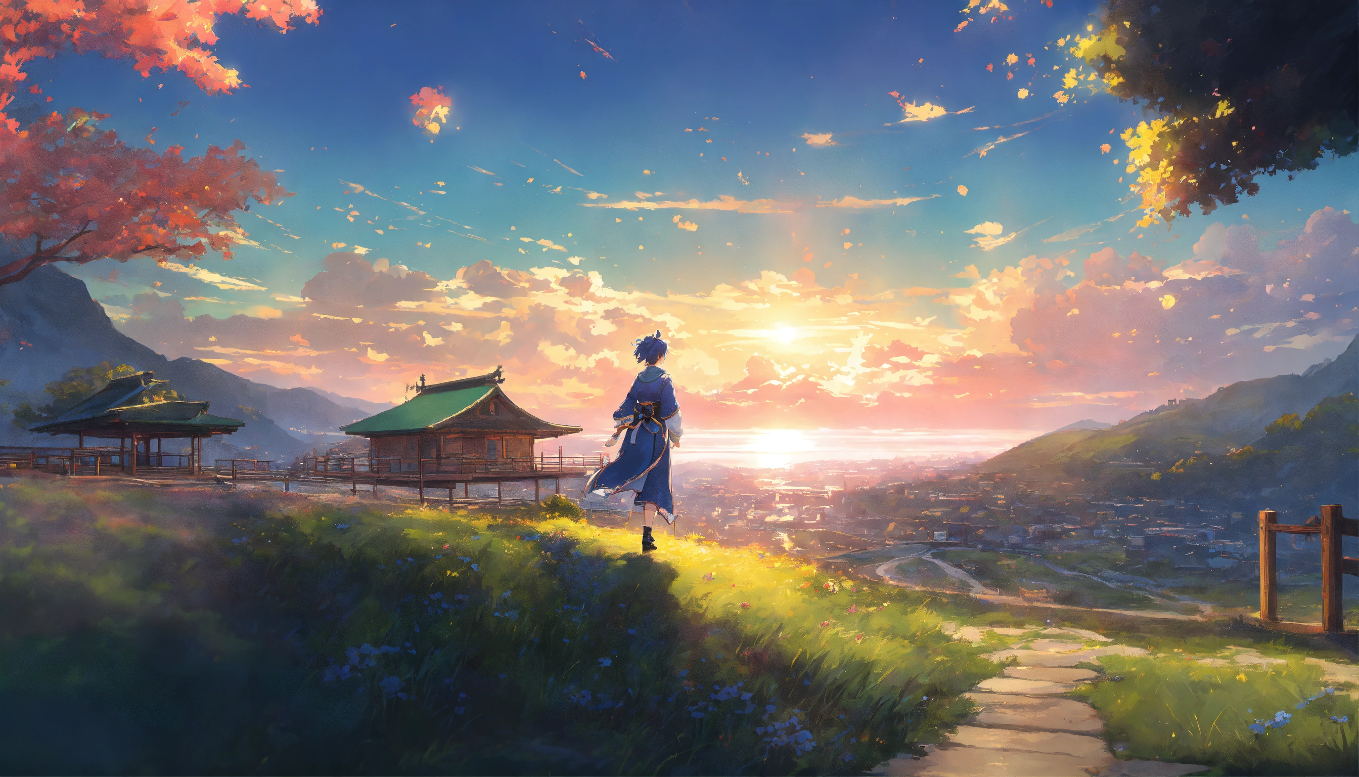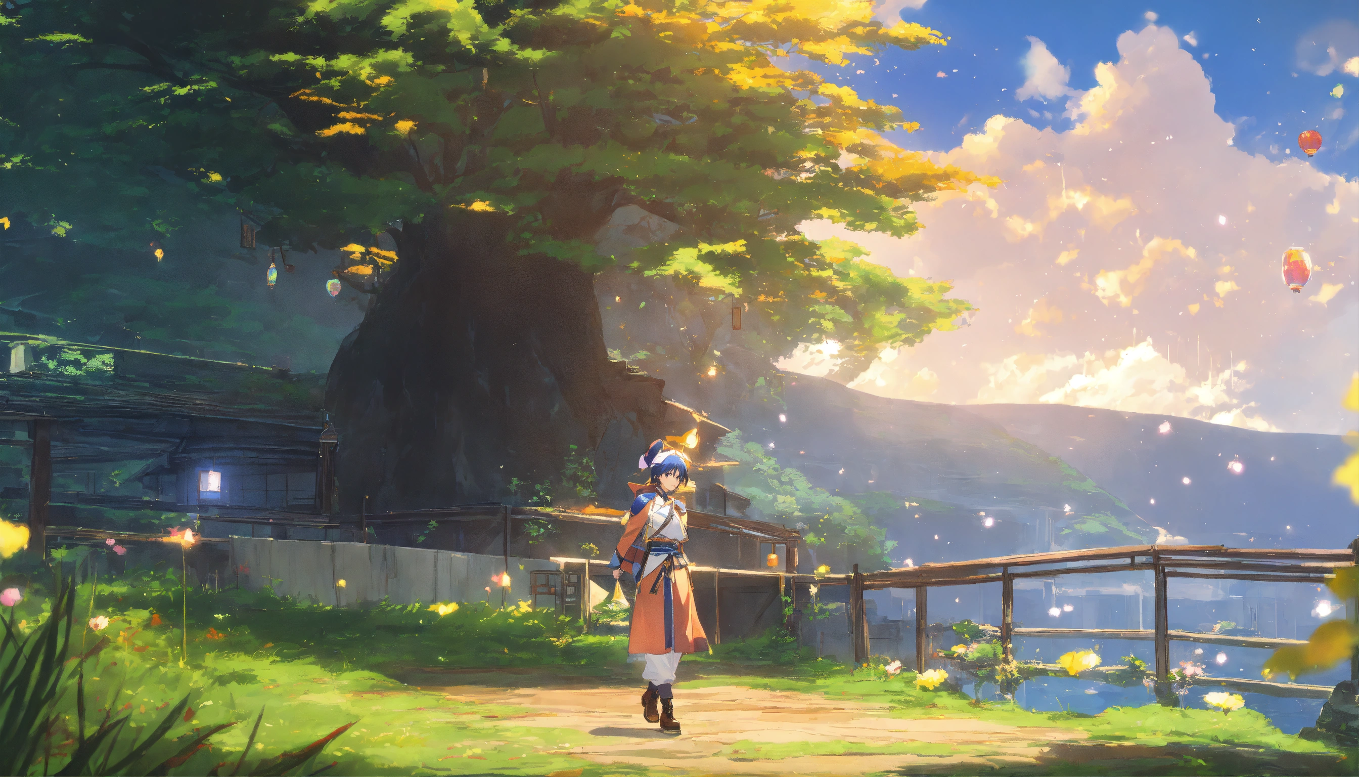 Generate an artwork featuring a lv120 jester character from flyff universe, beautifully crafted in the enchanting style of makoto shinkai. infuse the character with shinkai's trademark aesthetics, focusing on a vibrant, energetic atmosphere. emulate shinkai's mastery of creating emotionally resonant scenes and backgrounds, elevating the flyff universe character's story and presence. the artwork should capture the character's grace and depth within shinkai's visual storytelling style, resulting in a captivating and emotionally rich piece.